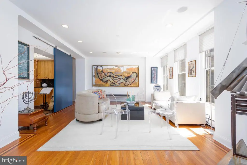 Simply fabulous two bedroom, 2 1/2 bath apartment overlooking the treetops of Rittenhouse Square. Sophisticated decor, beautiful finishes, and impeccably maintained, this apartment is one of the best in this incomparable pre-war building. Enter through a spacious foyer with ample coat closet to a large , light-filled living room, with three south facing windows on the Square, a gas fireplace, a sliding wall to close off (or open up) the kitchen as you like. Relax in the cozy den with bookcases (once used as a dining room). The eat-in kitchen offers gas cooking, lots of cabinetry, and granite counters. A wall of bookcases and cabinetry complete the spacious office with its oversized , built-in wrap around desk. Off the office is the stackable laundry and necessary powder room. The bedroom wing is separated from the main living area by a hallway. Each bedroom has its own bathroom that are in excellent condition. One has a luxurious steam shower. Lots of storage , a thoughtful floorplan, hardwood floors, high ceilings, and an exceptional building staff makes this a great fit for your next chapter.