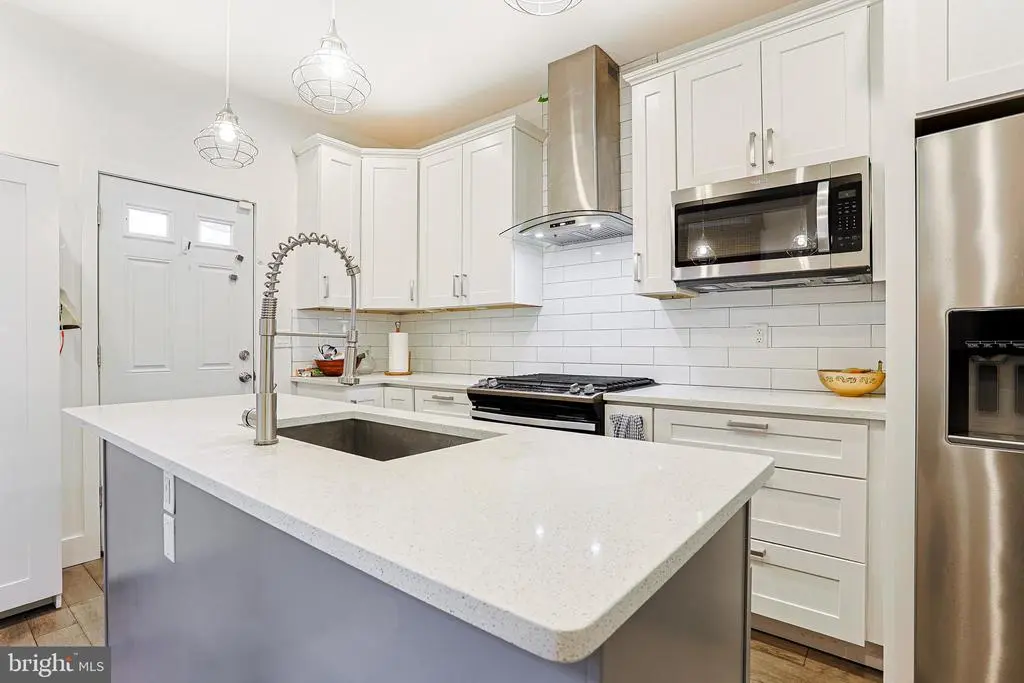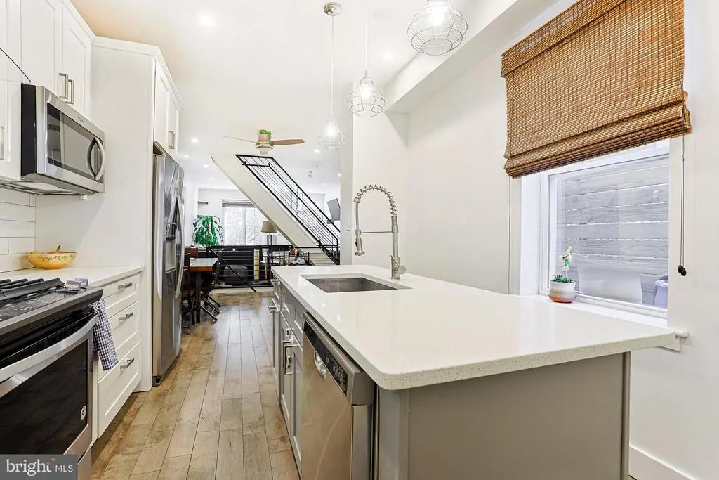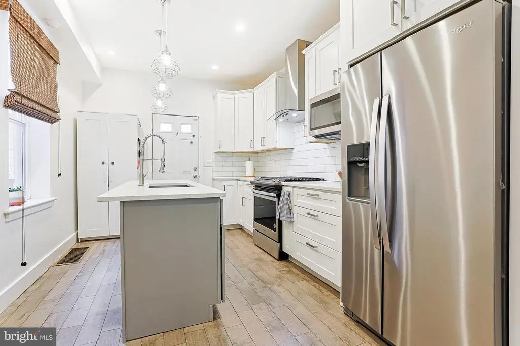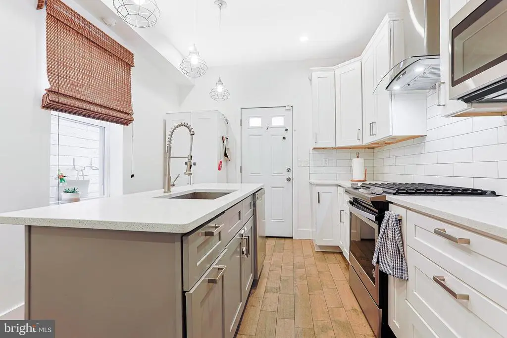 Welcome to 2325 W Thompson Street, a beautifully updated 3-bedroom, 2.5-bath townhome located in the heart of vibrant Brewerytown, Philadelphia. This stylish and move-in-ready home offers modern finishes, flexible living space, and an unbeatable location close to shopping, dining, and Girard College. Step inside to a bright and open living room featuring durable wood flooring that continues throughout the home. The living area flows seamlessly into the dining space, complete with a ceiling fan and plenty of room for entertaining. Toward the rear, the modern kitchen impresses with a center island topped with quartz countertops, stainless steel appliances, a sleek range hood, built-in microwave, and ample cabinet space. A convenient powder room completes the main level. Upstairs, the primary bedroom offers a peaceful retreat with wood flooring, a ceiling fan with light, and a private en-suite bathroom featuring a contemporary step-in shower. Two additional bedrooms on this level also include wood flooring and ceiling fans—ideal for guests, kids, or a home office. A second full bath with a tub/shower combo serves these rooms, and a laundry closet with stacked washer and dryer provides ultimate convenience. The finished basement offers a cozy family room—perfect for movie nights, a play area, or additional entertaining space. The spacious backyard features a patio and garden area. Located just steps from Brewerytown’s popular amenities, local eateries, and public transit, this home offers both comfort and urban convenience. Only a 15 minute walk to Fairmount and 20 minutes to the Art Museum! Don’t miss your opportunity to own this beautifully updated home in one of Philly’s most exciting neighborhoods—schedule your tour today!