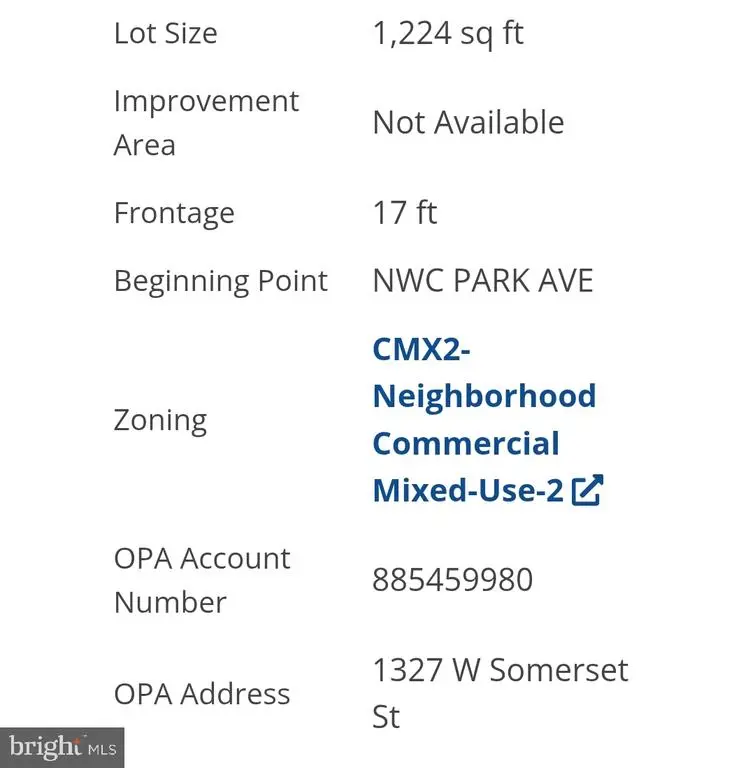 Prime Corner CMX-2 Lot – Mixed-Use Development Opportunity in North Philadelphia! Unlock the full potential of 1327 W Somerset Street – a high-visibility corner lot with sought-after CMX-2 zoning, ideal for a mixed-use development in one of Philadelphia’s growing corridors. This property offers the perfect setup for ground-floor commercial space with residential units above, capitalizing on both foot traffic and strong rental demand in the area.