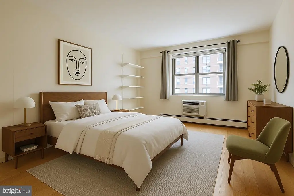 Fabulous two-bedroom, one-bathroom unit at Penn Center House is ready for you to move right in and enjoy everything Rittenhouse Square has to offer! The bright, spacious, living and dining area feature beautiful hardwood floors that flow throughout the unit. The kitchen with tile floors offers ample storage. The sizeable primary bedroom has wall of shelving and a walk-in closet. The second bedroom, hall bath with tub, and laundry hook-up complete this unit. Don't miss the beautiful rooftop deck, community room, and library. Penn Center House is an owner-occupied building. Access control, front desk coverage and maintenance. Fabulous location! Close to Philadelphia's museums, restaurants, and entertainment. Located in the highly rated Greenfield K-8 catchment. The co-op fee includes all utilities, basic cable, and taxes. Parking and gym membership are available for an extra fee. Financing is available through First Trust and Cross Country Mortgage.