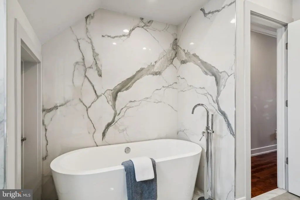 Enjoy modern luxury in this 4 bedroom, 3 bathroom home with ROOF DECK, FINISHED LOWER LEVEL and REMAINING TAX ABATEMENT. Step into the gracious living and dining areas featuring gleaming hardwood floors, a perfect open layout and oversized windows that fill your space with an abundance of light. The chef’s kitchen showcases gorgeous soft-close cabinetry, stainless steel appliances and quartz countertops with waterfall island. A sunny patio off the kitchen is the perfect spot for grilling, morning coffee or gardening. Up the stairs are two large, bright bedrooms, a full bath with custom tile work and modern vanity, and a convenient laundry area. The top floor is dedicated to the oversized primary suite, offering an expansive bedroom with stunning views, a large walk-in closet and a serene bathroom complete with double vanity, 3-head oversized shower, and a soaking tub. Head up to the large roof deck to relax and entertain in style with breathtaking city skyline views. The finished lower level hosts a private additional bedroom with high ceilings and adjacent chic full bathroom. There is excellent storage on this level and throughout the home. The 4 years remaining full tax abatement will save you nearly as much as would the city’s current 10 year tax abatement. With a great central location - near beloved neighborhood coffee shops, bars and restaurants, recreation, a brand new ALDI and CVS, and a quick walk to Rittenhouse Square, University City, business district and all hospitals and universities - this home offers the perfect blend of luxury, comfort, and convenience.