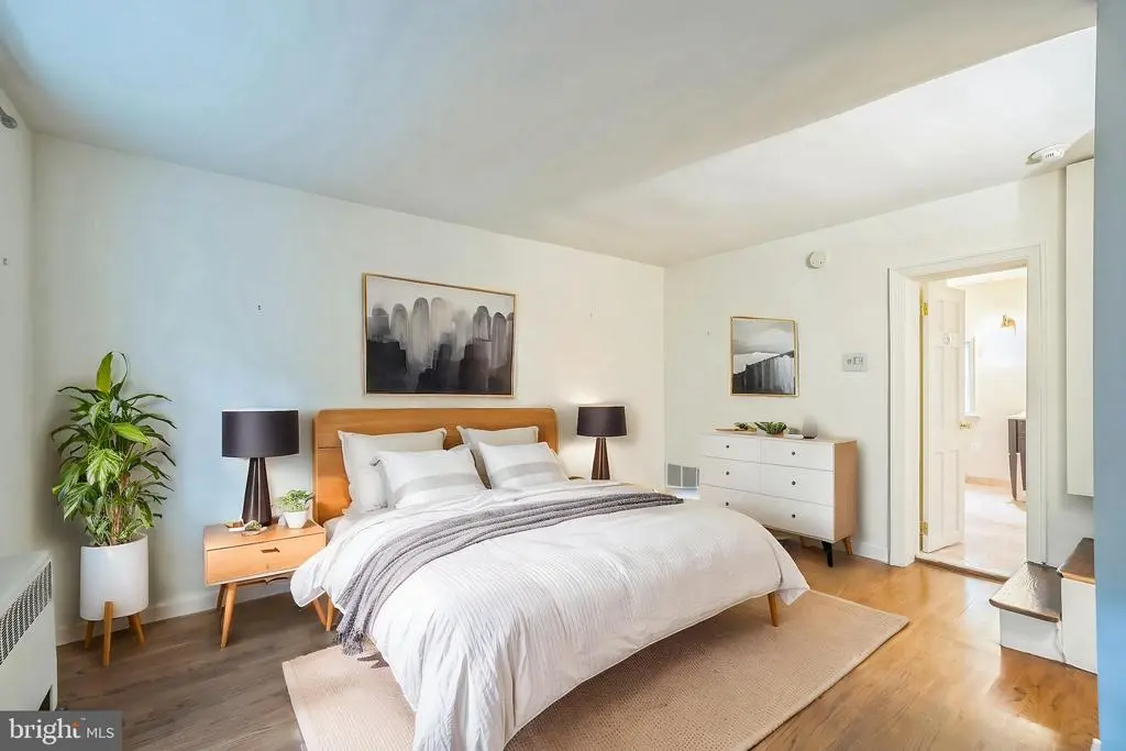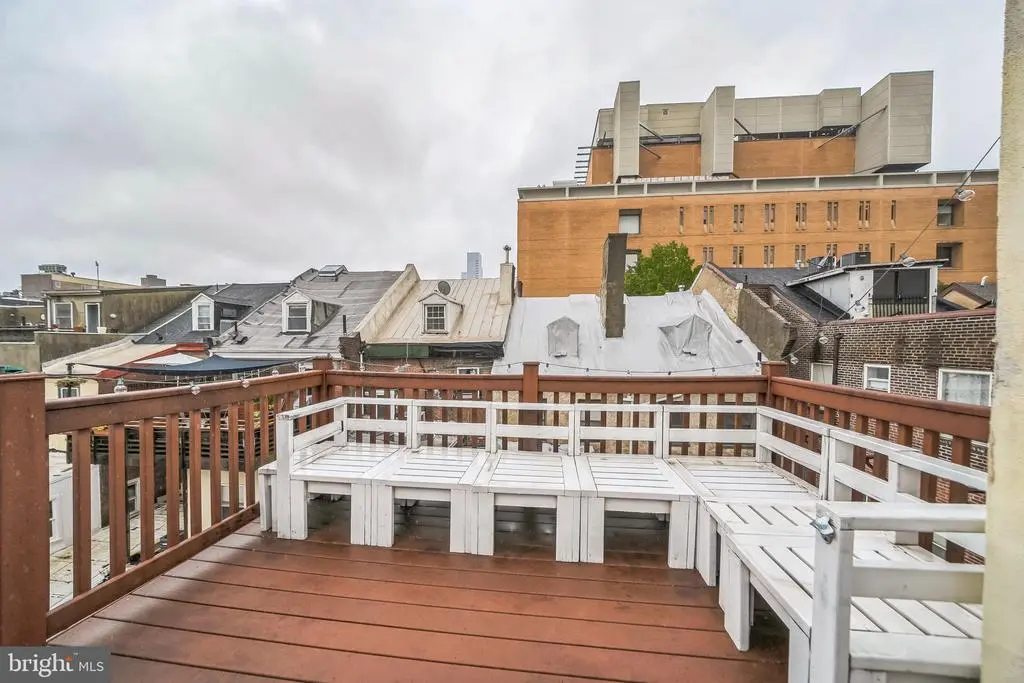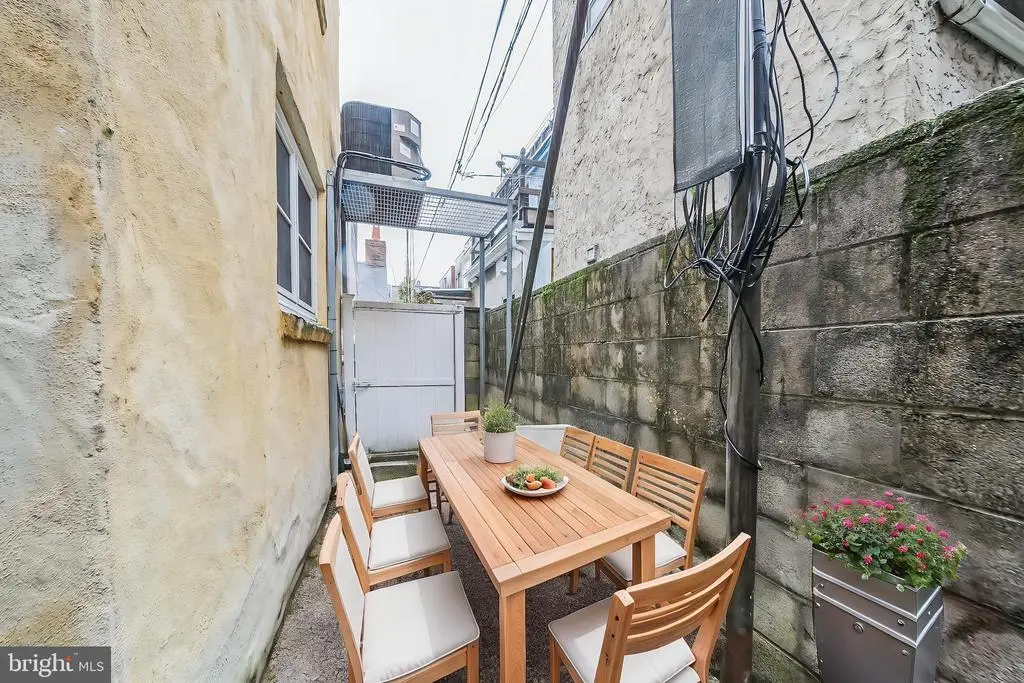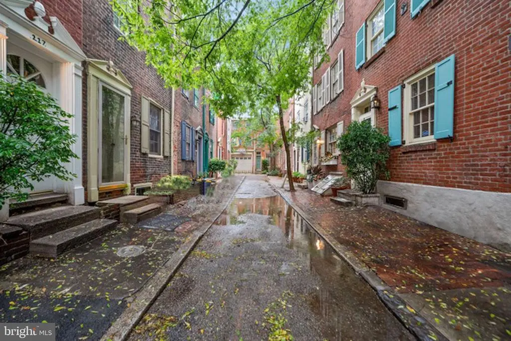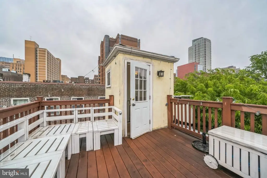 GARAGE PARKING & ROOFDECK! Impeccably renovated 2BD/2BA home in the heart of Washington Square West, blending historic charm with modern luxury. Located on a quiet, tree-lined street, this stunning property features central air, dual heating systems, hardwood floors throughout, and a single garage parking space. The main level includes a cozy living room with a working fireplace and a kitchen outfitted with stainless steel appliances, gas stove, dishwasher and refrigerator/freezer. The second floor offers a spacious bedroom with hardwood flooring, a custom California closet, and a marble bathroom with a tub/shower combo. The third floor features a sunlit bedroom with gallery ceiling lighting, a custom storage nook, and a walk-in California closet. The luxurious bath includes an oversized yellow onyx walk-in shower with a triple shower system and a stunning floor-to-ceiling glass block wall. A spiral staircase leads to the Trex rooftop deck with running water, electricity, and panoramic views—including Penn’s Landing fireworks. Additional highlights include a charming rear patio, full basement with washer/dryer and ample storage, and a centrally monitored fire and security system. Conveniently located near PATCO, SEPTA, Jefferson, Pennsylvania, and Wills Eye Hospitals. A rare opportunity to own a turn-key home with garage parking in one of Philly’s most desirable neighborhoods.