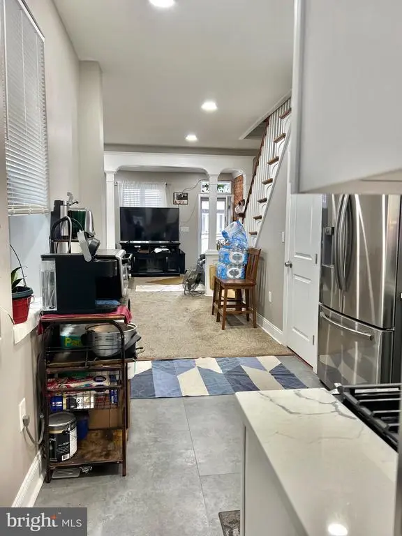 FREE 1 year home warranty included. Beautifully upgraded straight thru home will not disappoint! The front porch features a beautiful black steel railing with sleek design, concrete floor that provides fresh space to sun bath and catch the spring air. Enter though a modern farmhouse door to the open space that includes living room with custom lighting, natural brick wall. This flows into the dining room are with the same lighting and carpets on both floors (beautiful hardwood flooring underneath) and open space to the ultra modern kitchen. In that room you will find, extra large shaker cabinets, stainless steel appliances and range hood, custom countertops and under cabinet lighting. Just beyond that is the laundry space with a half bath attached and exit to fenced rear yard. The upper level consists of a main bedroom with that same beautiful natural brick accent wall, large closets and plenty of room for any decor. There are two other bedrooms and a sleek hall bath sure to please the pickiest of buyers. The lower level has just an open space, newer heater, central air and hot water heater. The windows are updated. This house is well loved and cared for. Great block, friendly neighbors, good parking and walking distance to just about anything you may need.