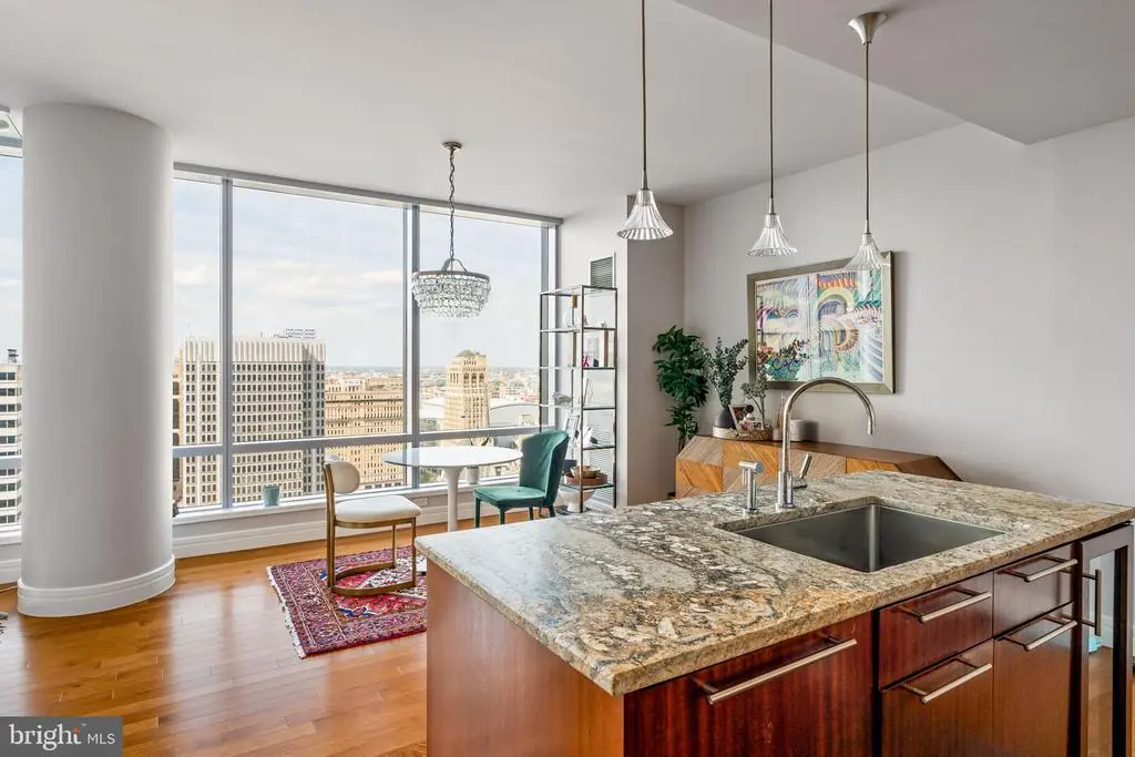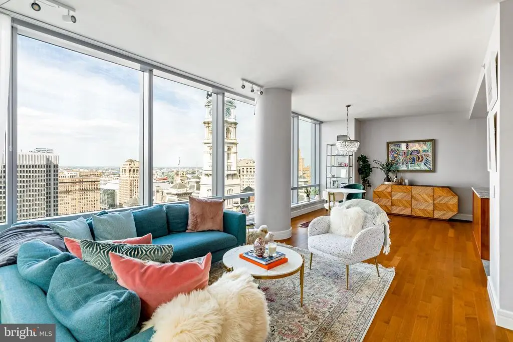 RITZ CARLTON Renovated corner 2 bedroom, 2.5 bath extraordinarily well maintained residence featuring 1645 square feet with some of the most incredible sunsets, skyline, and City Hall views you won't find anywhere else. In this renovated spacious residence, you have unobstructed views of City Hall, Two Liberty, the ever-evolving Philadelphia skyline, and gorgeous sunsets. This unit also includes custom built-in cabinetry with gas fireplace, floor to ceiling operable windows in every room (a unique feature in Center City), soaring ceilings, gorgeous new maple hardwood flooring throughout, a designer kitchen featuring Sefina cabinetry, leathered granite island, updated backsplash, Viking built-in gas cooking and microwave, Sub-Zero refrigerator, Miele dishwasher, Uline wine cooler, Dornbracht fixtures. The primary suite features incredible City Hall views from bed, custom built-in cabinetry to optimize storage, an en-suite with Calacatta marble floors and countertops, double vessel sinks, Bain ultra-soaking tub, Duravit commode, and a separate stall shower with a frameless glass enclosure. The Ritz-Carlton Residences is genuinely the finest white-glove building Philadelphia offers in Center City living. You will have access to a resident-only Mercedes make getting around town a delight. If you prefer walking, are mere steps to the best restaurants, shops, and parks. World-class amenities found at the Ritz-Carlton Residences Philadelphia include a state-of-the-art fitness facility overlooking City Hall & Dilworth Plaza, an indoor pool, spa, locker rooms, sauna, private Yoga room, and brand new Resident Lounge with brand new outdoor lounge/dining/kitchen and unbelievable theater room. This building is pet-friendly with a brand new on-site dog park.