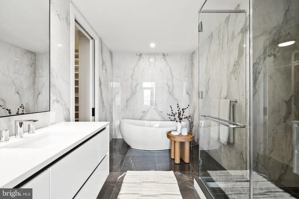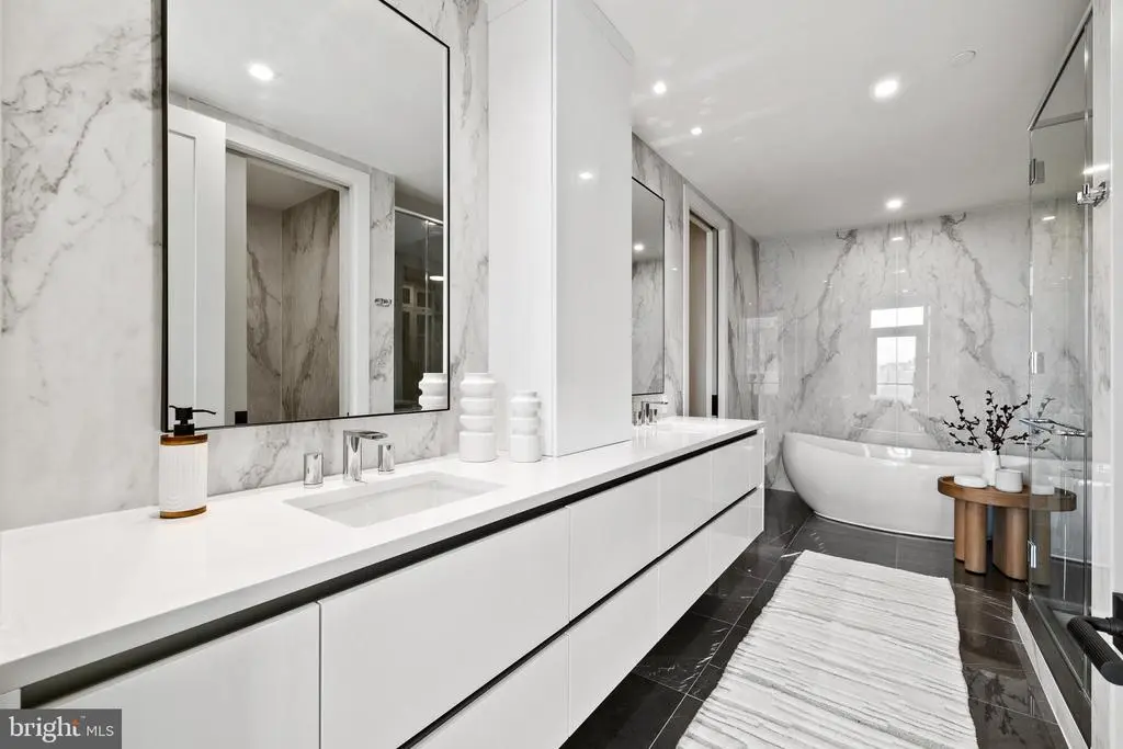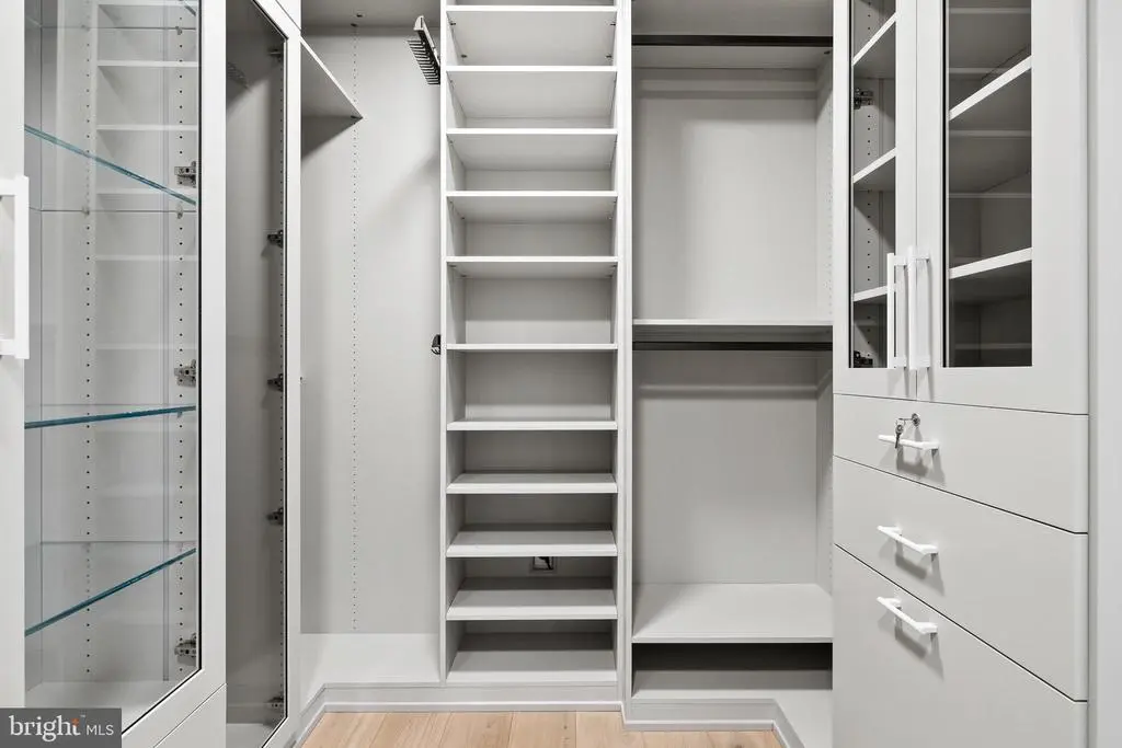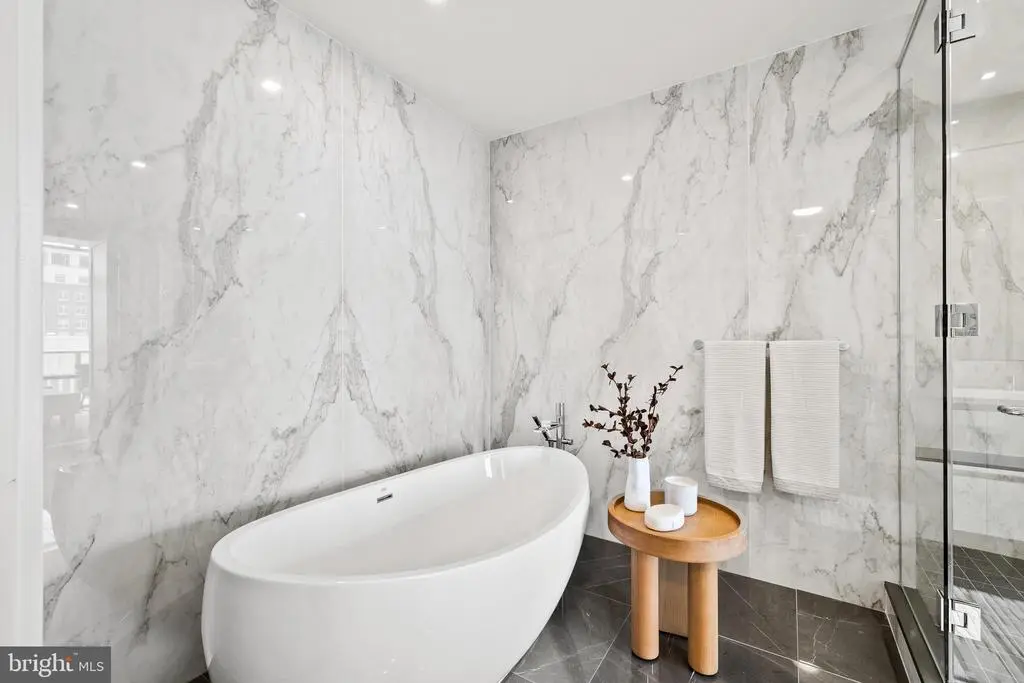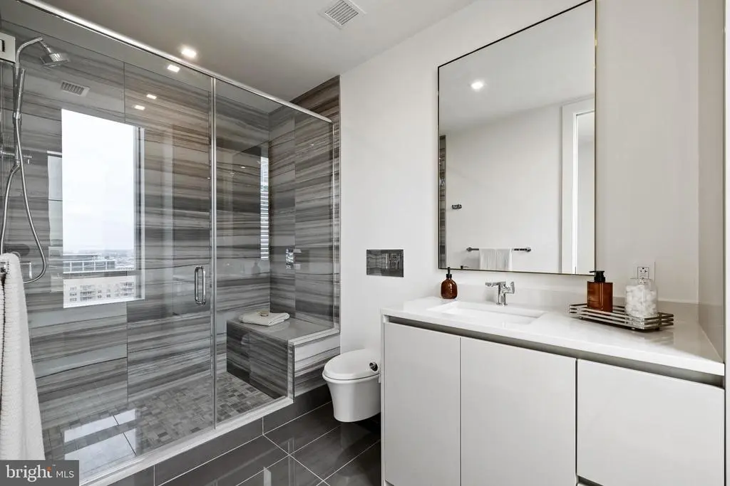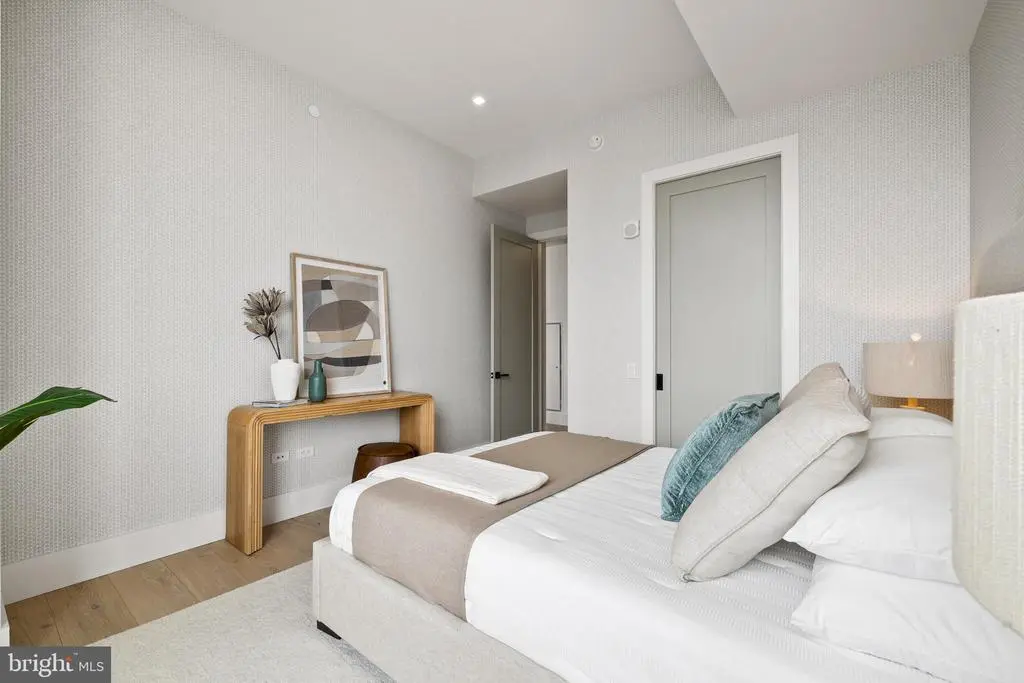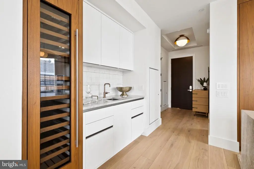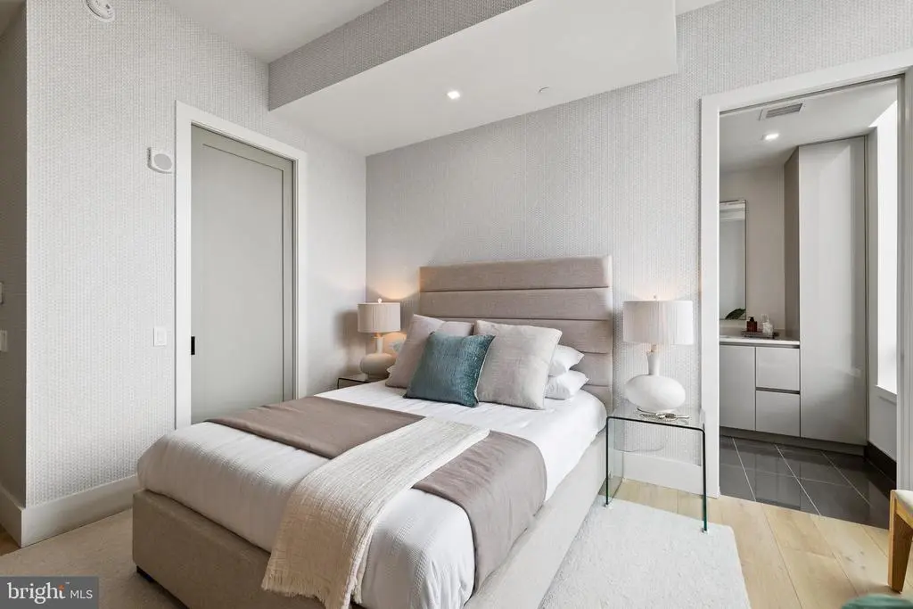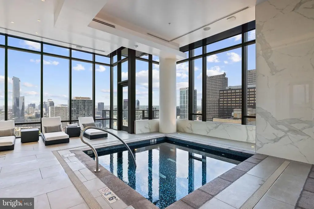 Welcome to Unit 2804 at The Laurel, an exquisitely upgraded 2-bedroom, 2.5-bathroom residence offering elevated living in one of Philadelphia’s most prestigious addresses overlooking Rittenhouse Square. This modern city home is a masterclass in sophisticated design, featuring high-end custom finishes, intelligent storage solutions, and refined architectural touches throughout. Upon entering, you are welcomed by wide, newly installed 11-foot Warren Christopher plank wood flooring that spans the living areas, creating a warm yet contemporary atmosphere. Anchoring the main living space is a custom-designed limestone fireplace, encased in white oak-stained wood with integrated LED-lit shelving and discreet hidden storage—perfectly blending function and style. The gourmet kitchen is tailored for the modern chef, boasting a stunning quartzite slab with 22 thoughtfully positioned outlets, under-cabinet LED lighting, and a sleek Italian tile backsplash. The bar area and bathrooms have all been fitted with upgraded designer faucets, while the kitchen sink includes a premium Julian basin, upgraded garbage disposal, and a hot/cold filtered water system for added convenience. Adjacent to the kitchen, the laundry room has been thoughtfully transformed into a multifunctional space with built-in step stools, drying racks, upgraded washer and dryer, and dedicated electric access for charging your Dyson vacuum—an uncommon yet thoughtful feature in city living. Both bedrooms offer generous proportions, enhanced by custom closet systems, recessed cam lighting, and electronic window shades for ultimate privacy and light control. The primary suite serves as a serene retreat, while the second bedroom is equally well-appointed. The half-bathroom stands out with an integrated sink, upgraded Morro fixtures, and custom lighting. Every detail throughout the home has been meticulously upgraded—from all new door hardware and custom light fixtures to repainted walls, added wallpaper accents, and upgraded baseboards for a cohesive and polished finish. For peace of mind, the home is equipped with a built-in security camera, while smart lighting and shade systems contribute to the residence's modern appeal. This turnkey home is a rare blend of beauty and function, combining premium materials with bespoke design touches. As a resident of The Laurel, you will enjoy access to an unparalleled suite of luxury amenities and full-service conveniences. Building amenities include an indoor and outdoor pool & hot tub, a stylish bar and lounge, 24-hour concierge, elevators, state-of-the-art fitness center, sauna, guest suites, golf simulator, meeting and party rooms, round-the-clock security, and even transportation services for added ease.