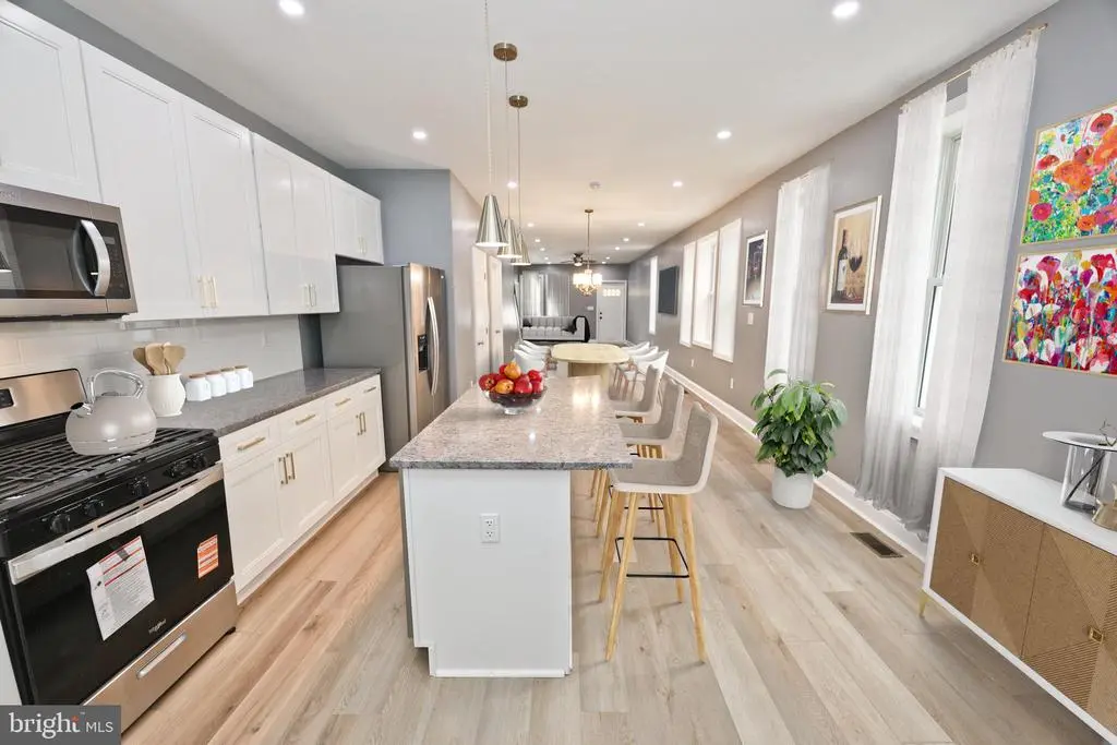 Stunning 5-Bedroom Luxury Home with Designer Finishes & Spacious Backyard ✨ Welcome home to luxury, light, and style! This beautifully remodeled 5-bedroom, 3.5-bath home offers over 2,200 sq. ft. of finished living space, perfectly blending elegance and functionality. Step onto the covered front porch and imagine sipping your morning coffee in peace. Inside, the open-concept main level welcomes you with a wall of windows, gleaming recessed lighting, and a chef-inspired kitchen featuring: Abundant custom cabinetry with soft-close drawers, Gold hardware and stone countertops, Subway tile backsplash and oversized island perfect for entertaining, and Convenient first-floor laundry with stackable washer and dryer! Upstairs, you’ll find four spacious bedrooms, each with high ceilings and luxury ceiling fans. The primary suite offers a serene retreat with a spa-inspired bathroom, gold fixtures, and space for your king-sized bed. The fully finished basement is a showstopper—complete with designer tile, a high-end full bath, and a large fifth bedroom that’s ideal for guests, an office, or a playroom. There’s even room for your home theater, gym, or game area! Step outside to your private backyard oasis—the perfect spot for grilling, relaxing, or creating your own backyard beer garden. Additional upgrades include: New central air conditioning & forced-air heating, Modern recessed lighting throughout, and new Energy-efficient windows and fixtures! This home truly has it all—space, luxury, and location! Schedule your private showing today and fall in love with your next home.