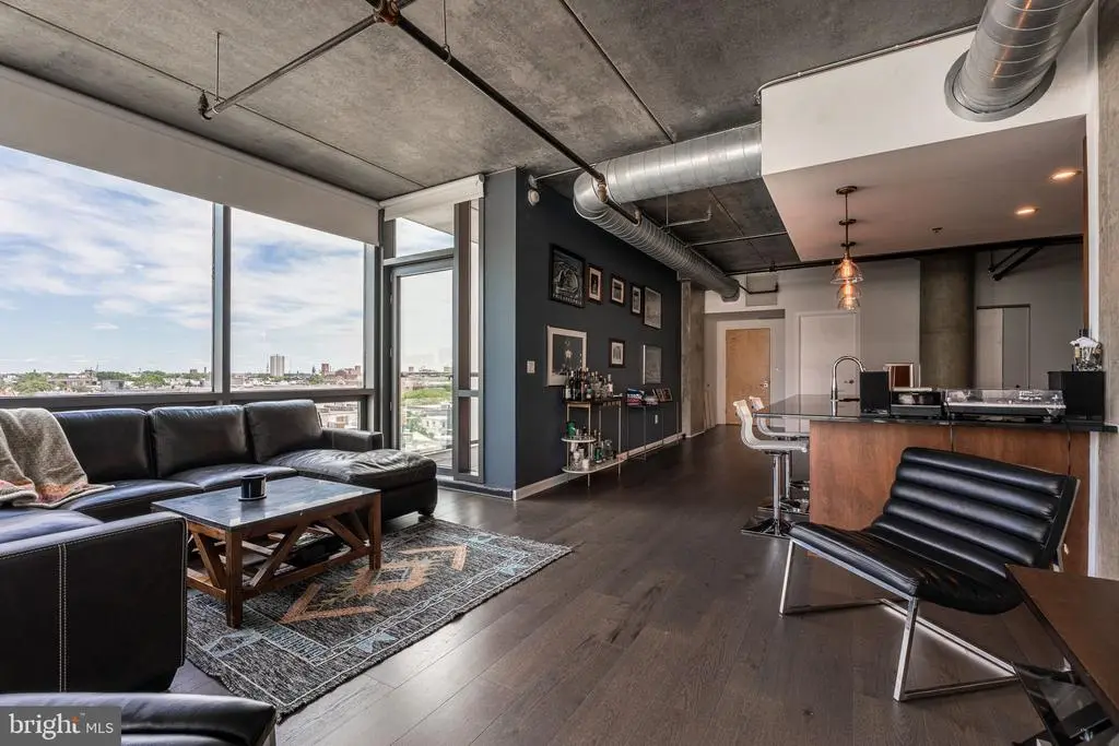 Price Improvement: Unbelievable Value ! A long awaited penthouse unit has come to market!! Spectacular views of center city! 1352 Lofts - - a 72 Unit contemporary mid rise condominium building at the Broad and South Street intersect. This 5th Floor unit has 1260 square feet over an open floor plan and 9 foot ceilings that flow really well together. Floor to ceiling windows - - incredible natural light with northern and eastern exposure. Private outdoor balcony off the living room. Wood flooring throughout, bold contemporary kitchen cabinetry and granite stone. Recessed lighting fixtures. In unit washer and dryer / Individually controlled central air heating and cooling. This unit comes with a deeded covered parking spot in the garage! The building offers a 24hr doorman, and a wonderful staff to maintain and serve. Whole foods grocery two blocks away and the abundance of activity on the South Street corridor. This is an exceptional opportunity to own a unique penthouse unit that rarely comes along in the neighborhood.