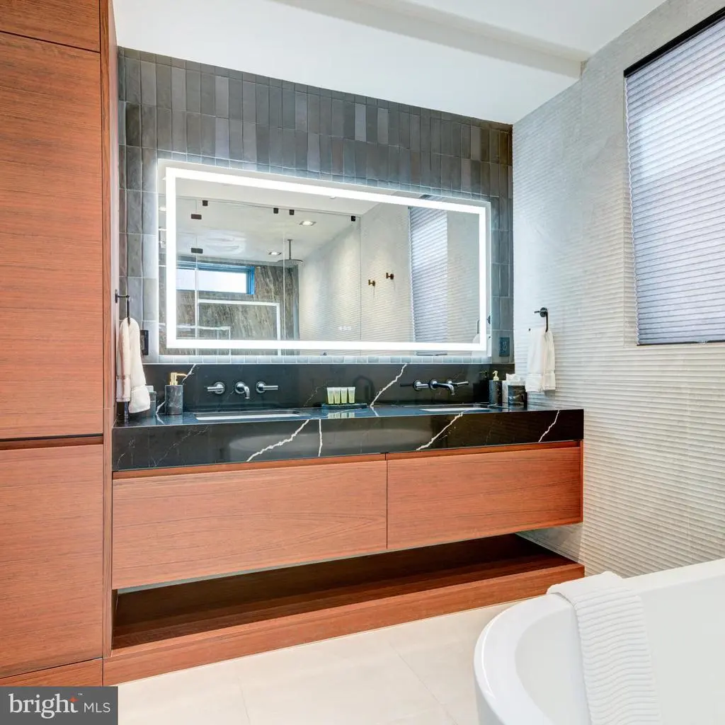 Welcome to The Residences at Extrava — an exclusive gated community redefining upscale urban living in the heart of Philadelphia’s prestigious Fitler Square neighborhood. This expansive 5,300+ square foot home blends sophisticated design with exceptional functionality and is being offered fully furnished, making it truly turnkey. Set on a quiet block, these 28-foot-wide homes offer an extraordinary sense of space and volume rarely found in the city. Featuring 4 generously sized bedrooms, 4 full bathrooms, 2 powder rooms, and a private 3-car garage with soaring 13-foot ceilings—ideal for car lifts and up to 6-car capacity—this home was designed with the modern luxury buyer in mind. A six-stop elevator services every level, from the dramatic double-height foyer to the show stopping rooftop deck with panoramic skyline views and a private hot tub. Interior finishes were curated in collaboration with Gnome Architects, J. THOM Design, and Zatos Investments, resulting in a seamless blend of modern conveniences and local craftsmanship. Rich herringbone hardwood flooring, custom white-oak floating staircases, and expansive walls of glass define the main living level. The kitchen is a chef’s dream—outfitted with Sub-Zero and Wolf appliances, imported Mobalco cabinetry from Spain, a quartz waterfall island, hidden butler’s pantry, and tray-ceiling dining area. A lofted den level provides incredible flexibility—ideal for entertaining, working from home, or relaxing—featuring a wet bar, metal slat accent wall, and glass railing system. Upstairs, two guest bedrooms include private en-suite baths and walk-in closets, while a dedicated laundry room features full tile work, built-in shelving, and a utility sink. The primary suite is a luxurious retreat covering an entire floor, complete with a wraparound balcony, wet bar, and fully customized California Closet. The spa-like bath boasts heated floors, dual rain showers, steam room, soaking tub, and floating dual vanities. Finally, the top offers the ultimate indoor-outdoor lifestyle: a sky lounge with powder room and wet bar that opens directly onto an oversized roof deck with a hot tub and unobstructed Center City and river views. Additional highlights include automated blinds on all windows, full Smart Home wiring, and a 10-year property tax abatement (ends 8/31/2034). Fitler Square is celebrated for its blend of historic charm and modern conveniences, with access to the Schuylkill River Trail, top-ranked schools including Albert M. Greenfield, major medical institutions, and the region’s top universities just minutes away. Extrava isn’t just a home—it’s a lifestyle statement.