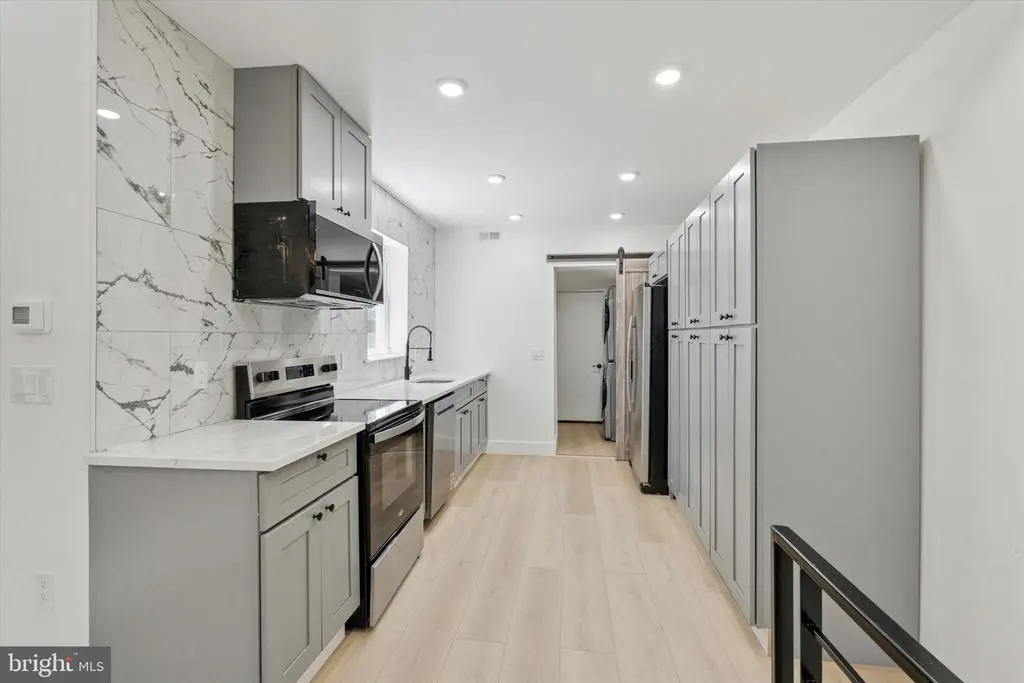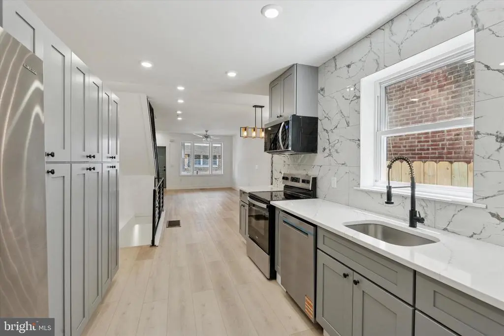 Welcome to 1910 East Atlantic Street, a stylishly renovated three-bedroom, 1.5 bath townhome in the heart of Harrowgate! Offering 1,480 square feet of multi flex living spaces like the charming front porch, back patio and fully finished basement. This home has multiple upgrades like chic wood floors throughout, artistic accent wall, all new windows, all new major mechanicals, upper floor laundry, recessed lighting and open concept living/dining. The home is highlighted by an elegant monochromatic color scheme showcasing the kitchen’s flush cabinetry, stainless steel appliances, and ample counter space—perfect for cooking and entertaining. The first floor also boasts a large secluded half bath with full size laundry and sizable concrete patio ready for relaxing and container gardening. The lower level offers a fully finished basement with incredible versatility as a second living area, home gym, office, or playroom. On the second floor you will find three bedrooms all with ample closets and loads of natural light. The three piece full bathroom completes the second floor with stylish finishes and fixtures. Conveniently located in the John Webster School District, this home is just minutes from I-95, Tioga train station, and steps to Harrowgate Park. Plus, Heitzman Recreation Center with a public pool just 3 blocks away, providing great amenities for active lifestyles. Located right off of Frankford Ave with great proximity to public transportation. It's also a short 5 minute drive or 10 minute walk to Aramingo Avenue for shopping and also public transit. This home is eligible for the **NeighborFirst Program**. Home buyers receive discounted interest rates, no PMI (private mortgage insurance) and the loan has no income limits. First time home buyers are also eligible for a $6,000 closing cost credit! Program details and qualifications are provided with the home's documents. Don’t miss the opportunity to own this spotless move-in-ready home with great walkable amenities!