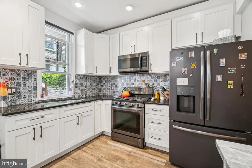 Welcome to 1523 N Hollywood Street, a beautifully updated 2-bedroom, 2.5-bath townhome in the heart of Brewerytown, one of Philadelphia’s fastest-growing neighborhoods. This home blends timeless character with modern upgrades, featuring a finished lower level with a full bath and standout curb appeal. Inside, the open-concept main floor boasts durable tile flooring with a hardwood look, recessed lighting, and a flexible living/dining layout. The updated kitchen anchors the space with white shaker cabinetry, granite countertops, a custom tile backsplash, and Samsung stainless steel appliances, all bathed in natural light. Upstairs, two spacious bedrooms include a primary suite with an oversized walk-in closet, while the remodeled full bath offers a double vanity and modern finishes. The fully finished basement adds versatile living space, ideal as a guest suite, home office, studio, or gym, complete with a full bath, laundry, and storage. Outdoor living is just as inviting: sip coffee on the covered front porch or enjoy the private rear patio for entertaining and relaxation.