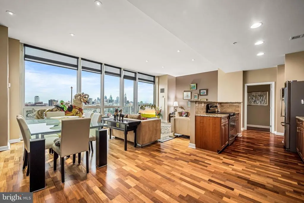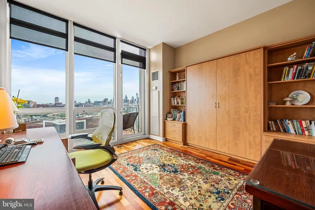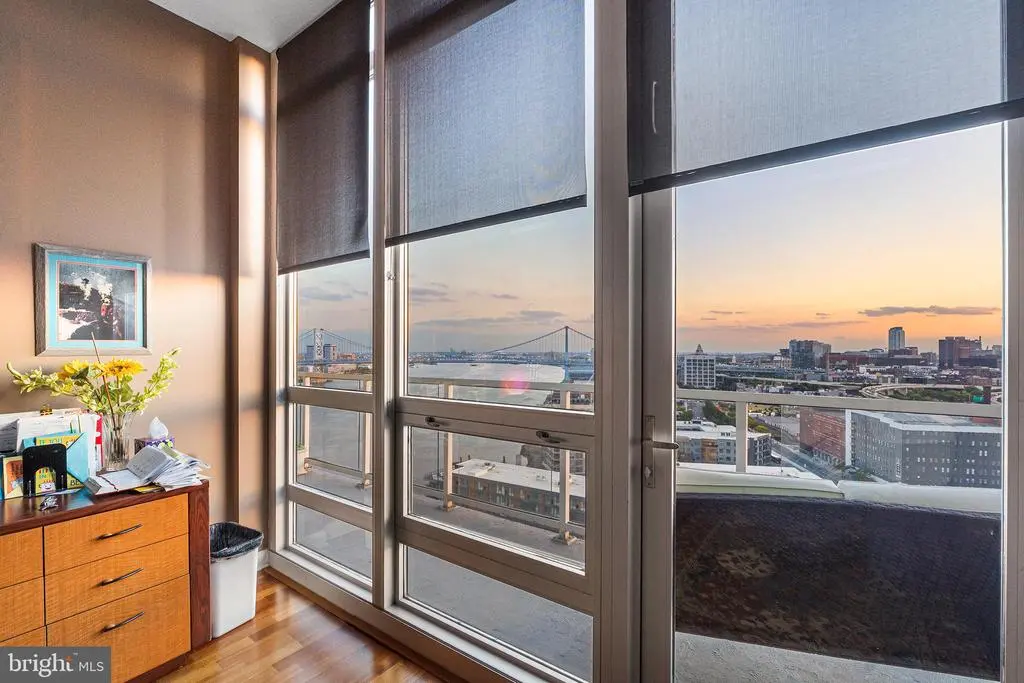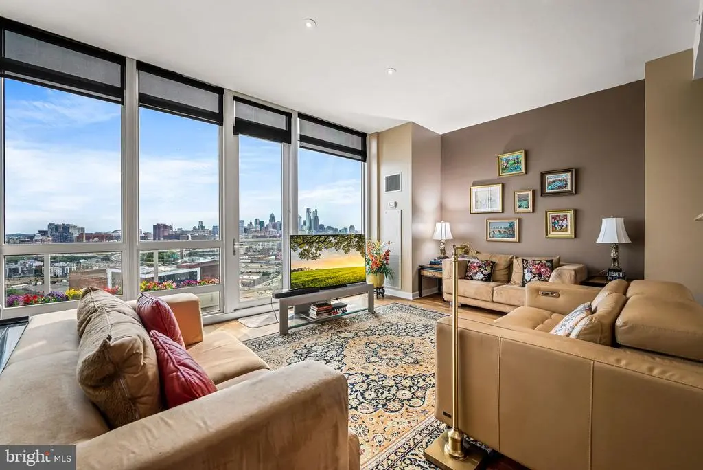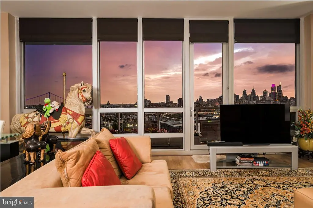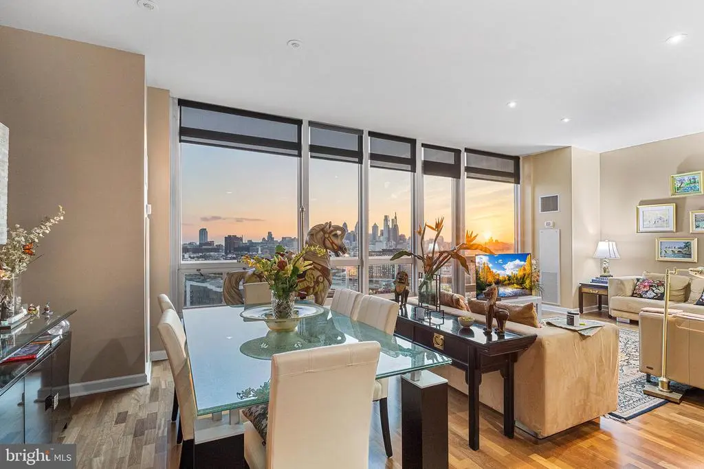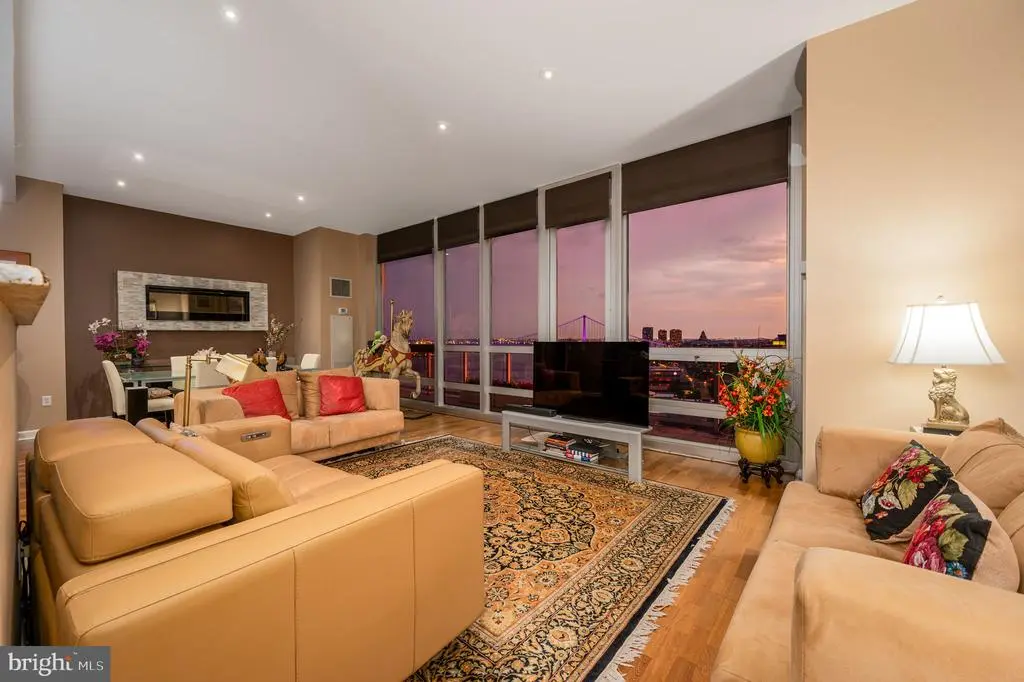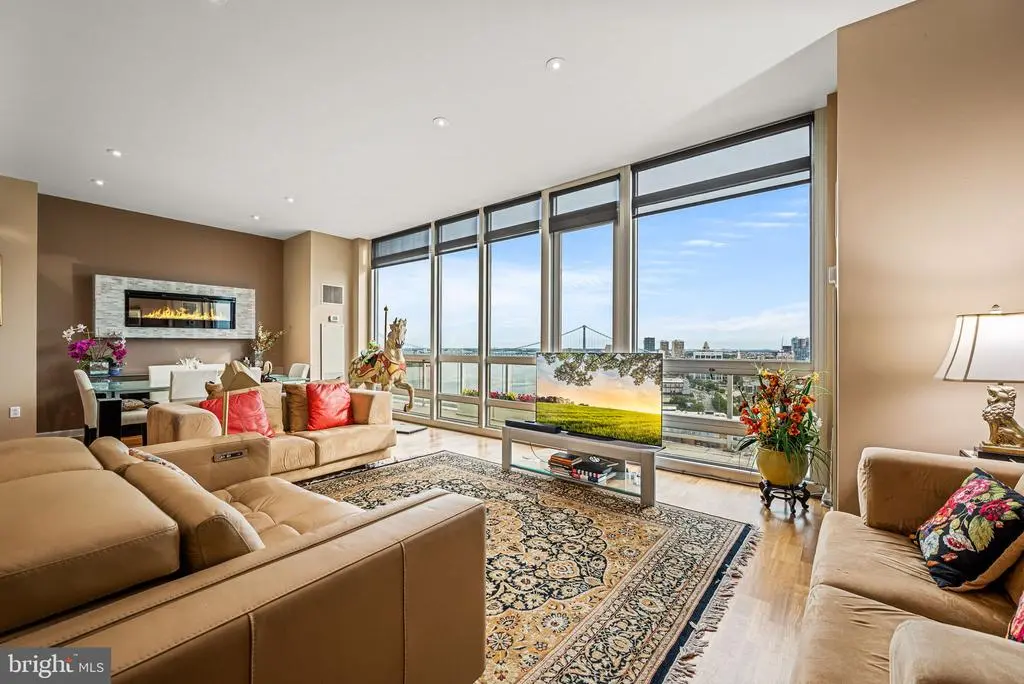 Now offered at a compelling new value, Residence F2003 combines unmatched luxury with spectacular city and river views. Featuring two dedicated garage parking spaces, this high-floor residence in the prestigious Reef building delivers one of the most enviable vantage points in Philadelphia. Enjoy unobstructed panoramas from sunrises over the Delaware River to Center City’s glittering skyline and golden sunsets to the west. Step inside to discover floor-to-ceiling windows and an expansive private balcony, designed to capture light and frame breathtaking vistas. The open layout is perfect for both entertaining and everyday living, anchored by a fully redesigned chef’s kitchen with a skyline-facing island, custom cabinetry, granite countertops, and premium stainless steel appliances. Two spacious ensuite bathrooms/bedrooms with custom closets and balcony access offer privacy and comfort, accompanied by a third full bathroom. A large enclosed den provides versatility as a third bedroom, office, or media lounge. Thoughtful upgrades throughout include hardwood floors, renovated baths, designer sunshades, a Murphy bed, wall-mounted fireplace, and a reimagined laundry room with custom storage, truly a turnkey home ready to enjoy. Residence Highlights: Unobstructed views in every direction, from Delaware River sunrises to Center City’s glittering skyline and golden sunsets Two dedicated garage parking spaces with convenient EV charging Expansive private balcony with skyline and river views, accessible from each bedroom and the living room Floor-to-ceiling windows flooding interiors with natural light Redesigned chef’s kitchen with skyline-facing island and custom finishes Two ensuite bedrooms, three full bathrooms, and enclosed den for flexible living Thoughtful upgrades including hardwood floors, renovated baths, and custom closets Lifestyle & Amenities: Resort-style living with 24/7 concierge service Complimentary weekday shuttle to Center City Indoor junior Olympic pool and hot tub for wellness and relaxation Wrap-around river sundeck with expansive outdoor lounging and waterfront views State-of-the-art fitness center with steam, sauna, and massage rooms Philadelphia’s largest green roof parks with 9.5 acres of landscaped areas with tables for entertaining Play area and community herb garden On-site exercise classes Two fenced dog parks for pets Twice-yearly exterior window cleaning to maintain crystal-clear views Semi-annual A/C and heating filter changes for optimal comfort Community Setting: Private 9.5-acre riverfront enclave offering serenity and convenience Prime location just minutes to Center City, major highways, bridges, and the airport This exceptional residence presents a rare opportunity to experience elevated city living with unmatched views, thoughtful upgrades, and premier amenities. Schedule your private tour today and see why Residence F2003 is one of Philadelphia’s most coveted addresses.