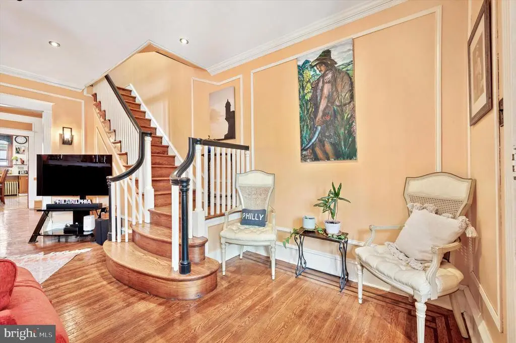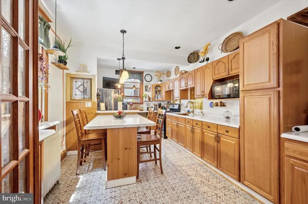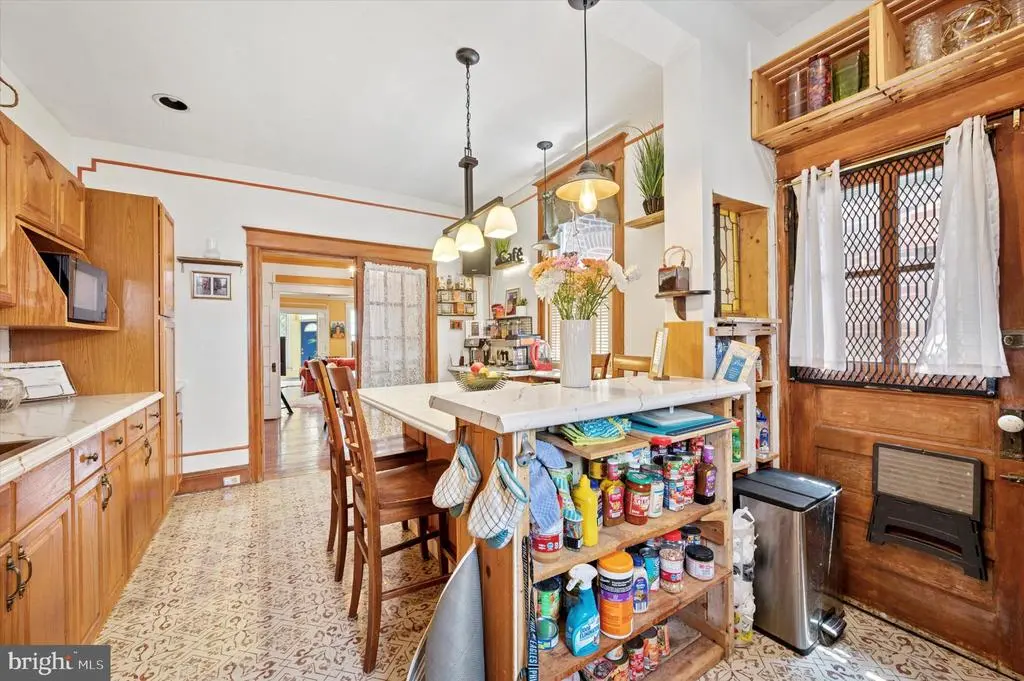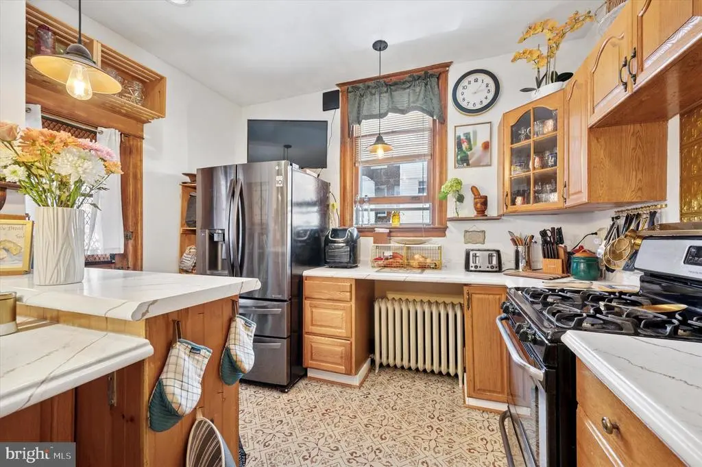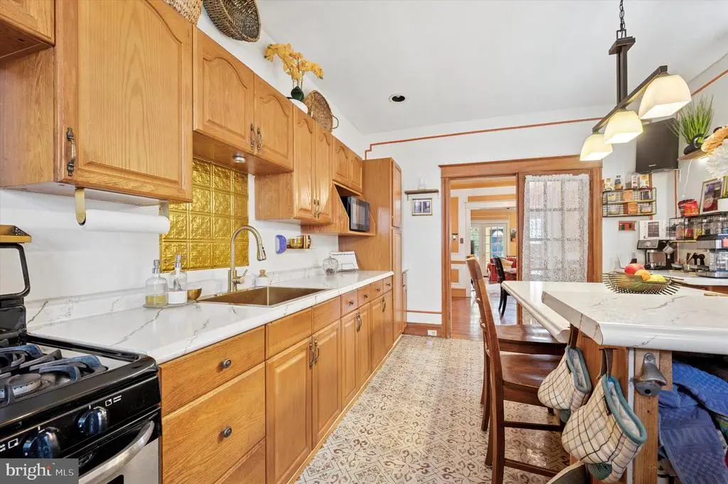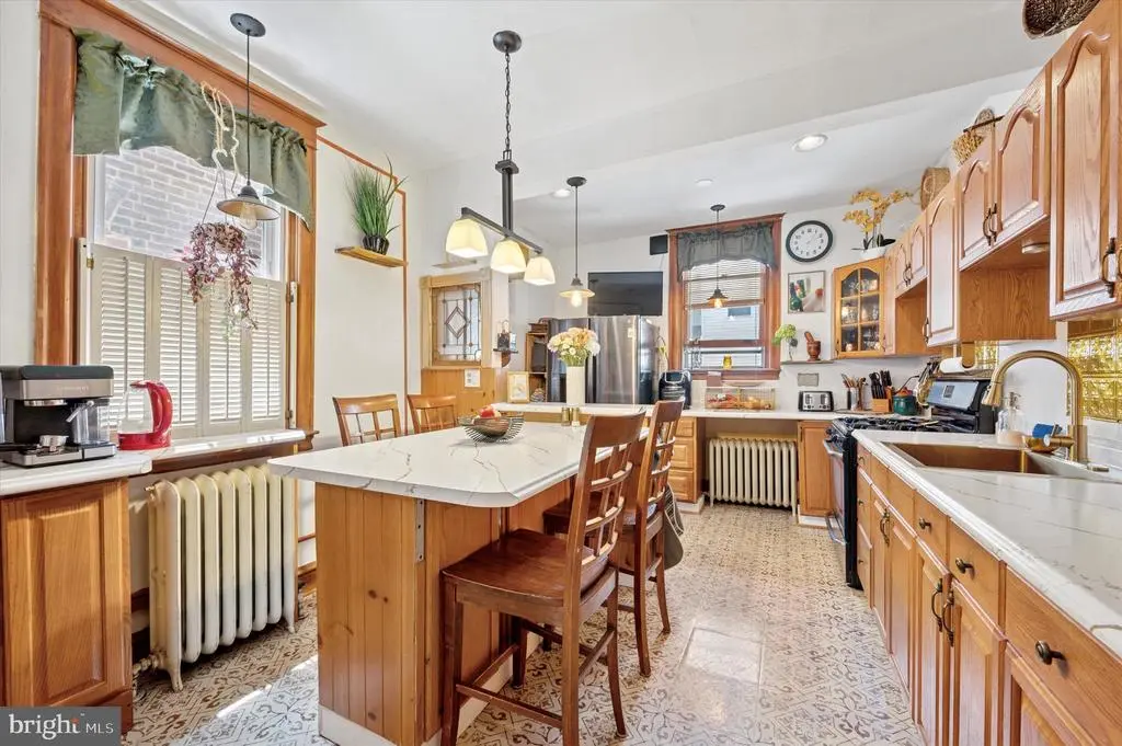 Welcome to 5642 N 10th St. This 4-bedroom, 1 bathroom home has soo much charm. Coming up the stairs to the front door, take notice of the beautiful garden patio perfect for relaxing on a warm summer night. Entering into the home is an enclosed porch with beautiful titles and sunlight. Past the sunroom enter into the living room complete with a gas fireplace and plenty of space for entertaining. Past the living room is a dining room and huge eat in kitchen equipped with a built-in island table and chairs. The kitchen countertops, floors , sink and island were remodeled in 2024. Additionally the kitchen boasts its own coffee bar area. Going up the steps to the second floor, the front bedroom is drenched with sunlight and features a vaulted ceiling. The upstairs also has a full bathroom and three spacious bedrooms with ample closet space throughout. The home features original hardwood floors that were sanded and stained in 2024. The basement is the length of the house and has plenty of potential to be remodeled. The basement also has access to the garage which has room for extra storage and a car. The mechanicals of the home are all newer and the heater was replaced in 2021 and water heater in 2020. The roof was given a new coating in 2022. This home is close to transportation for easy access to Center City via the Broad Street Line, Regional Rail line to the Airport and bus line at the end of the block. Olney transportation center, Einstein Hospital and Cherashore park are just blocks away.