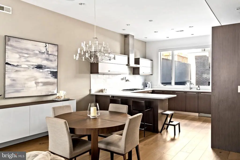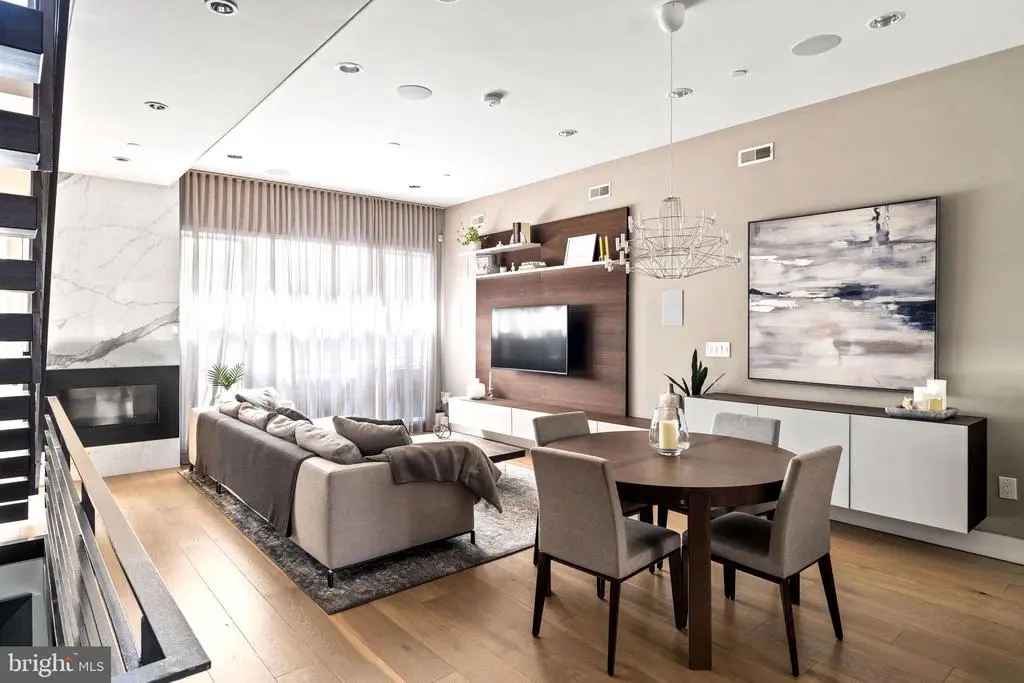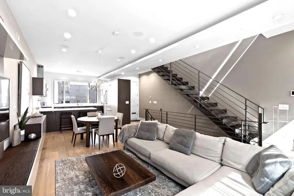Introducing 204 W Laurel Street, a luxury residence in the exclusive Laurel Court community in Northern Liberties—just steps from Liberties Lands Park, The Piazza, and top dining, markets, and nightlife. This three-story townhome offers nearly 3,000 Sq Ft, with 3 bedrooms, 3 full baths, 1 half bath, private parking, and multiple outdoor spaces, including a rear patio with gas line, primary suite terrace, and a large roof deck with gas line and skyline views. Inside, the home features custom European-style wood veneer cabinetry, Silestone quartz countertops, porcelanosa kitchen and bath design, and a custom tile backsplash. Additionally - a full suite of panel-ready Thermador appliances, including a 36” gas cooktop, integrated refrigerator and dishwasher, convection oven and microwave, and pot filler. Main living areas boast 3/4” hardwood floors, oversized Andersen 400 windows, a gas fireplace, motorized shade wiring, and 5.1 surround sound prewiring. The open-riser staircase is a design focal point, built with solid wood treads, steel stringer, and custom metal railings. The primary suite includes a large walk-in closet system, floor-to-ceiling windows, and a spa-like bath with freestanding soaking tub, 6’x4’ rain shower with body sprays and hand shower, custom floating double vanity, and wall-mounted European toilet. The finished basement includes heated porcelain tile floors, a full bath, and a large storage/flex space ideal for a gym or guest suite. A pilothouse wet bar with sink and wine fridge offers convenient access to the roof deck. Additional highlights: Dual-zone high-efficiency HVAC, 200 Amp electric, CAT6 wiring + video intercom system, Prewired for full home automation, TREX composite decking, 20-year certified TPO roof, NuHeat radiant heating in basement floors, 10’ ceilings on living and primary levels. A rare blend of thoughtful architecture, custom finishes, and prime location. 204 W Laurel Street delivers high-end living in one of Philadelphia’s most coveted neighborhoods.