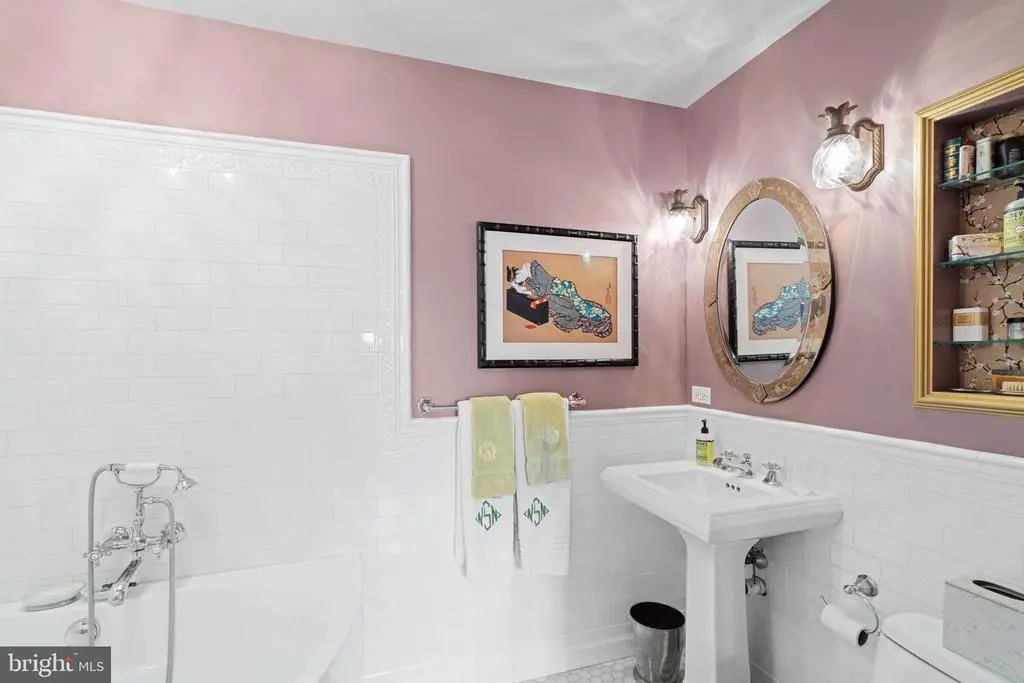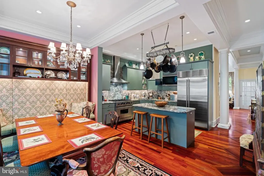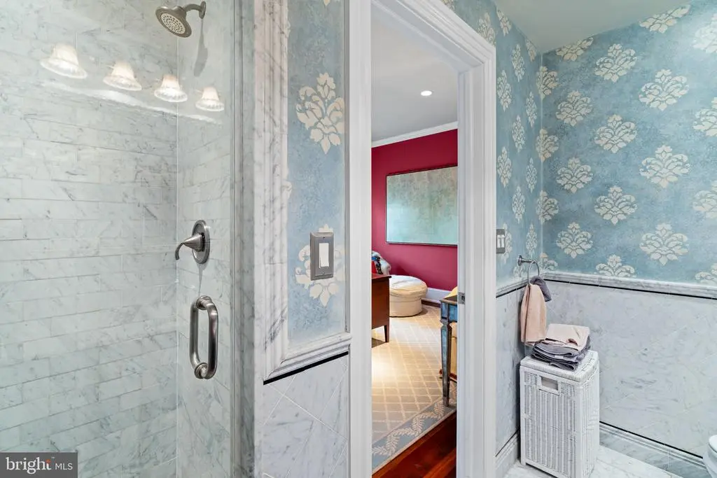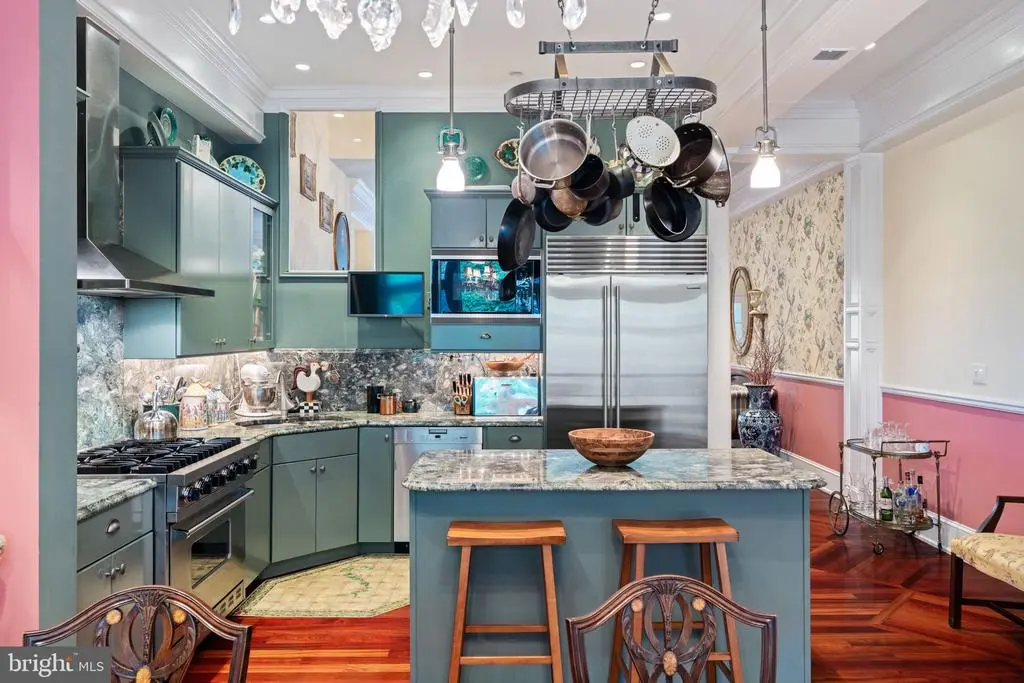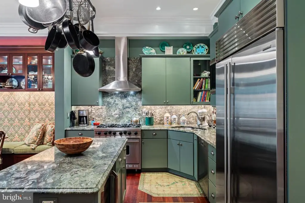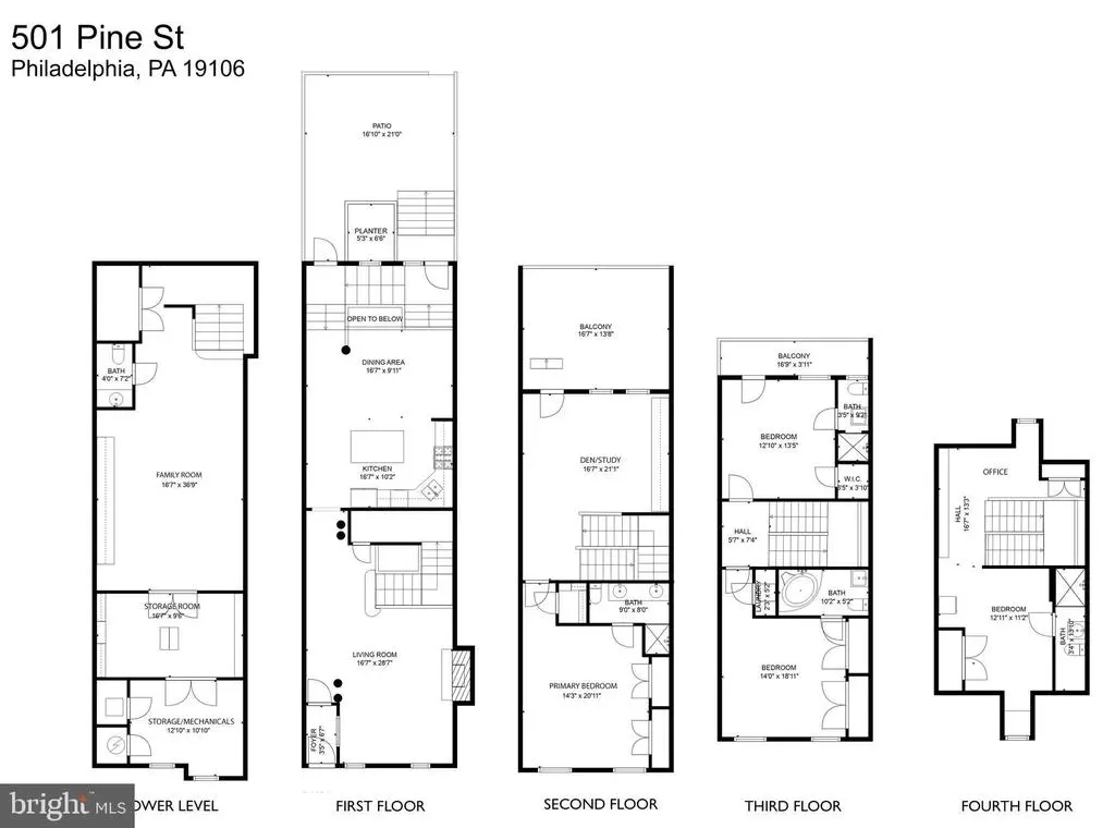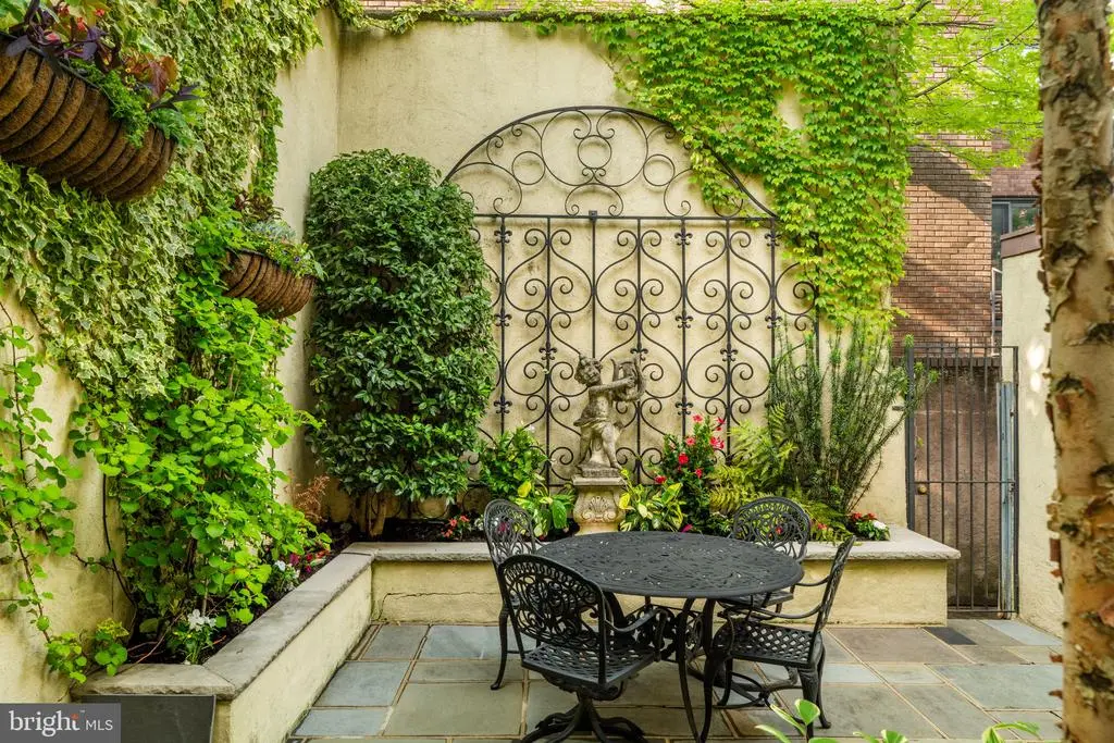 Impeccably designed four-story townhome with a finished lower level and spectacular backyard oasis along storied Pine Street. This gorgeous home boasts excellent entertaining space, hardwood floors, high ceilings, custom built-ins, incredible natural light, and multiple outdoor spaces including a one-of-a-kind rear patio with exquisite hardscaping. Enter the home through a vestibule with marble tile floor and glass-paned door into a light-filled living room boasting two large windows overlooking Pine Street, a gas fireplace with marble surround, large coat closet, and access to the grand central staircase with beautiful wood work and trim. Past the living room is the beautifully appointed chef's kitchen with flat wood cabinetry, granite countertops and backsplash, double bowl stainless steel sink with garbage disposal, center island with Dacor wine refrigerator and breakfast bar, and high-end stainless steel appliances including a Sub Zero refrigerator, Viking oven with six burner gas range and Faber hood, Wolf built-in microwave, and Miele dishwasher. Open to the kitchen is the formal dining space with room to easily fit an eight-person table and a spectacular view of the rear patio from a wall of floor-to-ceiling windows. From the lush climbing vines to the high stone walls, this gorgeous patio is the ideal private urban oasis. Features include bluestone pavers, built-in stone garden beds, water hookup, space for grilling and outdoor dining, and steps leading to the lower level. Unique to this type of home is the expansive finished lower level with standard ceiling height and incredible entertaining and storage space. There is a built-in entertainment center with display shelving and storage, built-in speakers, stone tiled powder room, open skylight looking upwards towards the center of the main staircase, secondary storage room behind a set of French doors, and a third storage room with easy access to the home's mechanicals. The second floor houses a cozy den/study with built-in entertainment center and bookcase and the primary suite. Off of the den is a large balcony nestled in the trees, that's perfect for enjoying a morning cup of coffee. The spacious primary suite features two large windows overlooking Pine Street, excellent closet space, built-in speakers, and an ensuite bathroom with designer marble tilework, double wooden vanity with marble top, and a glass-enclosed shower. The third floor has two large bedrooms both with ensuite bathrooms and excellent closet space. The rear bedroom is currently being used as an office and enjoys access to a French balcony. The front-facing bedroom has a laundry closet with stacked washer/dryer and a beautifully appointed bathroom with corner soaking tub. Walking up to the fourth floor, you will immediately notice the three-pane skylight that floods the staircase and room with natural light. There is a built-in desk nook, perfect for a home office, and a front-facing bedroom with marble appointed ensuite bathroom and wall closet. Additional home highlights include recessed lighting, 2GIG smart security system, Diamond wood floor inlay from the living to dining room, California closets all with custom-built-ins, and exquisite moldings and trim throughout. Located in the desirable Society Hill neighborhood walking distance to Washington Square and South Street. In close proximity to the Delaware River waterfront, incredible restaurants, parks, cafes, retail, theaters, and cultural institutions. There are multiple monthly parking options nearby, as well as ample on-street parking.