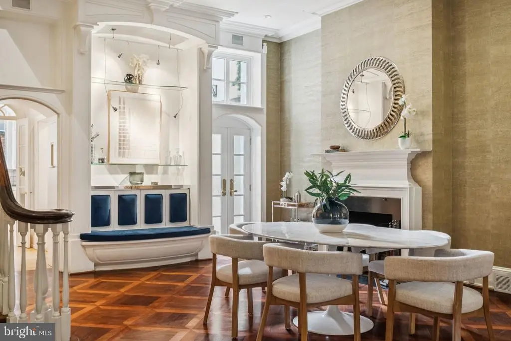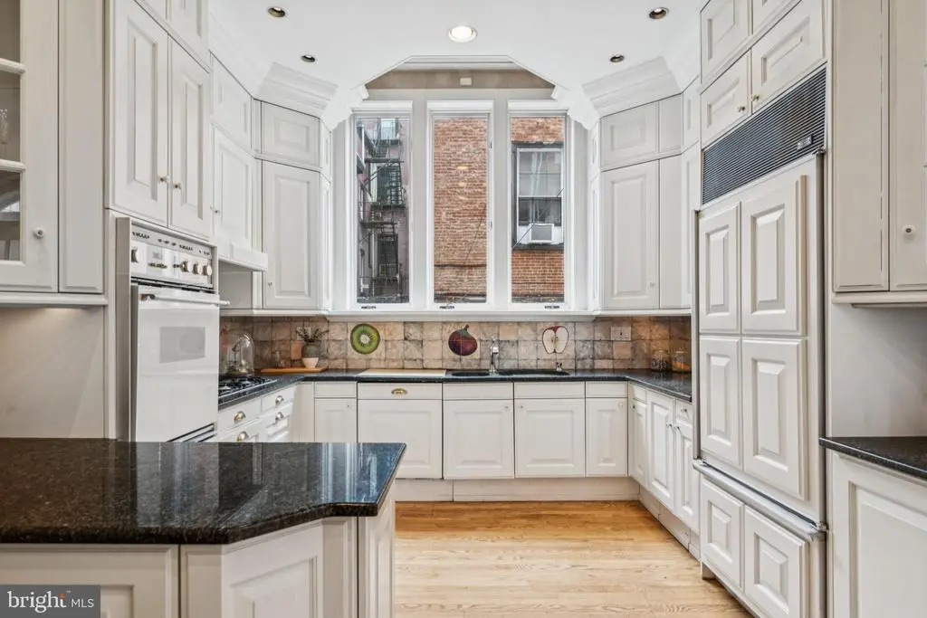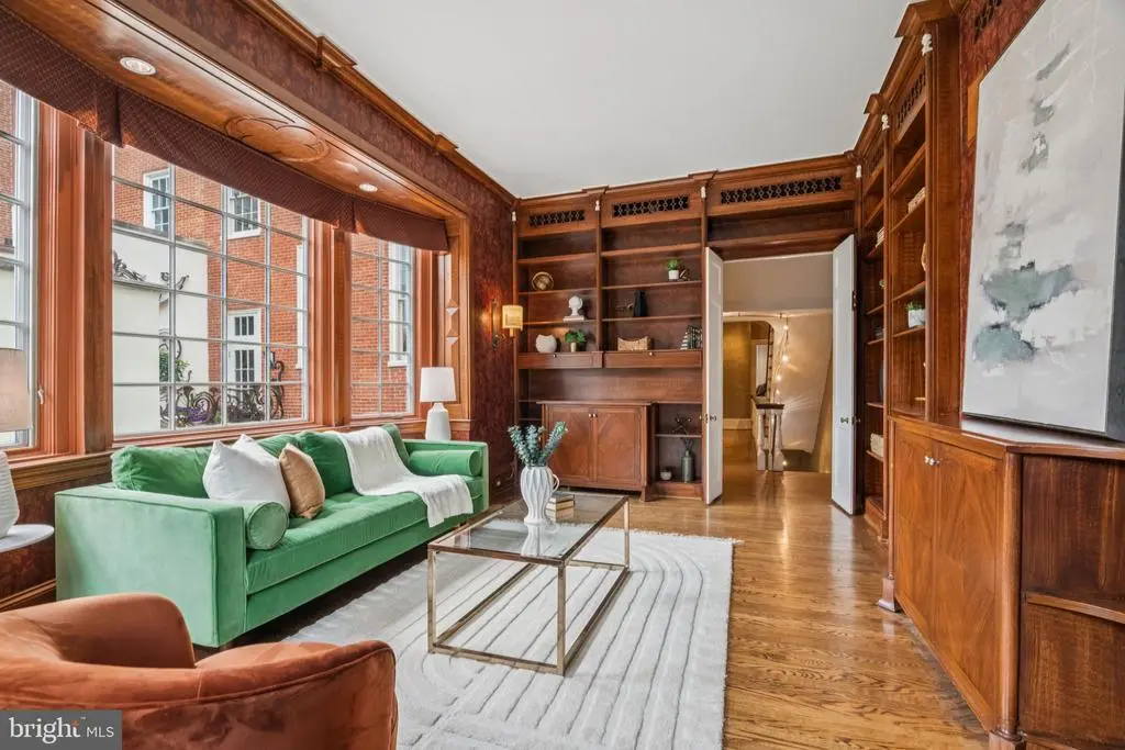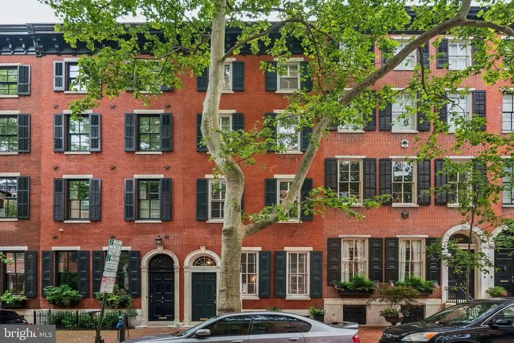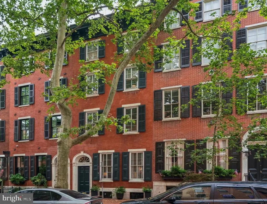Welcome to 1818 Delancey Place—a magnificent 20-foot-wide historic residence with Garage Parking, nestled on one of Philadelphia’s most iconic and coveted blocks. Just one block from Rittenhouse Square, this elegant Federal-style home offers over 4,300 square feet of sun-drenched, beautifully proportioned living space, blending timeless architectural detail with modern comfort and flexibility. Enter through dual arched foyers and ascend two marble steps into a grand, light-filled formal dining room with soaring 12-foot ceilings, intricate crown moulding, and a stately original fireplace. A decorative niche provides the perfect spot to showcase artwork, creating a striking focal point. Custom inlaid flooring flows gracefully through the main level, visually connecting each space. A large archway leads to the refined living room at the front of the home, where tall windows overlook tree-lined Delancey Place and its distinguished facades, filling the space with natural light. Just off the dining room, French doors open to an intimate deck—also accessible from the spacious eat-in kitchen—perfect for morning coffee or evening cocktails. The expansive kitchen is anchored by a large, south-facing window that floods the space with natural light. With abundant cabinetry and generous proportions, it's ideal for designing your dream chef’s kitchen. A wide hallway connects the kitchen to the dining area and includes a coat closet, powder room, and access to the basement. The second floor features a sunlit, oversized library at the top of the stairs, complete with custom bookshelves, a wood-burning fireplace, and an adjacent wet bar—perfect for reading, relaxing, or entertaining. At the front of the home, the luxurious primary suite features high ceilings, tall windows, recessed lighting, and a decorative marble fireplace. Dual closets—including a walk-in—lead to the spacious en-suite bath, a marble-and-tile retreat with spa-like elegance. On the third floor, you’ll find two generously sized bedrooms with high ceilings, ample closet space, and en-suite baths. The front bedroom includes a private dressing room, while the rear bathroom exudes vintage charm with a clawfoot tub and beautiful tilework. The fourth floor offers a versatile front room with original random-width hardwood floors and a large skylight—perfect for a bedroom, studio, home office, or playroom. This level also includes a half bath, additional closets, and access to a potential roof deck. A bonus room adds flexibility as a gym, creative studio, or luggage room, or even a 6th bedroom. The partially finished basement features a spacious laundry room with double soaking sinks, a temperature-controlled wine cabinet, a half bath, ample storage, and direct access to the one-car garage via a heated driveway on Panama Street. Additional highlights include three working wood-burning fireplaces, three-zone HVAC, and built-in surround sound. With its unparalleled location, rich history, and expansive layout, 1818 Delancey Place is a rare opportunity to own a truly exceptional home on Philadelphia’s most admired street.