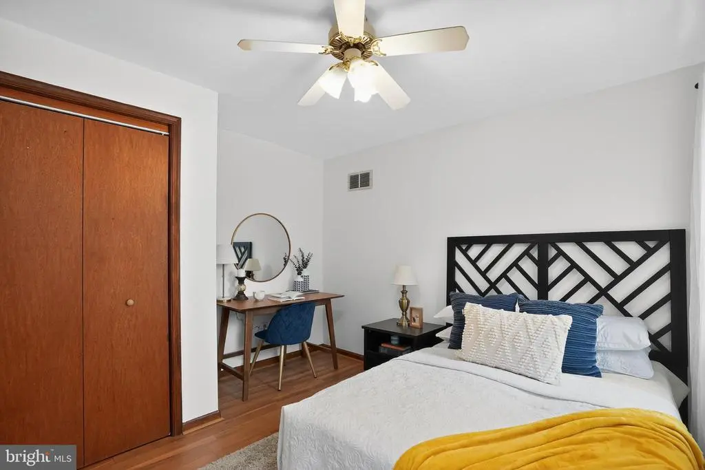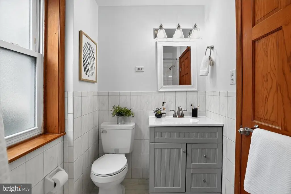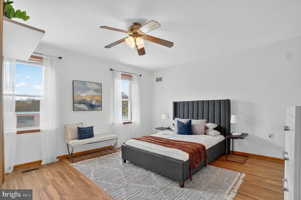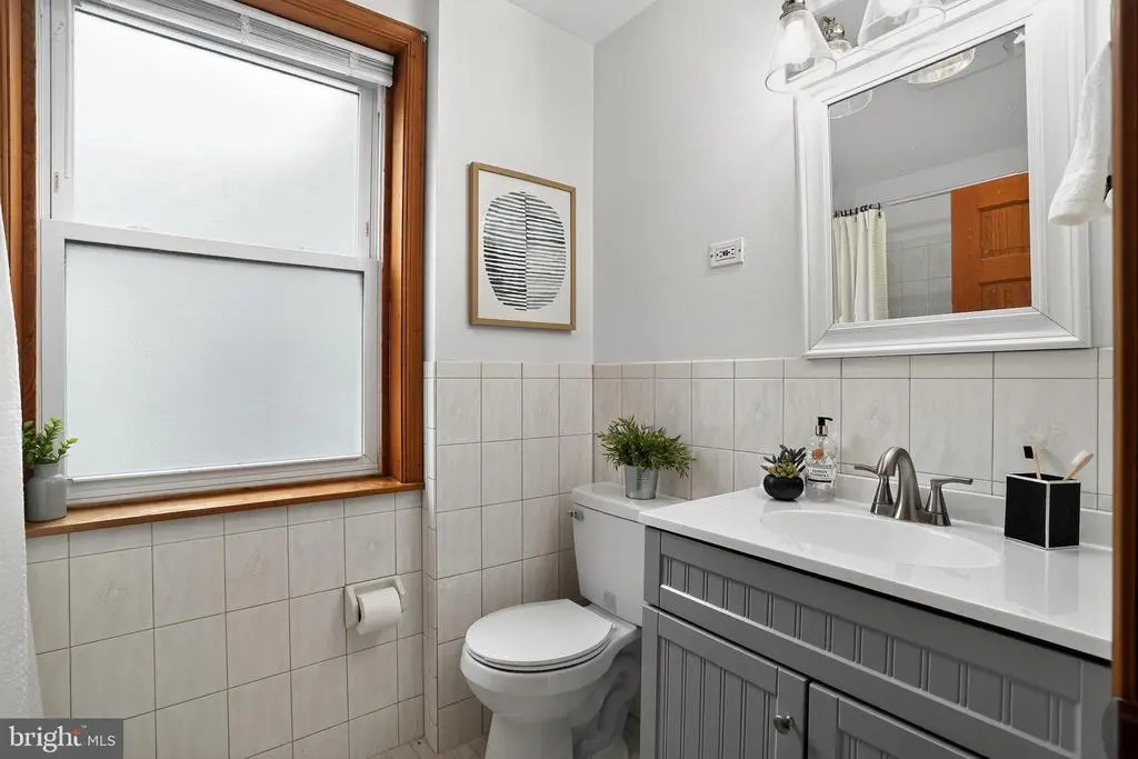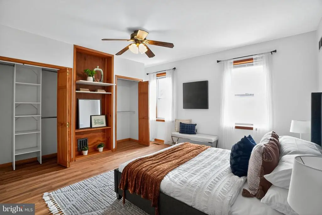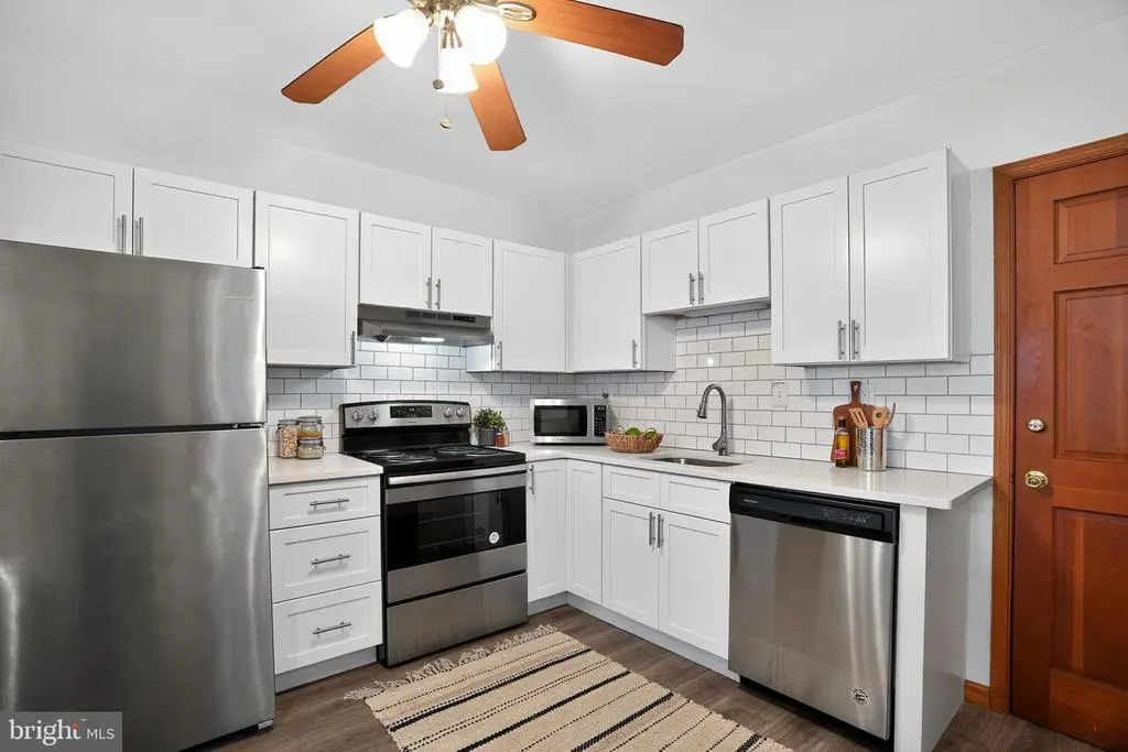 The two story townhouse, in move in condition, is located in the historic Francisville/Fairmount area of Philadelphia. Enter into a vestibule and then into an open Living Room with ornamental marble fireplace and ceiling fan. Dining room with chandelier and both Living Room and Dining Room have solid oak floors and crown molding. The Living room/Dining room is visually open to the Kitchen with a breakfast bar, stainless steel appliances, quartz countertops, ceiling fan and subway tile back splash. Through the kitchen is another room that has a pantry closet, laundry facilities and a separate Powder Room. This room leads to the back patio with privacy fencing. The 2nd Floor has three Bedrooms, with laminate floors and ceiling fans. There is a hall tiled Bath, cedar coat closet and, a full linen closet. Also on the 2nd floor, is a larger cedar closet with shelving.. Full basement with plenty of storage. High Efficiency HVAC system replaced in 2021- forced air with central air. The house faces a park, community center and pool. Walking distance to the historic Eastern State Penitentiary, the Art Museum and Fairmount Ave. restaurants, shops and accessible public transportation.