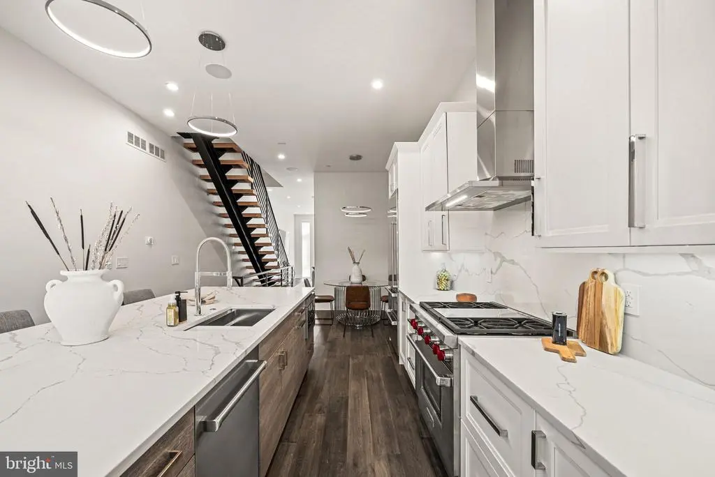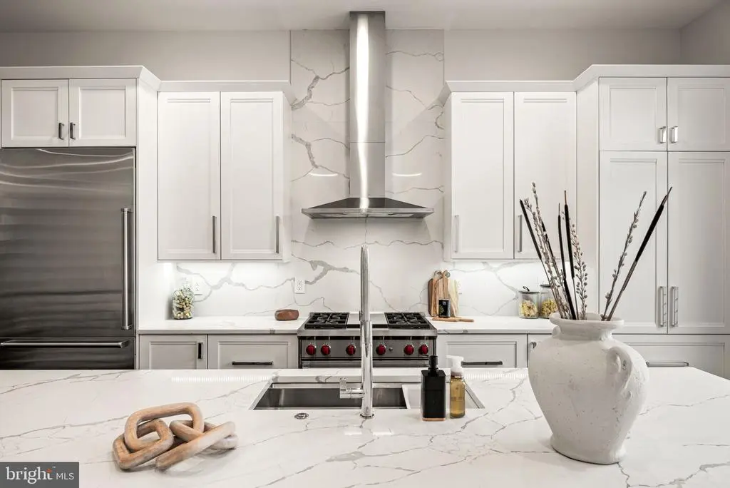 Come to the OPEN HOUSE. This home is also available for rent. At 1217 Bainbridge Street, it begins the moment you arrive. Through the foyer, you’ll find a spacious two-car garage, an uncommon luxury in the heart of the city. Just beyond, a flexible bonus space awaits: home gym, art studio, or media room, the choice is yours. Up one level, the main floor unfolds into a space designed for entertaining or relaxing. Soaring 11-foot ceilings and floor-to-ceiling windows flood the living room with natural light. The floating staircase becomes a sculptural centerpiece, guiding you toward a true chef’s kitchen: Wolf® gas range, Sub-Zero® refrigerator, sleek quartz counters, 46” cabinets, and a large dramatic island with wine fridge. Just outside, a private grilling terrace adds a fresco charm. On the next level, you’ll find two generously sized bedrooms, one with its own en-suite bathroom plus a full hall bathroom. The laundry room is tucked here too, with a full sized side by side washer and dryer, custom cabinetry, and a folding counter to make life easy. And then there's the top floor: a full-floor primary retreat. Your spa-inspired bathroom features radiant heated floors, Carrara marble, rainfall shower, freestanding soaking tub, and dual floating vanities. A walk-in closet, dry bar, and private powder room elevate the experience further. From here, step onto the rooftop deck with built-in speakers, water, and electric, your own sky-high living room with city views. Wide-plank hardwood floors, centralized vacuum, Sonos® audio system, and custom lighting throughout the home complete the picture. A tax abatement through 2029 adds value. Set in Bella Vista, steps from Whole Foods, Sprouts, Rittenhouse Square, the Italian Market, and Washington Square, this home offers the space with the walkability to all of the culture of Philadelphia’s most beloved neighborhoods.