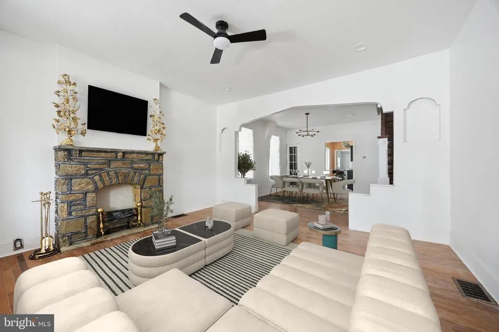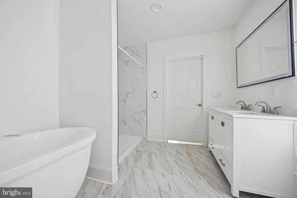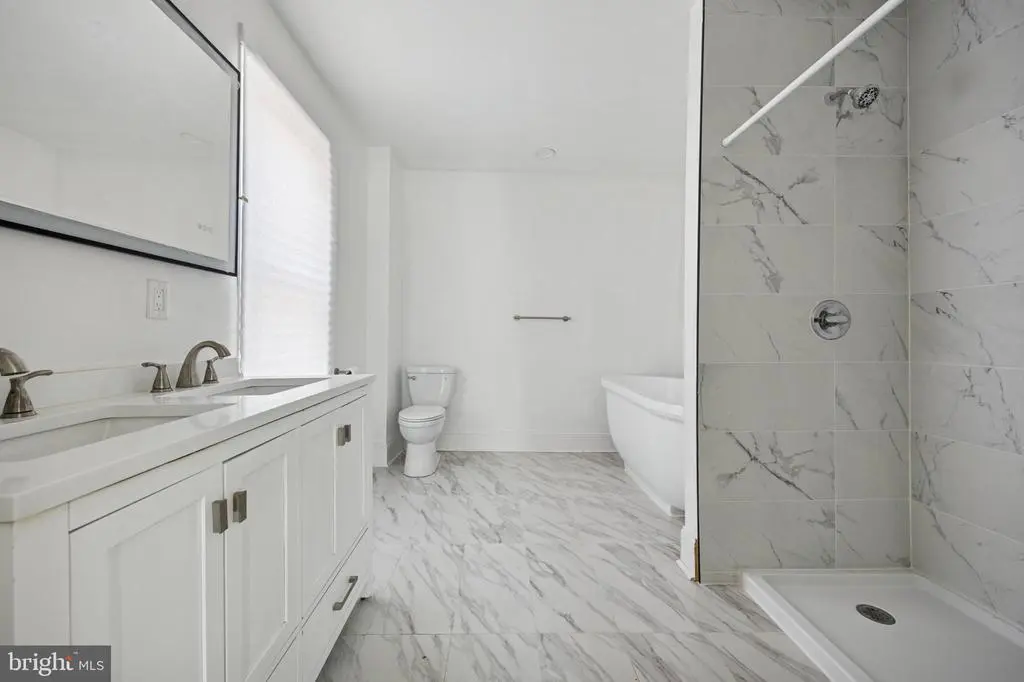 Quality renovations done throughout this Germantown home located within walking distance to the beautiful Awbury Arboretum . Beautiful kitchen with island, new stainless appliances and stylish lighting. Laundry room with new washer and dryer. All wood floors have been installed throughout the home, on all 3 floors and all new windows ! Spacious bedrooms , all with closets. Primary bedroom ensuite with walk-in shower and freestanding soaking tub in oversized bathroom makes this home an outstanding retreat for everyday life. Driveway and street parking; green and lovely backyard.