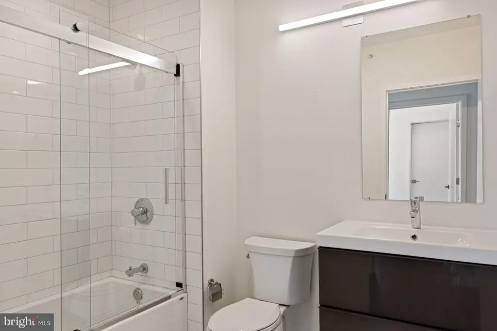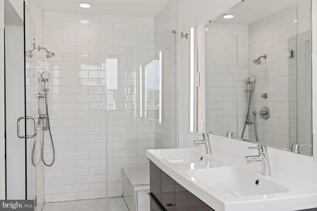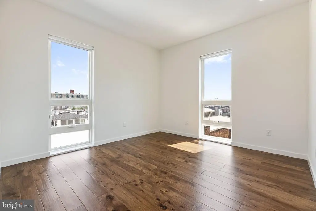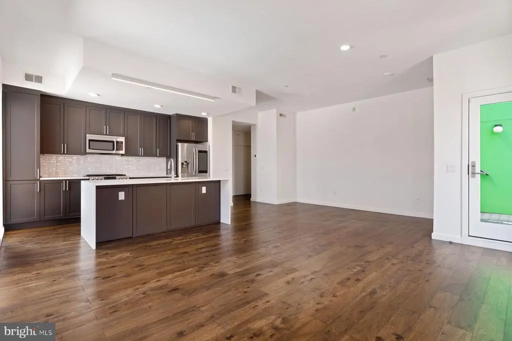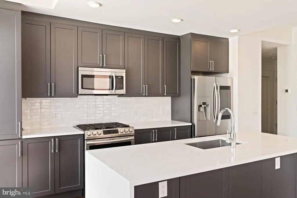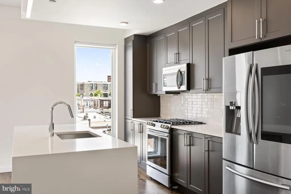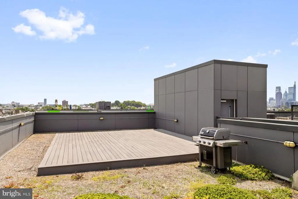 Welcome to Penthouse PH4 at Otto On The Park, a top-floor 2-bedroom, 2-bathroom corner unit offering 1,256 square feet of refined living space and a sprawling 1,300-square-foot private roof deck with panoramic Center City views. Sunlight pours through 7-foot-tall windows, illuminating the open-concept layout that seamlessly connects the smart kitchen—featuring a waterfall island and Samsung Family Hub refrigerator—to the main balcony, perfect for entertaining. The primary suite boasts a walk-in closet and a luxurious en-suite bathroom with dual vanities, a glass-enclosed shower with dual sprayers, and a stone bench. The second bedroom also includes a walk-in closet and is served by a tiled hall bath with a soaking tub. Additional amenities include a laundry closet, coat closets, and an open office nook. Residents enjoy keyless building access, a Nest thermostat, and one deeded, gated parking space. Situated in Brewerytown, PH4 is within walking distance of local favorites like Rival Bros Coffee, Baby's Kusina + Market, New June Bakery, and Harper's Ice Cream, offering a neighborhood experience unlike most!