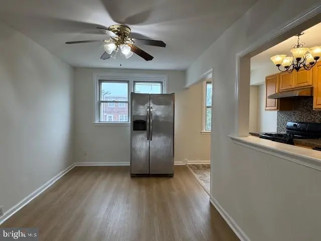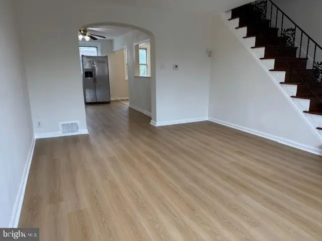 Home features 3 bedrooms, 1 and half bathroom in Mayfair West. New paint and vinyl flooring on first and second level. New tile kitchen floor. New heating and AC installed in 2024. Upper level with 3 bedrooms, 1 bath. Finished basement with powder room, carpet flooring. Private fenced in backyard with driveway. Close to I95, transportation and shopping.