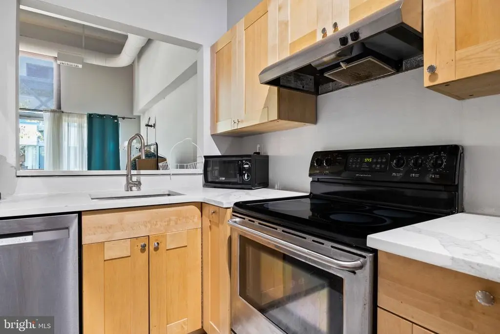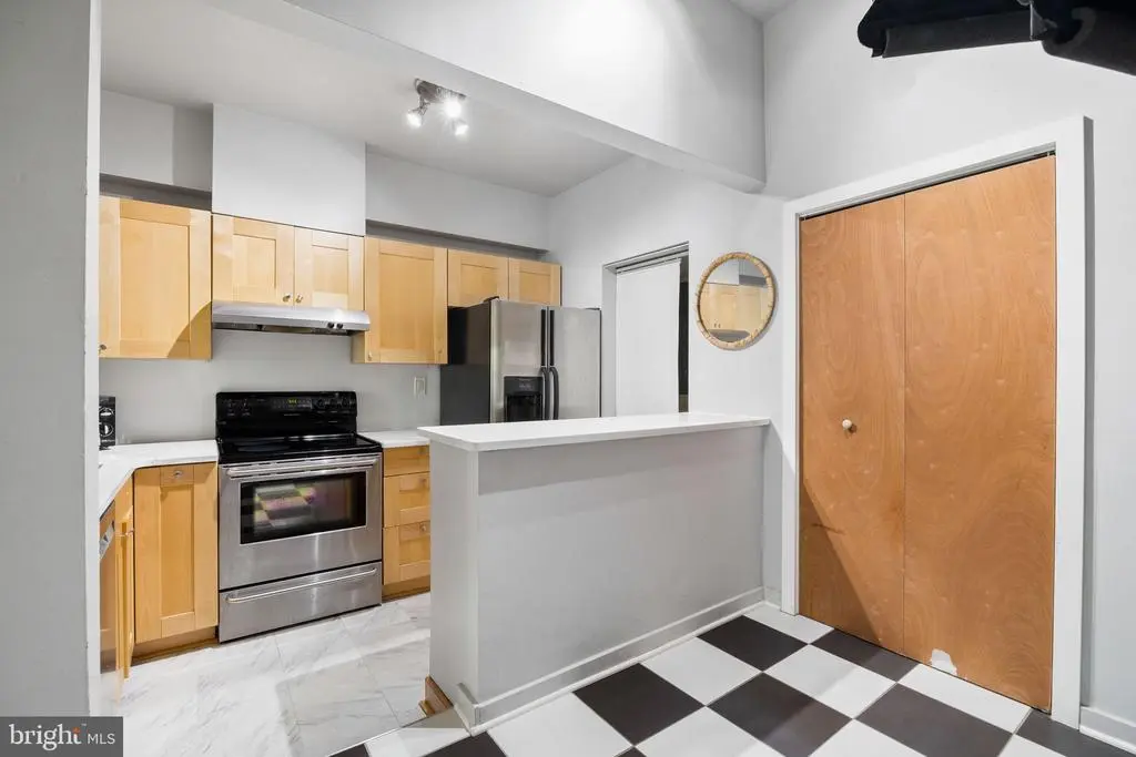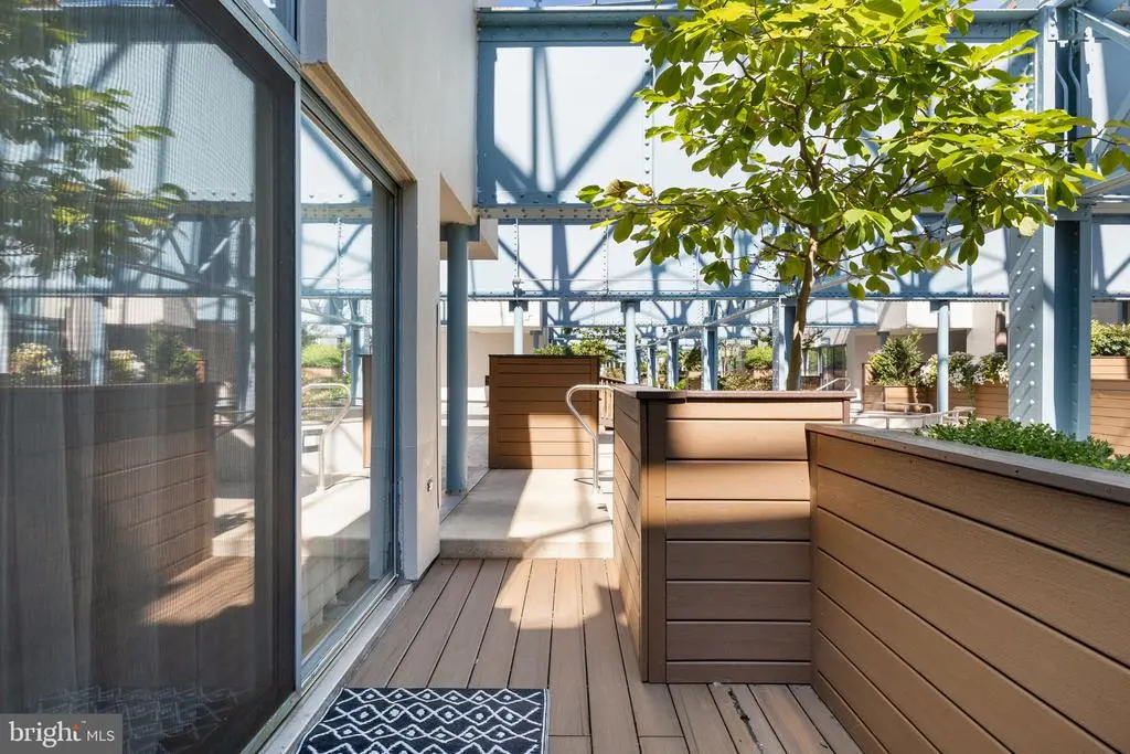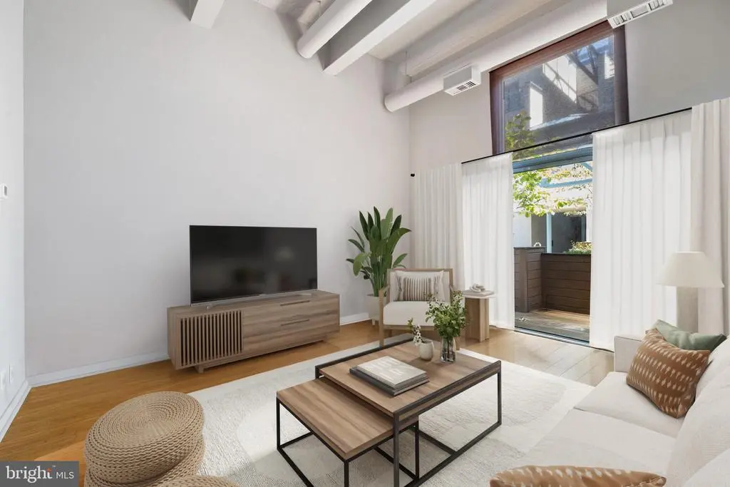 Say hello to Pier 3’s newest offering — Unit PL236! This sun-drenched, bi-level one-bedroom, one-bath residence comes with garage parking and two private outdoor spaces. As you enter, the foyer welcomes you in with stylish black-and-white tile flooring, a convenient coat closet, an in-unit washer/dryer, and a modern kitchen featuring updated appliances, ample cabinetry, and a serving bar. The open-concept living area boasts soaring 12+ ft ceilings, updated bamboo floors, and an expansive wall of windows with sliding glass doors that lead to the first of two private terraces overlooking the building’s verdant interior atrium, capped by its signature open-air steel beam structure. Upstairs, you’ll find the spacious bedroom with a generous closet, the second private outdoor terrace, a hall linen closet, and a full bath with an updated shower stall. Pier 3 amenities include an indoor heated pool, a fitness center, secure covered garage parking, a common outdoor water-facing deck, a central landscaped atrium, a full-service 24-hour concierge, and professional on-site management. It’s time to enjoy waterfront life and take advantage of the newly finished Delaware River Trail's public amenities, including running, walking, and biking lanes, lush landscape beds, and remember, be on the lookout for your future neighbor, the much-anticipated Park at Penn’s Landing! *Some photos are virtually staged.*