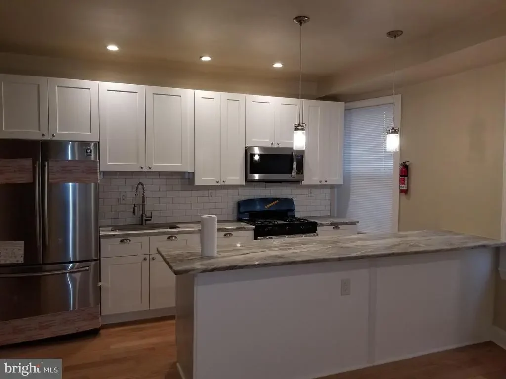 Fully renovated and ideally located in the Angora section of West Philadelphia, this spacious duplex offers a total of 10 bedrooms and 5 bathrooms, presenting an exceptional opportunity for owner-occupants or investors. The lower unit features 6 bedrooms and 3 bathrooms across two levels, with 3 bedrooms and 2 baths on the main floor and 3 bedrooms with an additional bath in the finished basement. The upper unit includes 4 bedrooms and 2 bathrooms, highlighted by a primary suite with a double-sink vanity. Each unit boasts modern kitchens equipped with stainless steel appliances, French door refrigerators, subway tile backsplashes, granite countertops, and center islands. Additional features include hardwood flooring throughout, ceiling fans in every bedroom, spacious living rooms, encaustic tile bathroom floors, stacked in-unit washer and dryer sets, and central air conditioning. Conveniently situated near public transportation, shopping, and markets. This move-in-ready property offers the flexibility to live in one unit while renting out the other or to capitalize on a strong investment opportunity.