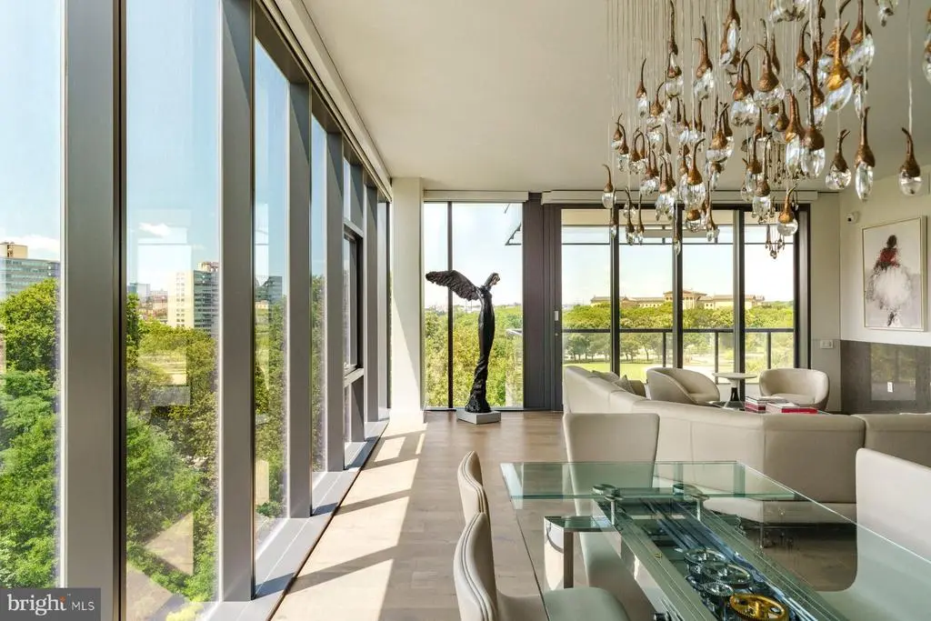 Welcome to Unit 6A at 2100 Hamilton, a residence that defines luxury living in the heart of Philadelphia’s Art Museum District. Spanning 2,163 square feet, this 3-bedroom, 3.5-bath home has been extensively upgraded with over $425,000 in high-end customizations and furnishings, offering an unparalleled turnkey lifestyle. Every room enjoys panoramic views of the Philadelphia skyline and the iconic Philadelphia Museum of Art through floor-to-ceiling windows outfitted with custom window treatments and designer finishes. A fully integrated Crestron and Lutron system—installed and supported by Creative Systems—controls lighting, shades, audio, security cameras, video gaming, Apple TV, and cable, creating seamless control and ambiance throughout the home. The main living space is thoughtfully designed for both comfort and entertaining, anchored by a gas fireplace and flanked by an elegant dining area and automated sliding doors that open to a private, heated terrace with full WiFi connectivity. The Joanne Hudson-designed kitchen is a showpiece of style and function, with upgraded stone finishes, sleek two-tone cabinetry, a Wolf induction cooktop, and a complete Wolf/Cove appliance suite. Just off the kitchen, a separate entertaining area adds flexibility and convenience. The serene primary suite offers a peaceful retreat with a gas fireplace, ceiling fan, dual custom-designed walk-in closets, and a spa-like bathroom featuring radiant heated floors, dual vanities with ample storage, and a spacious walk-in shower. Two additional en-suite bedrooms provide versatility, with one currently configured as a designer guest room—complete with a tub/shower combination—and the other as a sophisticated home office. Each space is appointed with curated furnishings and bespoke artwork that elevate the home’s overall aesthetic. Additional upgrades include extensive builder-level electrical enhancements, custom painting and wallpaper, and fully customized closets throughout. The home also includes two dedicated parking spaces and benefits from a remaining seven years on the Philadelphia tax abatement. 2100 Hamilton delivers an unmatched amenity package, including a private residential garden and event plaza designed by landscape architects Sikora Wells Appel, a heated indoor infinity pool, state-of-the-art fitness center, boardroom, guest suite, catering kitchen, amenity lounge, and 24-hour concierge service. A private town car with driver is available to residents, and a facial recognition elevator offers secure, direct access from the valet garage to your front door. A valet fee of $350/mo. Every detail of Unit 6A has been meticulously considered and beautifully executed, creating a residence that is as functional as it is visually stunning. Don’t miss this opportunity to own a move-in-ready, best-in-class home in one of Philadelphia’s most exclusive addresses.