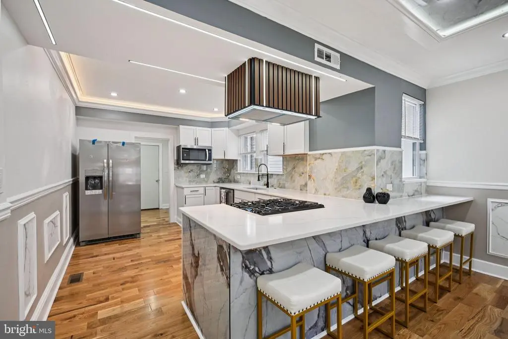 Welcome to 5914 Springfield Avenue — where timeless charm meets modern living! This beautiful home welcomes you with a stylish bar area at the entrance right next to the electric fireplace — perfect for entertaining guests or enjoying a quiet evening. The main level features new kitchen appliances, a washer and dryer, a convenient half bath, and luxurious finishes that elevate both comfort and design. A finished basement offers extra flexibility — ideal for a home gym, studio, media room, or guest space — along with a full bathroom and a nice electric fireplace. Upstairs, you’ll find three spacious bedrooms and another full bathroom, while a private rear room also includes its own en-suite full bath complete with a luxurious jacuzzi tub! Step outside and enjoy the thoughtfully designed outdoor spaces. In the back, a deck provides the perfect setting for morning coffee, evening dinners, or weekend gatherings. In the front, you'll find a charming garden and a mini pool — creating a welcoming and tranquil atmosphere from the moment you arrive. Located just minutes from local parks, shops, and restaurants, this home offers the perfect blend of comfort, style, and convenience in Philadelphia. Don’t miss the chance to make this exceptional property yours — schedule your private tour today!