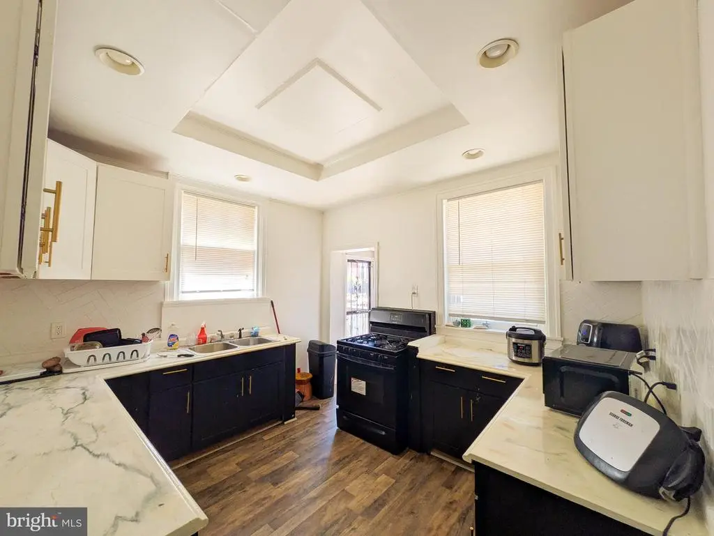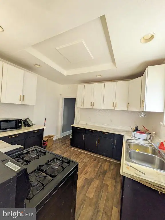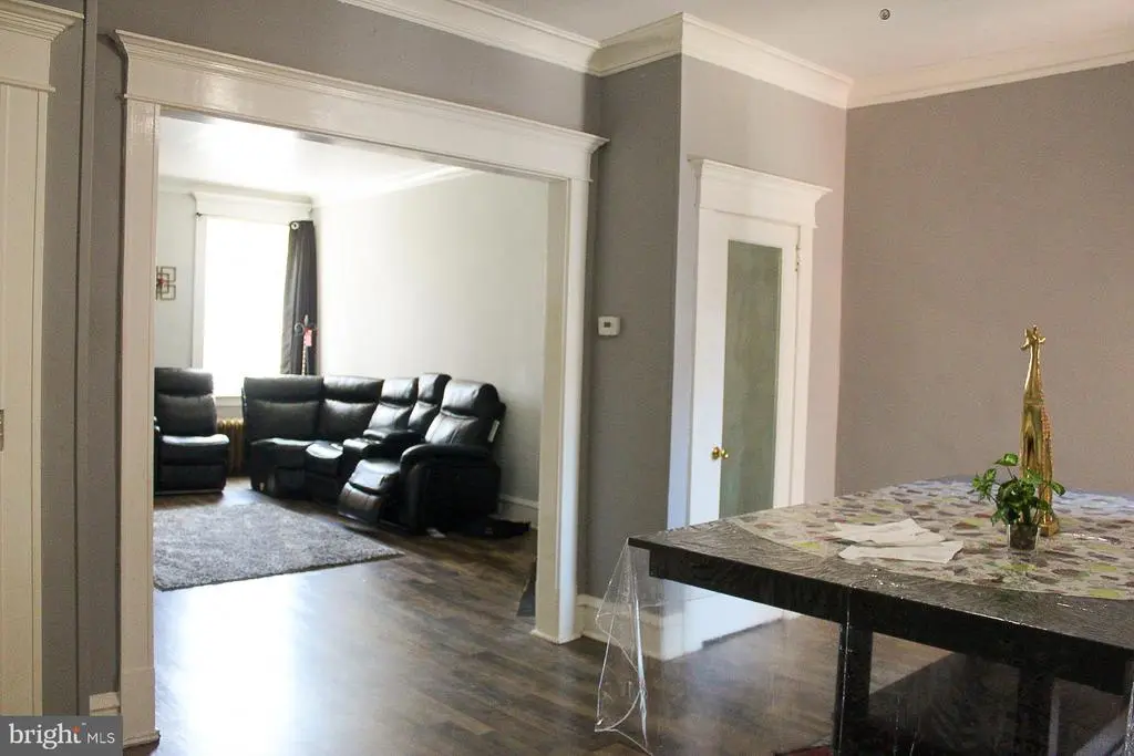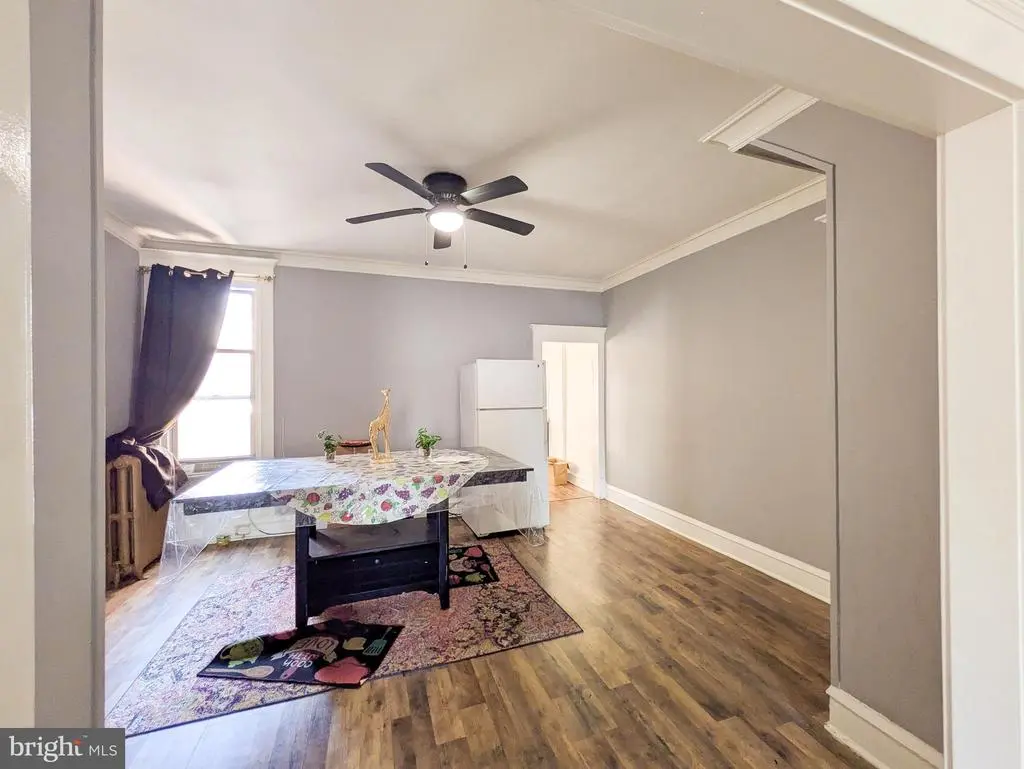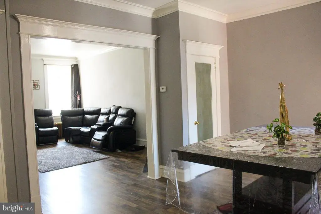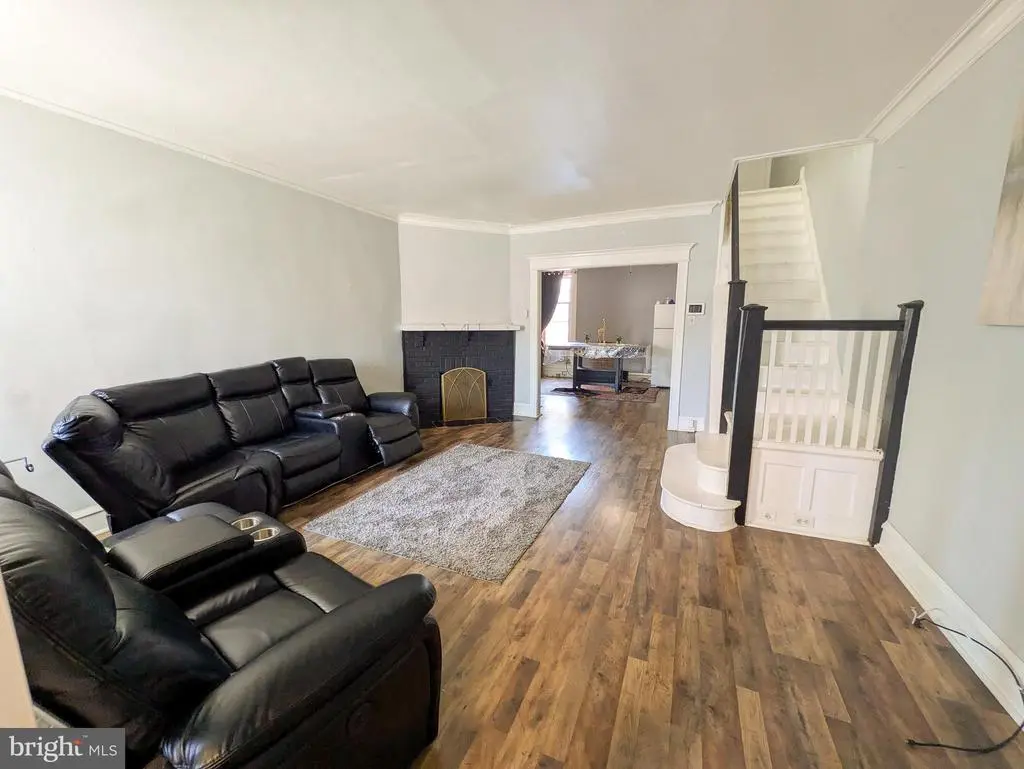 This elevated row home features a front patio accessible by steps. The entryway leads to a living room with a gas-line fireplace (unused by the current owner), a formal dining room, and a renovated kitchen that opens to a small connecting patio. The second floor contains three sizable bedrooms and a tastefully updated bathroom. The basement is finished, includes a full modern bath and laundry (washer & dryer), and the garage has been converted for extra storage with rear parking. All appliances are included except for the white refrigerator.