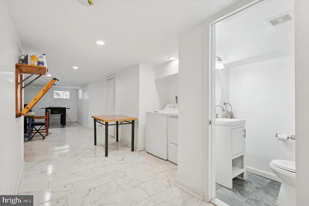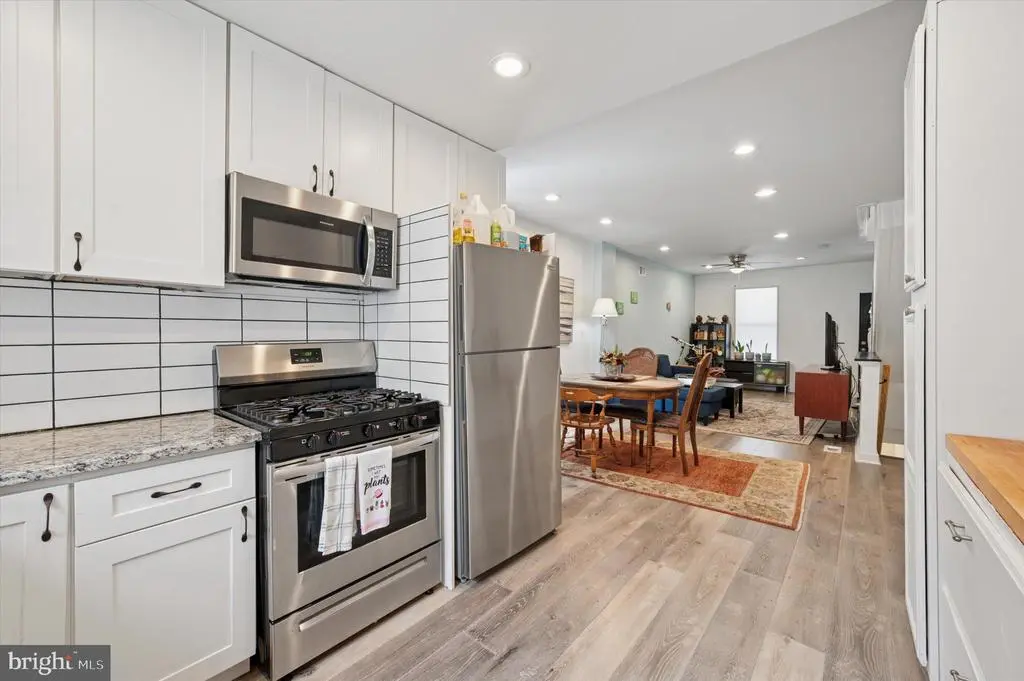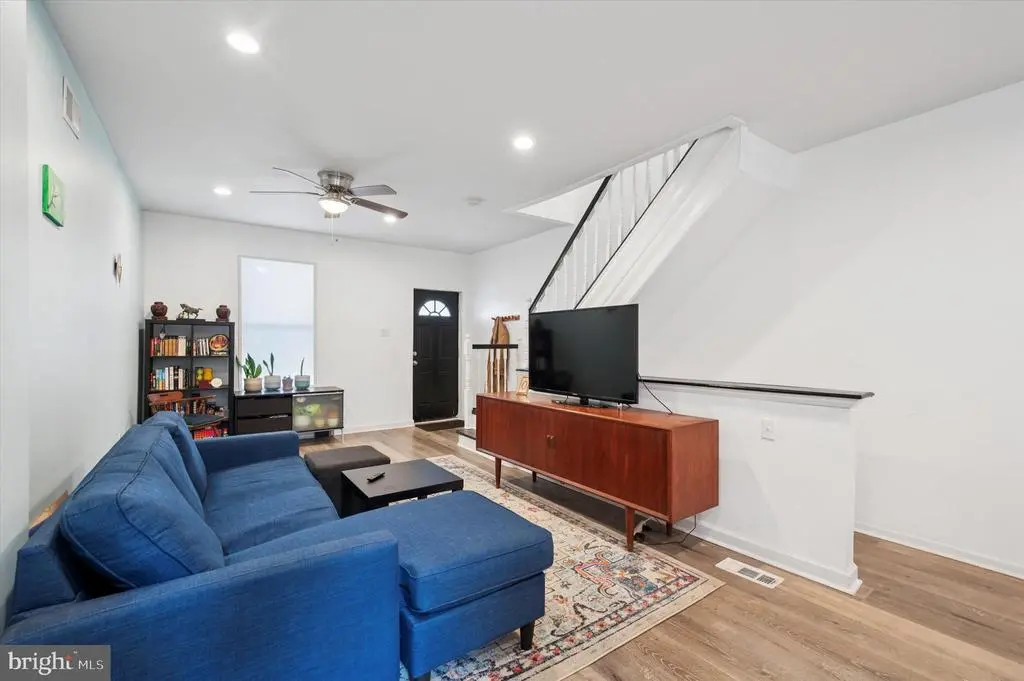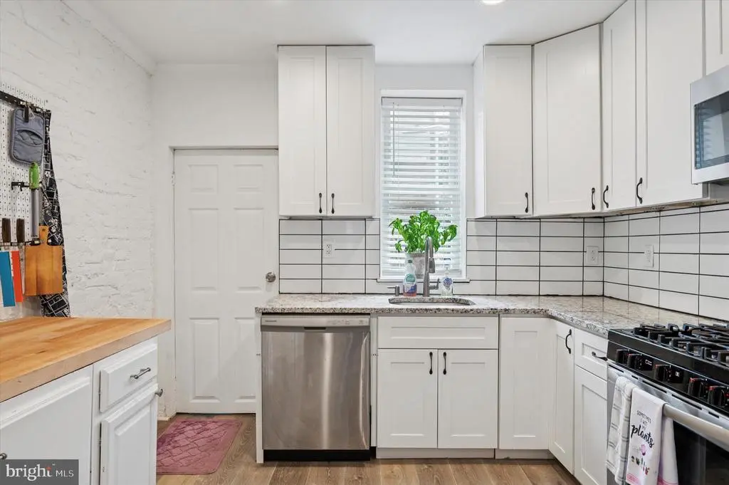 Step onto the inviting stone-tiled front porch and discover a fully renovated 3-bedroom, 1.5-bath home, beautifully updated with attention to every detail. Inside, the main level boasts an open concept, featuring painted wood flooring, exposed brick accents, and abundant natural light streaming through twelve brand-new windows. The kitchen is a blend of functionality and style, equipped with white cabinetry, granite countertops, and stainless steel appliances. Just beyond the kitchen, a tiled mudroom leads to a private backyard with new fencing and plenty of space for a grill, patio furniture, and planters. Upstairs, all three bedrooms are generously sized. The full bath features a tiled shower and tub combo, a modern vanity, and new fixtures throughout. Ceiling fans are installed in each bedroom for added comfort. The finished basement gives you flexible space for a home office, gym, or playroom. It also includes a new powder room and a dedicated laundry area. Major systems have all been replaced including plumbing, electrical, HVAC, windows, water heater, and utility meters. Situated near University City with quick access to Center City, I-76, and public transit, this home is a golden opportunity with style, space, and convenience.