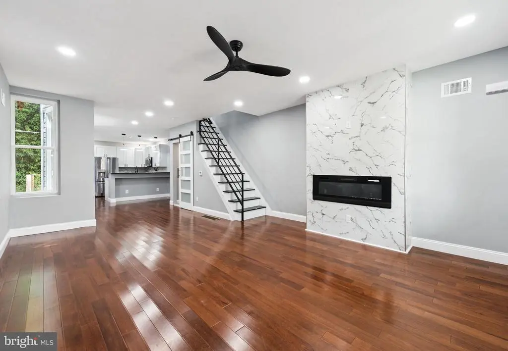 Welcome to 320 E. Tulpehocken Street in Germantown! This lovely 4-bed/2.5-bath row home is looking for its next owner. A covered porch greets you as you approach the house, perfect for your morning coffee or a good book. Inside, the open plan layout lets you design the living and dining rooms as you wish. A large kitchen awaits with stainless steel appliances, quartz countertops, white Shaker cabinets, and a breakfast bar. Pendant lighting, gleaming hardwood floors, and a conveniently located powder room add to this level. A laundry/mudroom completes the floor, leading out to an expansive wood deck and a long fenced-in backyard. Head upstairs to the 2nd floor, where you'll find 4 bedrooms and a full hall bath. And don't forget the fully finished basement -- a great flex space for either a home office, den, personal gym, or for all of your extra storage needs. Updated amenities, such as central A/C and heat, will keep you comfortable throughout the year, as well as an electric fireplace for those chilly winter nights. Come visit this great home today before it flies off the market!