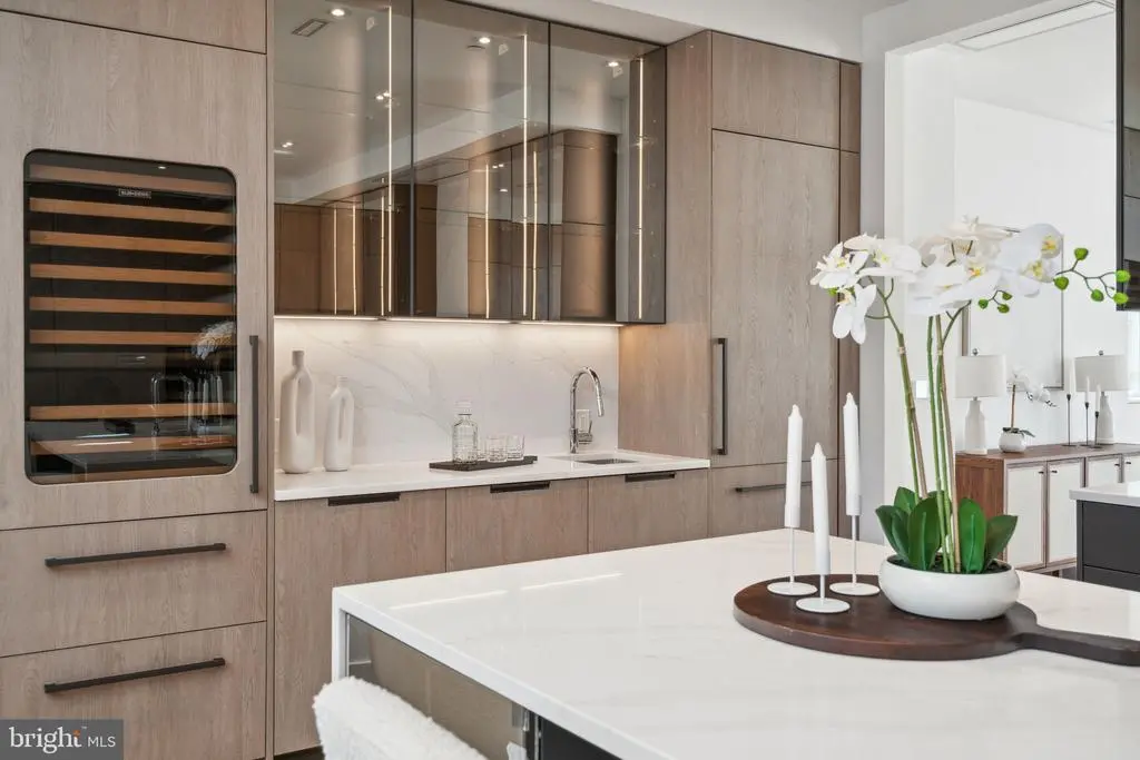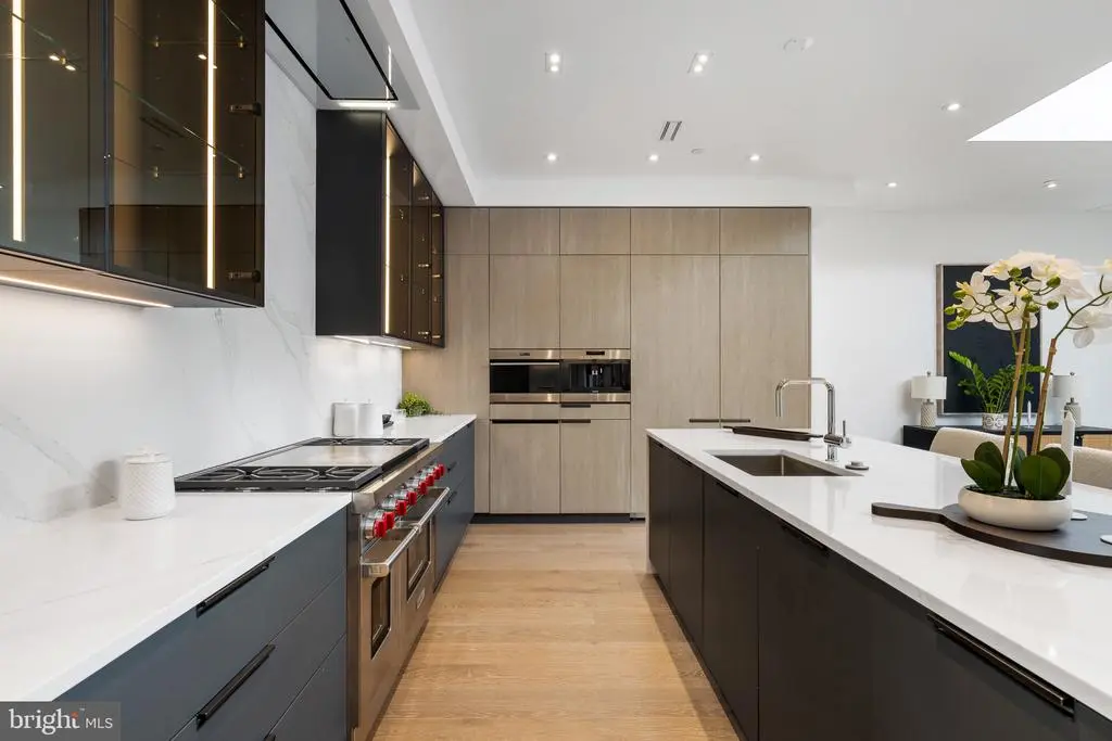 A rare opportunity to own one of Old City’s most coveted residences, this bi-level penthouse spans the entire fifth and sixth floors of an exclusive four-unit building. Set high above the cobblestone streets and historic charm of the neighborhood, this bespoke home is developed by Astoban Investments, renowned for their innovative design and exceptional craftsmanship. Combining architectural distinction, scale, and complete privacy, this penthouse represents an exceptional offering rarely available in Philadelphia’s elite market. Spanning 4,786 square feet across two floors accessible by private elevator, the penthouse is designed for entertaining and practical living. The lower level is thoughtfully arranged with four generously proportioned bedroom suites, each featuring its own ensuite bath and custom walk-in closet. A central lounge with built-in kitchenette creates an ideal space for guests or extended living. The primary suite is a sanctuary unto itself, featuring radiant heated floors, a custom steam shower, Scavolini vanities, and elegant fixtures by Fantini, Dornbracht, and Grohe. The walk-in closet is outfitted with floor-to-ceiling exposed built-ins and extensive hanging space, delivering exceptional functionality. Ascend to the upper level and discover a seamless blend of indoor-outdoor living. The chef’s kitchen, crafted in Italy by Scavolini, anchors the space with a striking 48” Wolf gas range, built-in coffee system, 30” Sub-Zero wine fridge, and bookmatched Calacatta stone countertops. A dramatic dining area with 15-foot ceilings opens onto an interior atrium, offering a tranquil open-air escape at the center of the home. Beyond, a nearly 700-square-foot private terrace provides the perfect backdrop for al fresco dining and cityscape views. At the opposite end, a glass-enclosed great room, also with soaring 15+ foot ceilings, offers a versatile retreat for a media lounge, library, or executive office, all bathed in natural light. Throughout the home, high-caliber finishes define every surface: wide-plank Austrian oak flooring, two-zone Daikin HVAC, Porcelanosa tilework, frameless glass showers, custom cabinetry, and integrated smart home systems including Nest keyless entry and ButterflyMX video intercom. One garage parking space is included with the option to purchase a second, and a full 10-year tax abatement adds long-term value. The original 1920s façade complements the character of the neighborhood, while the interior is newly built - a seamless fusion of historic charm and contemporary design. Ideally situated just five minutes from I-95, with New York City under 90 minutes away. The highly anticipated transformative I-95 capping project, currently underway, will soon deliver landscaped parks, expanded green space, and a vibrant riverfront promenade that redefines Old City’s connection to the waterfront. For the discerning buyer seeking exclusivity, scale, and sophisticated design, this is a rare opportunity to own a private custom-designed penthouse in one of Philadelphia’s most historically rich and dynamically evolving neighborhoods.