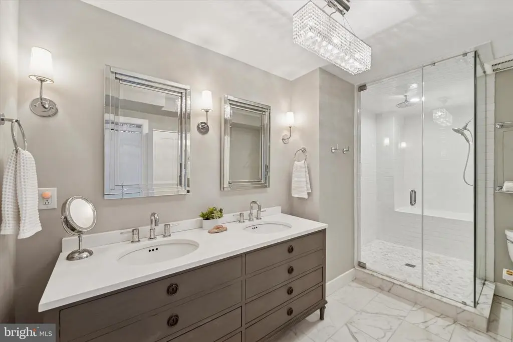 Perched high above Rittenhouse Square, Residence 14F at The Rittenhouse Plaza blends classic pre-war charm with modern refinement. This corner one-bedroom retreat offers rare architectural definition—a welcoming foyer, separate chef’s kitchen, and generous living and dining space ideal for entertaining or relaxing above the Square. Oak floors with walnut inlay, coffered ceilings, and plantation shutters add timeless warmth, while the Calacatta marble kitchen features Bosch appliances, brass accents, and a Marvel wine cooler. The spa-like marble bath includes a double vanity and aromatherapy steam shower. Enjoy 24-hour concierge and doorman service, access to The Laurel’s gym and pool, and monthly fees that include property taxes. A turnkey Rittenhouse retreat—where elegance meets ease and every detail feels intentional. Think Central Park vibrancy with Park Avenue grace, reimagined in Philadelphia.