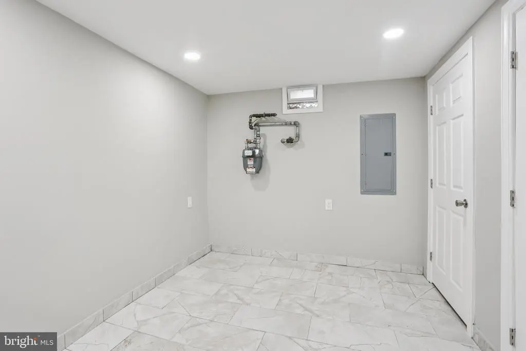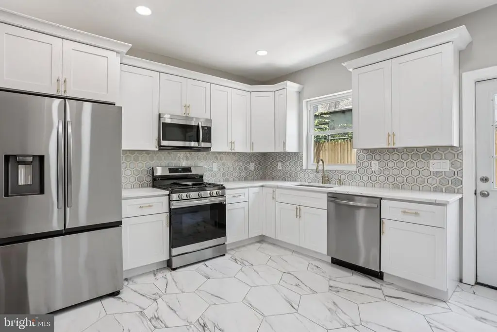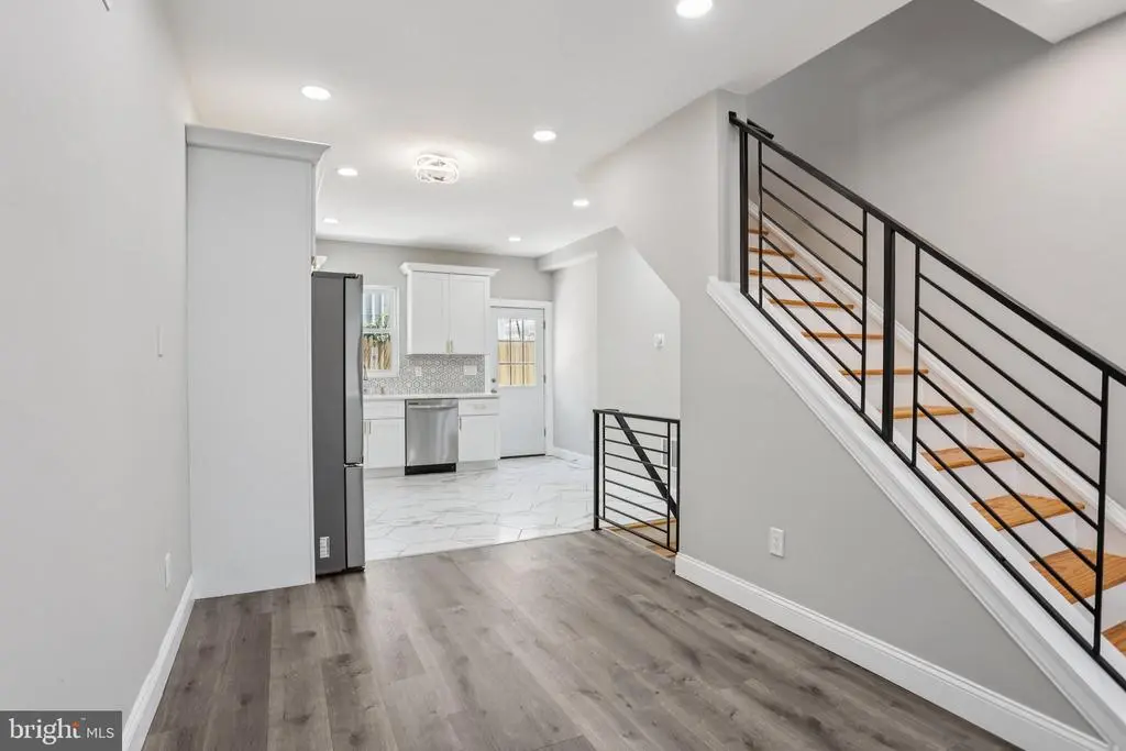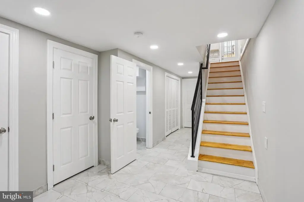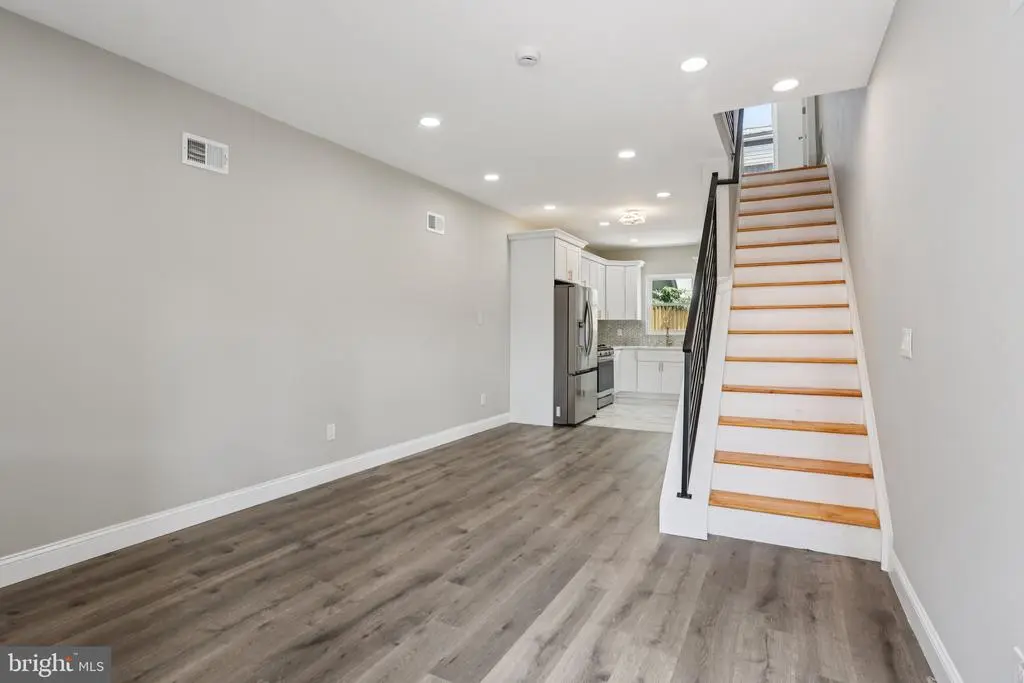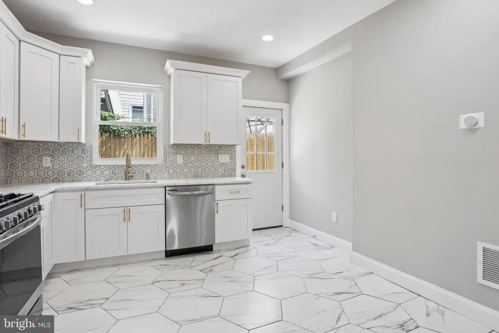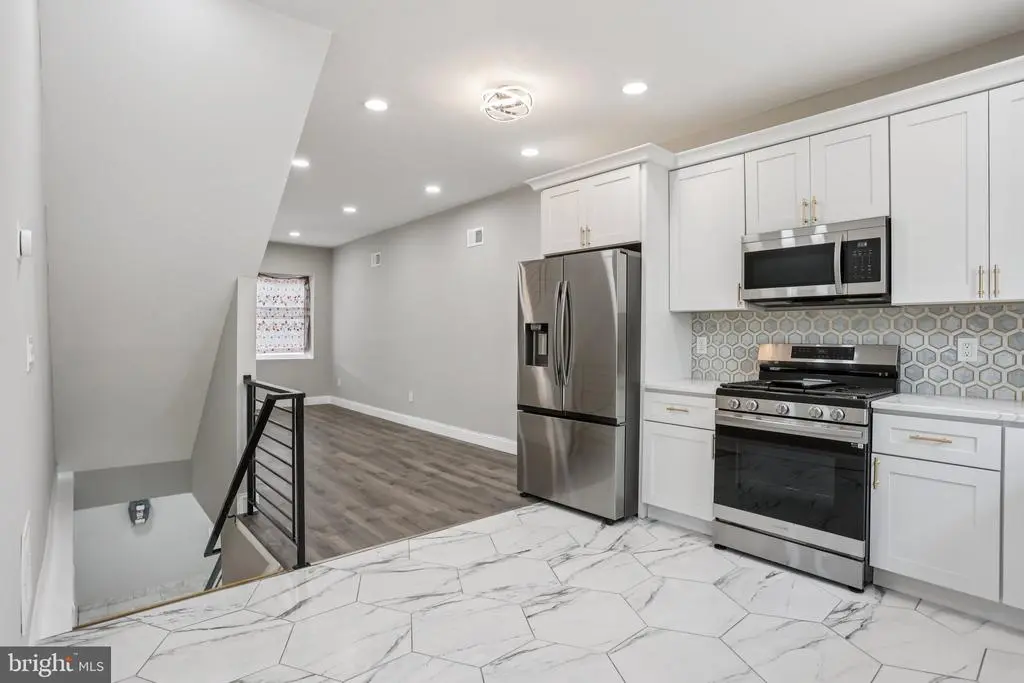 This beautifully renovated, FULLY updated 3-story townhome sits on a double lot in the vibrant Norris Square neighborhood. The added attached LOT offers a concrete driveway that can accommodate 6 cars, providing rare off-street parking in the city, along with the added benefit of a completely fenced-in property for your privacy and convenience. Inside, you'll find a brand-new, modernized interior, with recessed lighting and wood flooring throughout, creating an inviting, contemporary feel in every room. The open concept main level includes a spacious living room, dining room, and an impressive kitchen that is sure to impress. The kitchen features Quartz countertops, sleek white cabinetry, a stunning white and gold accent backsplash, and brand new stainless steel appliances, perfect for the home chef and designed with ample storage space. The second floor offers two spacious bedrooms, each with plenty of natural light, and a modern full bathroom. The bath includes a large glass shower with beautiful porcelain tiles, a rain shower head, and a stylish white double vanity with ample storage underneath, accented by chic black fixtures. On the third level, you’ll find the primary suite, a true retreat with double closets and a private bathroom featuring a sleek black porcelain-tiled shower. A modern black vanity and cabinetry provide both style and functionality. From here, access the roof deck, where you can enjoy stunning views and outdoor relaxation. The finished basement offers additional living space, including a convenient half bath and storage closet, making it ideal for an office, home gym, or entertainment room. Outside, the home features a private fenced-in backyard with a patio, perfect for outdoor dining, grilling, or just relaxing. The entire property is fully enclosed, ensuring complete privacy. With new appliances, a new HVAC system, and a beautifully remodeled interior, this home is ready for you to move right in. It’s a fantastic opportunity to own a turn-key property in one of Philadelphia’s most desirable neighborhoods.