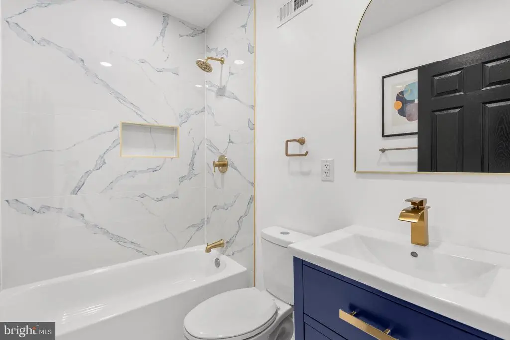Welcome to 1837 N 28th Street, a beautifully renovated 3-bedroom, 2.5-bathroom townhome nestled in the heart of Brewerytown. This stylish residence offers almost 1500 square feet of thoughtfully designed living space, blending contemporary finishes with timeless charm. Step inside to find an open-concept main level with gleaming new floors, recessed lighting, and a crisp white kitchen that boasts quartz countertops, brass hardware, designer tile backsplash, stainless steel Frigidaire appliances, and a striking gold-tone faucet. A main floor laundry area adds everyday convenience, while the finished basement provides valuable flexible living space—perfect for a media room, office, or guest area—along with a convenient half bath. Upstairs, three bedrooms are complemented by two fully updated bathrooms featuring elegant tile work, brushed gold fixtures, and a modern aesthetic. Two stylish full bathrooms include elevated finishes such as sleek navy vanities with gold hardware and chic arched mirrors. One features a spa-like walk-in shower with marble-look porcelain tile, while the other offers a versatile tub/shower combo ideal for both quick rinses and relaxing soaks. This home has been fully gut renovated with brand-new plumbing and electrical systems, ensuring peace of mind for years to come. Additional upgrades include brand-new central HVAC, a new water heater, and new energy-efficient windows throughout, providing comfort, efficiency, and a fresh start. This home is move-in ready and ideal for those seeking sophisticated city living with easy access to Center City, Fairmount Park, and all of Brewerytown’s vibrant cafes, breweries, and green spaces. Don’t miss your chance to own this exceptional property in one of Philadelphia’s fastest-growing neighborhoods!