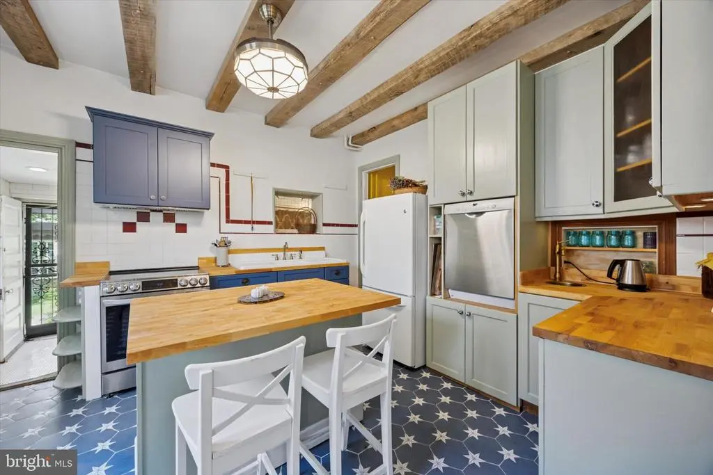 Step into timeless charm with this beautifully preserved and thoughtfully updated Victorian twin nestled in Historic Germantown, Philadelphia. Boasting 6 spacious bedrooms, 2 full bathrooms, and a generous mix of original character and modern upgrades, this home offers a unique blend of charm, comfort, and versatility. As you approach, park in your multi-vehicle driveway and you're welcomed by a grand wraparound porch—perfect for morning coffee, evening gatherings, or the perfect dinner ambiance. Inside, the home features wood floors, high ceilings, and abundant natural light throughout. Enter through the front door into the foyer. Go right, into the living room, with a wood-burning stove adding warmth and coziness to the living space, ideal for Philly winters and intimate nights in. Open the French doors to go onto the porch for a summer sit. Head to the renovated kitchen, which is a chef's dream, complete with updated appliances, induction cooktop, cabinetry, and plenty of counter space for creating and entertaining. Continue back to the back mudroom and newly renovated full bathroom. Go down to the basement to find laundry area, plenty of storage space, an extra toilet, Biltco doors that open into the driveway, and an enclosed room that could be your workshop or extra storage. Head upstairs to the 2nd floor to find 3 bedrooms. The front and rear bedrooms are both large and could be considered the primary bedroom - both have a great view as well. The front bedroom looks over the front garden. The rear bedroom looks over the rear garden, yard and cottage. The 2nd floor bathroom has been recently renovated with a great blend of a historic and modern aesthetic. Walk up to the 3rd floor and find another 3 bedrooms. All bedrooms are spacious and there is great storage at 423 E. High St as well. Head to the backyard and find a one of a kind bonus laying beyond the main house—a 650 sq ft insulated cottage sits nestled just right, offering incredible flexibility as a guest suite, artist’s studio, home office, or other creative use. It features a wood burning stove, huge double paned windows and high ceilings, creating a feeling of cozy yet private luxury. The large yard is perfect for gardening, outdoor dining, or just enjoying a quiet evening. Speaking of gardening, the soil has been tested and is extremely nutrient rich, the front garden gets full sun and is perfect for growing vegetables: tomatoes, peppers, squash, beans, herbs, and more, with arched trellis to support. There are perennial herbs and flowers growing along both sides of both yards. Don't forget the fruit trees: peach, Juneberry, fig, elderberry, cherry, and grapes. Your very own Germantown homestead awaits! Additionally, big updates include solar panels (paid off at settlement), newer roof (2019), updated electric, renovated bathrooms and kitchen with radiant floors, new siding, and so much more. With all its amenities and easy access to public transit, shops, parks, and all that Germantown and the NW has to offer, this property is a rare find ready to become home.