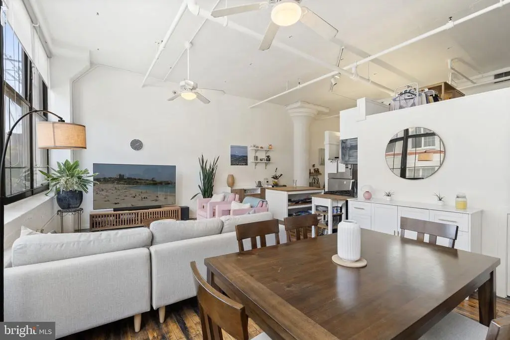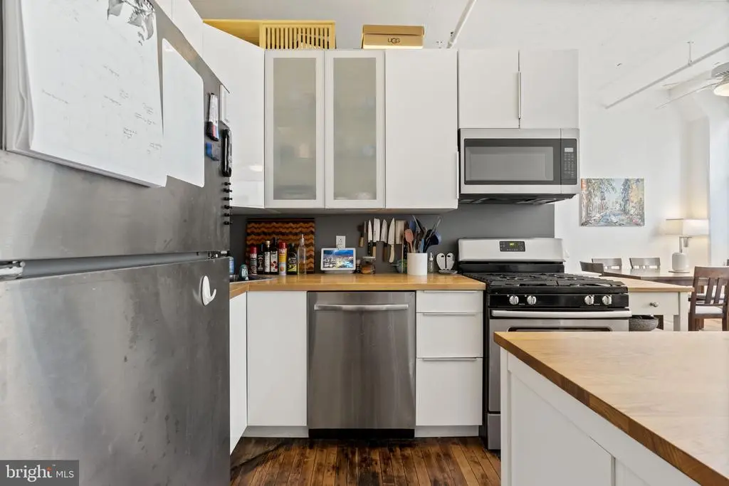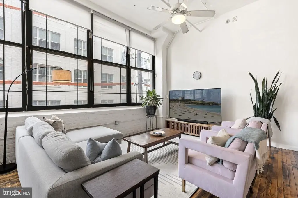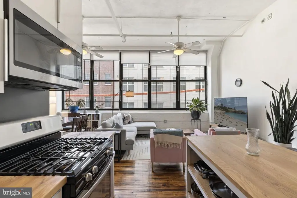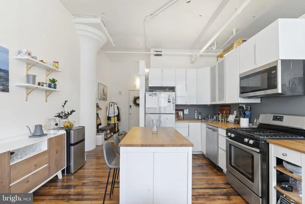 Welcome to 314-22 N 12th St #203 in the coveted Loft District! This beautiful 1-bedroom, 1-bathroom condo offers a wide open living space and 12 foot ceilings, featuring sleek hardwood floors, floor to ceiling windows, and an abundance of natural light. The chef’s kitchen boasts stainless steel appliances and wood countertops, perfect for cooking and entertaining. Down the hall, you'll find a freshly renovated full bathroom. Upstairs, you'll find the bedroom. Nestled on a quiet side street, and just steps from The Rail Park, Elixr Coffee Roasters, Chinatown, Underground Arts, and the Broad Street Line, as well as the neighborhood’s best restaurants, cafes, and shops, this home combines modern style, rare loft spaces, and an unbeatable location — a true must-see! Schedule your showing today!