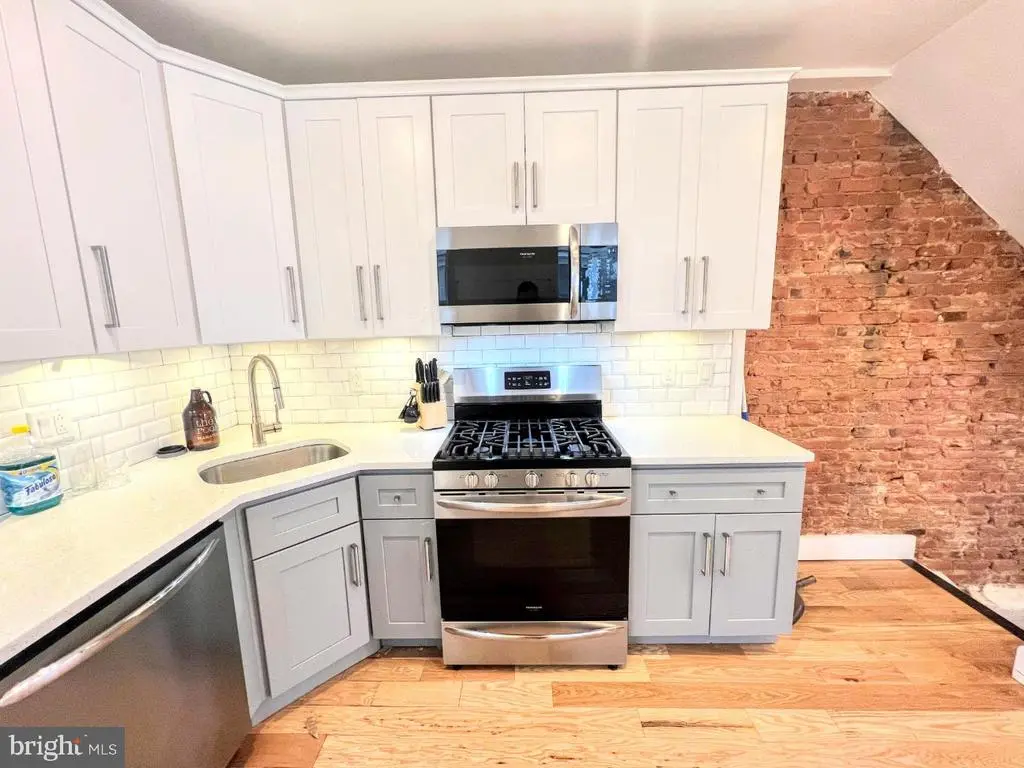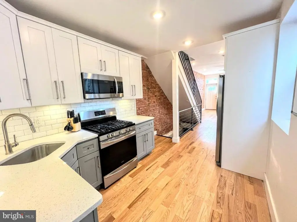 Just reduced! This townhouse features a straight thru layout with exposed brick in the living room; wood flooring; kitchen with stylist two toned cabinets, pristine white quartz countertops and stainless-steel Frigidaire appliances. To add additional convenience, the main floor also has a charming half bathroom. The back door in the kitchen leads into a private quaint back yard with a modern horizontal wood fence. Upstairs features three bedrooms, ceramic tile bathroom and built-in laundry. The finished basement offers additional living space that could be used for entertaining or as a home office! This home is conveniently located to all major highways, public transportation and great restaurants and shopping. The home has been priced to allow for some minor cosmetic work to the new owners liking!