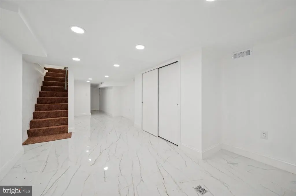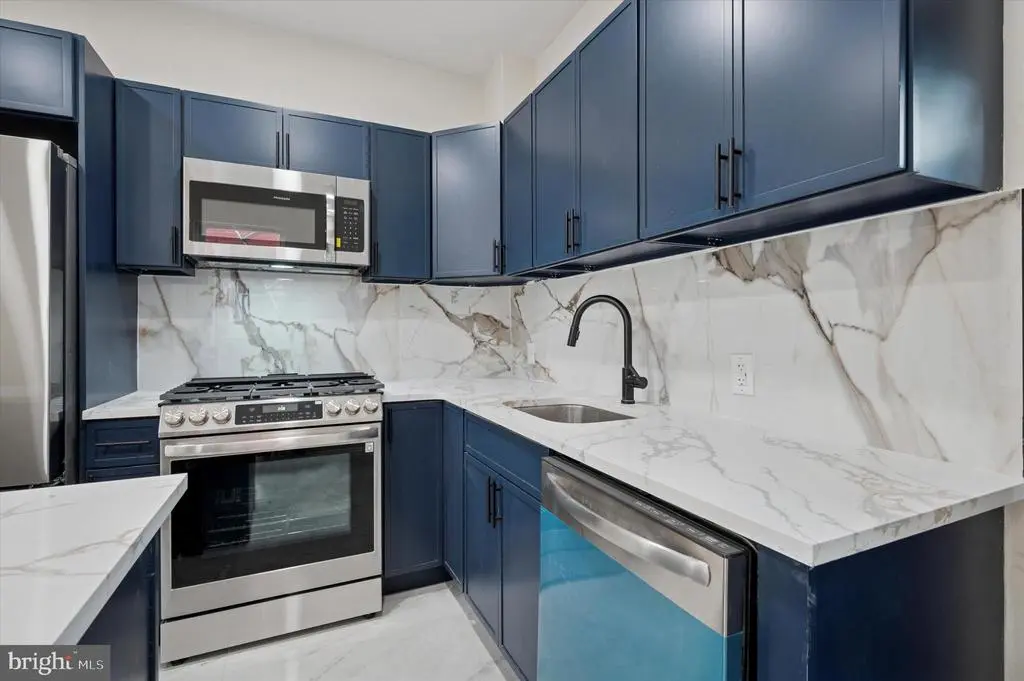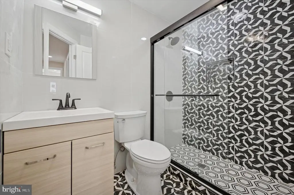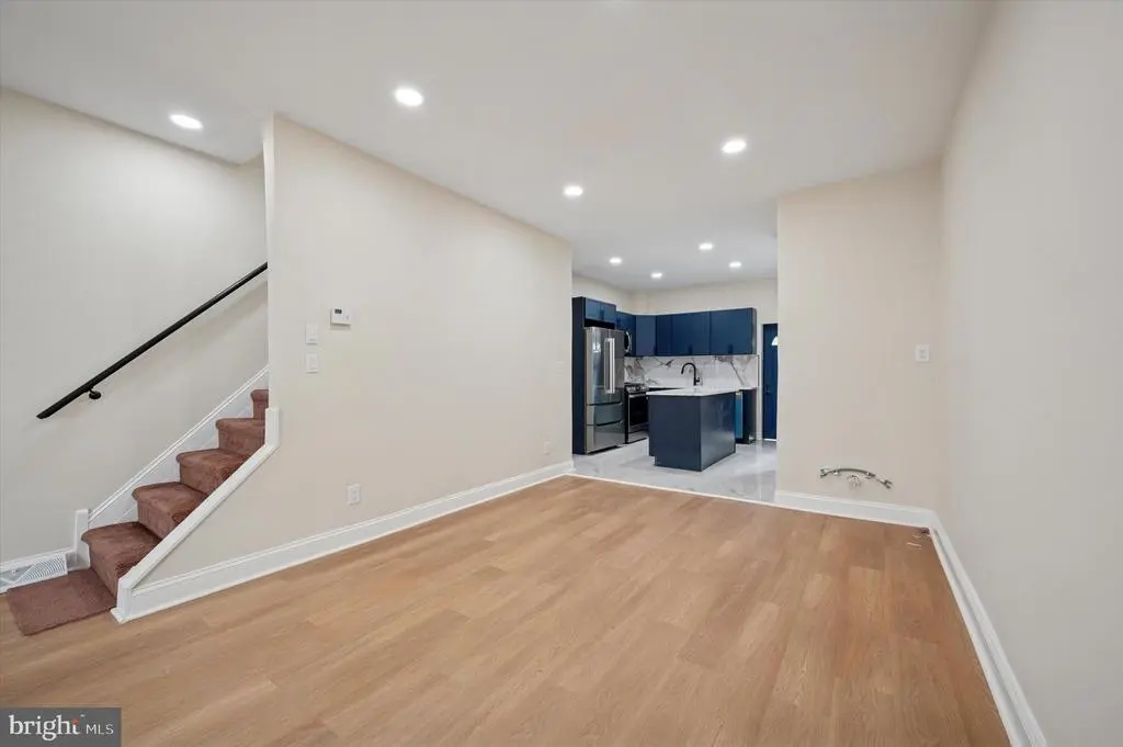 Welcome home to this newly renovated Philadelphia townhome. Walk up to the charming, covered porch and into the main living level to find a straight-through layout featuring luxury vinyl plank flooring. Natural sunlight floods this space. The kitchen pops with navy blue cabinetry and marble-like flooring. A large island is perfect for entertaining friends and family, or just having a casual bite to eat. Through the back door, discover a fenced courtyard—perfect for gatherings and outdoor hobbies. Back inside, a fully finished basement adds even more living space plus a full bathroom with a walk-in shower. On the second level, all three bedrooms have closets that are perfect for the coveted fashionista. There is recessed lighting throughout. The primary bedroom includes a generous amount of space with a bay window that overlooks the front of the home. A second full bath is also on this floor, featuring black and white tile, a walk-in shower, and wood accents. Located in the Cobbs Creek neighborhood, homeowners have access to plenty of restaurants and parks. It is also in close proximity to the Hospital of the University of Pennsylvania. Book your showing today!