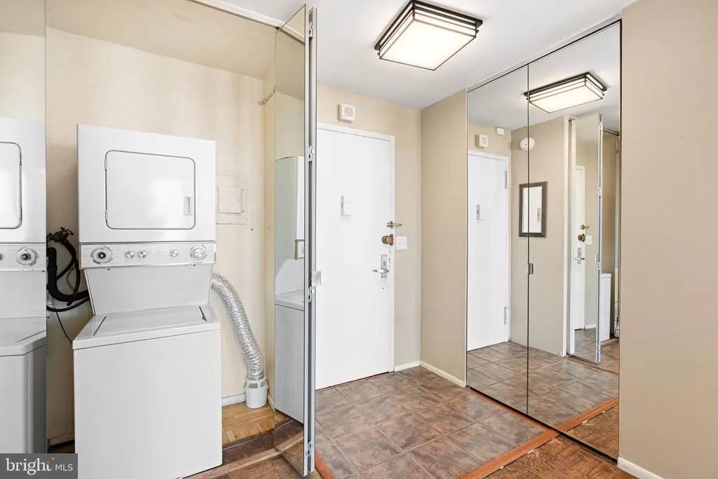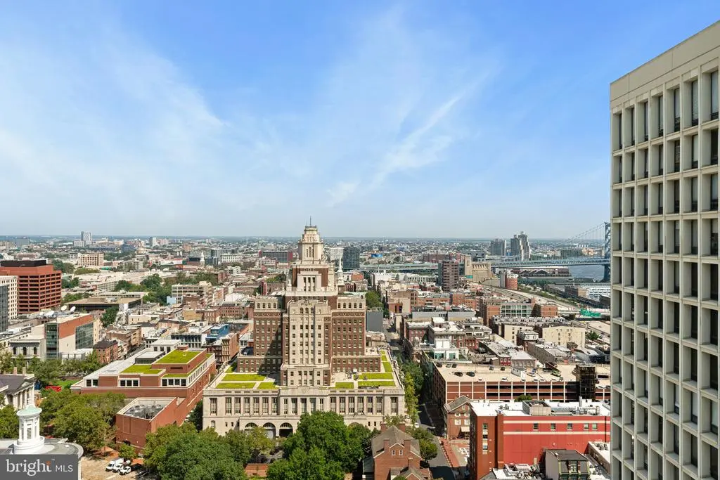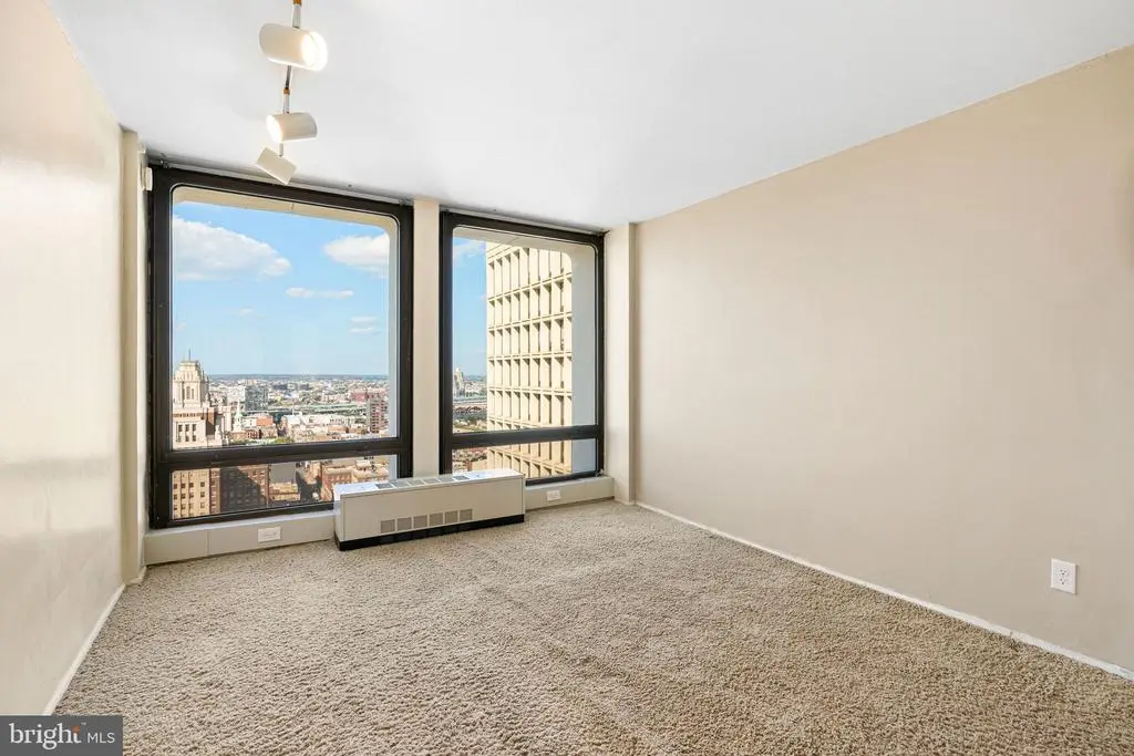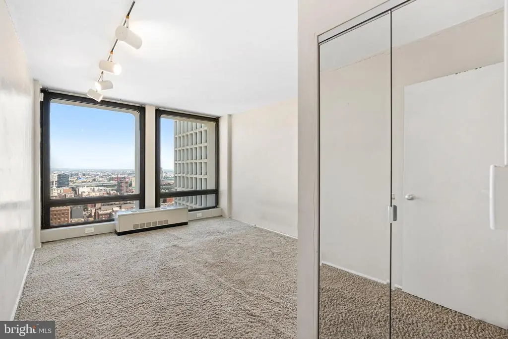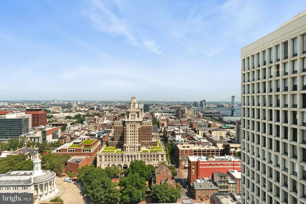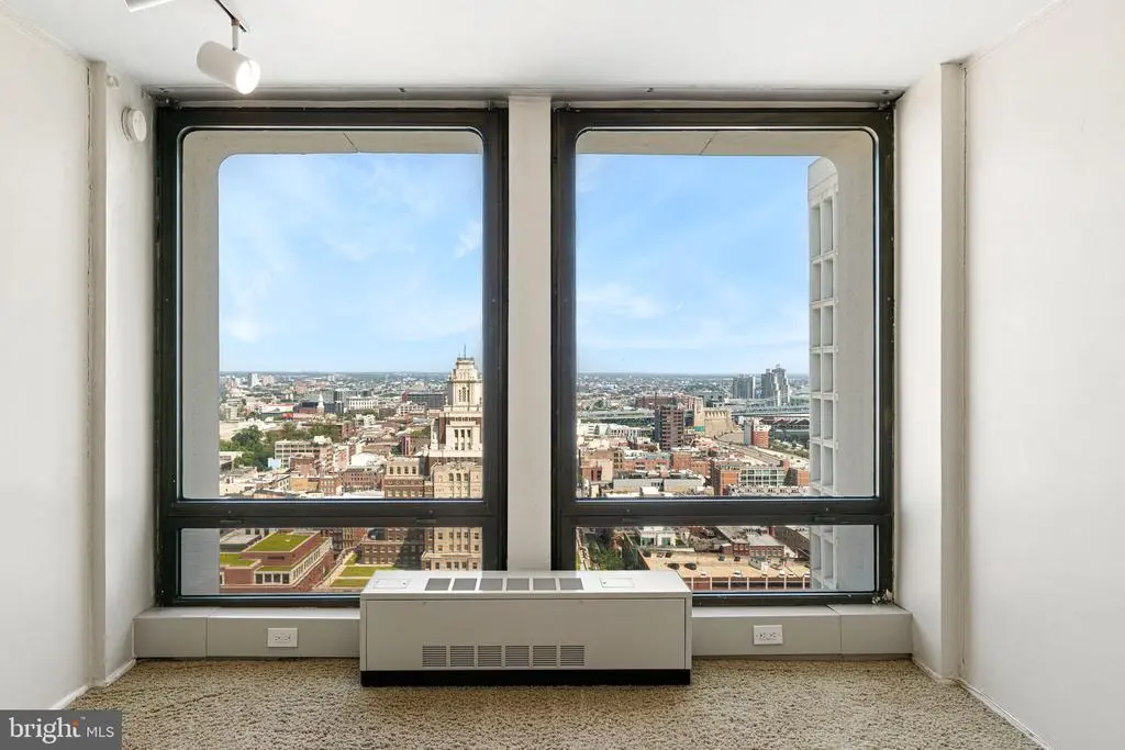 29th Floor one bedroom condo at Society Hill Towers with stunning Views North From 5 Big FLOOR TO CEILING WINDOWS as far as one can see! Enjoy gorgeous views of the Ben Franklin Bridge, partial Delaware River, sunrise and Independence Park views, the U.S. Custom House, Society Hill, Olde City and far beyond. The windows have screened openings at the bottom enabling fresh air. There is an IN-UNIT WASHER AND DRYER in a hallway closet! The following are great New Electrical Upgrades: fixtures in the entry hallway, kitchen and bathroom; LED light bulbs in those fixtures and in the ceiling track lighting; outlets. Further, some walls have been repainted. The living room features 3 windows, hardwood floor and track lighting. The kitchen is partially open to the living room, has those amazing views again, and a dishwasher. The bedroom features 2 windows, beautiful views, track lighting and a large Walk-In Closet with built-in shelving. The bathroom was previously upgraded. There are three closets in the hallway that connect the rooms, one which has built-in shelving. There is newer air conditioning, heating, related pipes and ventilation in all Towers condos and in the three Towers buildings. The CONDO FEE INCLUDES ALL UTILITIES, 24/7 Front Desk Concierge and a 24/7 Security Guard. Society Hill Towers is one of the most desirable, best managed condominiums in the City, uniquely located on 5 Acres of serene grounds and designed by the world renowned architect I.M. Pei. It is close to the Delaware River, parks, and restaurants and shops of Society Hill, Olde City, Washington Square, Center City, Rittenhouse, University City, Northern Liberties, Fishtown and Queen Village. The Towers has a Shopping Plaza featuring Zahav Restaurant (previously named The Best in the U.S.), Sue's Produce Food Market and Deli (which also has a Rittenhouse location) and a Cleaners (which delivers to the concierge). There is an UNDERGROUND GARAGE with Spaces for monthly Rent ($257 or $269 depending on the space). The Garage is accessible by the elevators, and features locked bicycle storage rooms. Enjoy the seasonal large, secluded outdoor in-ground newer Salt Water SWIMMING POOL, lounge chairs, grounds, cooking grills and locker rooms, open Mid May through late September ($290 per adult or other season membership options). The Towers has an upgraded FITNESS CENTER ($330 per calendar year), a sizable lobby, hospitality suites for guests, a community room, and storage lockers pending availability. The aforementioned amenities are available for reasonable additional fees. There is a large, convenient laundry room with newer machines in the finished basement accessible by the three elevators. Nearby are major highways, public transit, street parking and car sharing. Welcome home!