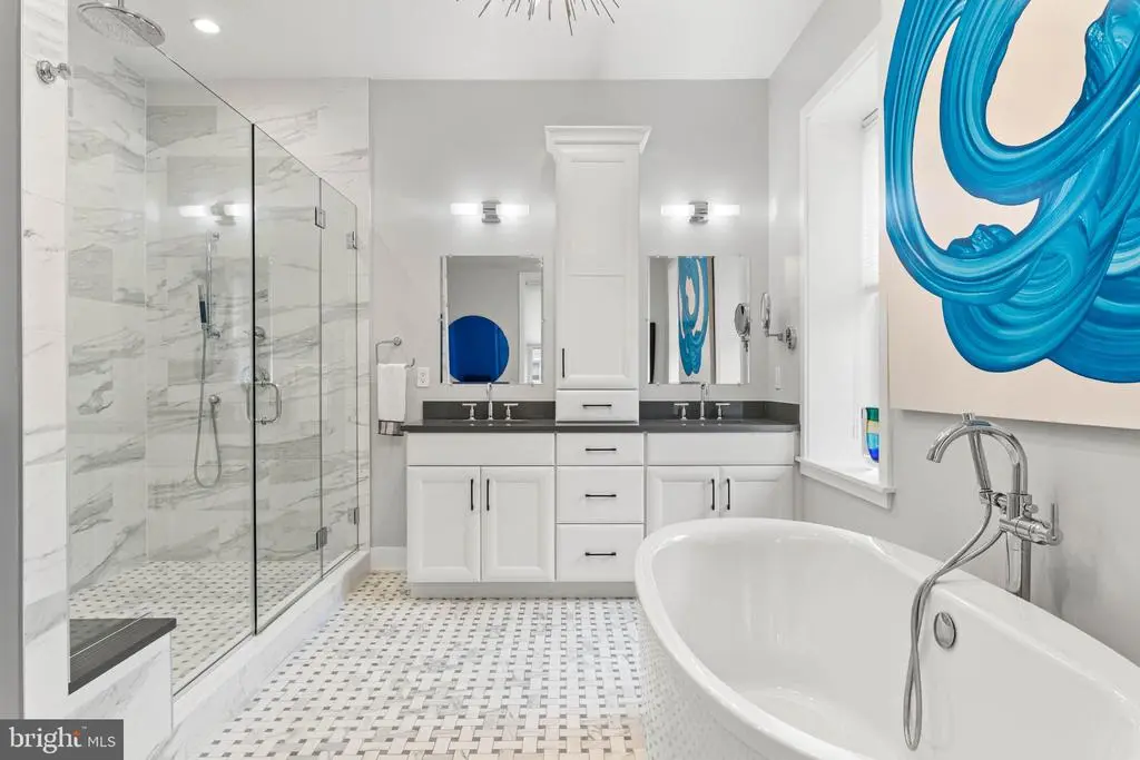 Welcome to this lovely contemporary yet traditional home in the coveted neighborhood of Fitler Square. Nestled on the corner of a quiet and quaint tree lined street, this home features Garage parking, plenty of living space and a roof top deck with magnificent views of the center city skyline. It is also in the Greenfield school catchment. Enter into the bright and open concept Living and Kitchen area. The Kitchen has high end finishes including Viking appliances, custom cabinetry and quartz countertops. There is also a center island with counter seating and additional cabinet storage. Flowing into the living room, you will notice the built-in shelving and cottage shutters on all of the windows to allow light and privacy. The second floor primary suite is truly a retreat with a private terrace, generously sized walk in closet, en-suite bathroom with dual vanity, oversized shower, and a relaxing soaking tub. The third floor has two additional bedrooms, a hall bath and a laundry room! Going up another level, there is a full size roof deck with panoramic views of center city, great for entertaining and taking in those sunsets! A full sized, finished basement with secondary living space, fourth bedroom and full bath complete this spacious home. Walkable to Fitler Square, Rittenhouse Square, Schuylkill River Park & Trail, UPenn, Penn, CHOP, HUP plus all the restaurants and shops. Readily accessible to Rt.76, 95 & 476.