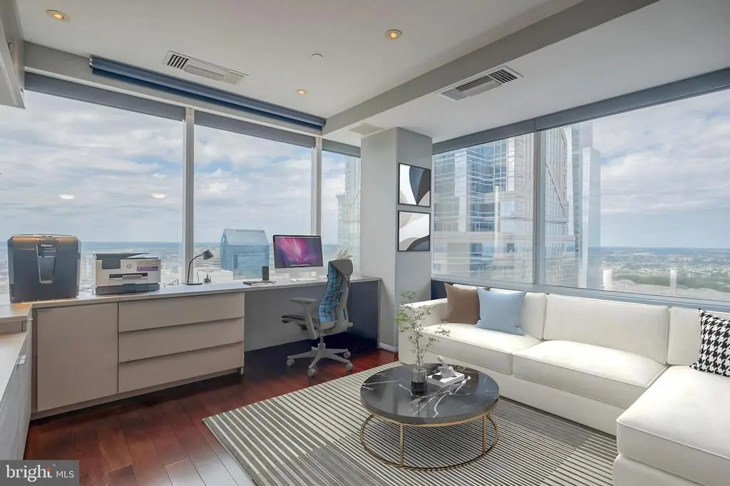 Welcome Home to Elevated Luxury Living at The Residences at Two Liberty Place! Perched high on the 45th floor, this exquisite 2-bedroom, 2-bath corner residence offers a rare opportunity to experience modern sophistication and breathtaking PANORAMIC VIEWS of Philadelphia’s skyline. FLOOR-TO-CEILING WINDOWS flood the space with natural light, showcasing dramatic cityscape vistas from every angle. Step inside to discover a bright, open-concept floor plan designed for both everyday living and effortless entertaining. The elegant guest bedroom is conveniently located adjacent to a beautifully appointed full hall bath, making it ideal for visitors or use as a home office. The heart of the home is the CHEF-INSPIRED KITCHEN, featuring custom cabinetry, gleaming granite countertops, and top-of-the-line appliances for a seamless culinary experience. The primary suite offers a serene retreat with a spa-like marble bathroom that boasts high-end finishes and ample space to RELAX AND UNWIND. At Two Liberty Place, luxury extends far beyond your front door. Residents enjoy five-star amenities including 24-hour concierge and front desk service, a chauffeur-driven town car, a state-of-the-art fitness center, yoga and massage studios, an indoor swimming pool and sauna, a media room, and an elegant resident lounge with a bar. For pet lovers, Two Liberty is proudly pet-friendly. With direct lobby access to one of Center City’s super fun shopping malls, you’ll find world-class dining, upscale boutiques, and top-tier entertainment just steps away. On-site parking is also available for an additional monthly fee, offering the ultimate in convenience and security. This is more than a home—it's a lifestyle and AN AMAZING VALUE. Don’t miss your chance to own one of the most coveted corner units in all of Philadelphia. Schedule your private tour today and experience luxury redefined at The Residences at Two Liberty Place.