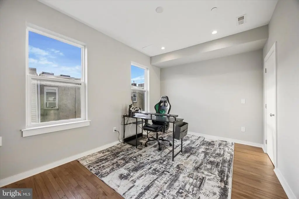 This stunning 3-story townhome checks every box: private deeded parking, incredible natural light, and high-end finishes throughout. Located on the border of Point Breeze and built in 2021, the home offers 4 bedrooms, 3.5 baths, a finished basement, and 6 years remaining on its tax abatement. Step inside to be greeted by soaring 12-foot ceilings and the warmth of hickory hardwood floors that set the tone for the luxury within. The open main level offers a wide 16-foot floor plan, seamlessly flowing from a spacious living area to a bright dining space and into the chef’s kitchen. Here, you’ll find shaker-style cabinetry, quartz counters, a contemporary backsplash, oversized island seating, a wine cooler, and modern lighting. Unlike most in the development, this home also features an upgraded first-floor powder room. Sliding doors lead to a private rear patio perfect for grilling or al fresco dining. Upstairs, two spacious bedrooms with generous closets and natural light flank a modern full bath. The third level is a dreamy primary suite with a walk-in closet, bay window, and spa-like bath featuring a soaking tub, glass-enclosed rainfall shower, and double vanity. A wet bar with a second wine fridge makes entertaining easy, whether in your suite or on the expansive roof deck with panoramic skyline views. The fully finished lower level adds even more flexibility with a bonus bedroom, full bath with a floor to ceiling glass panel, and storage. This home is also future-ready, outfitted with hardwired speakers and Bluetooth capabilities for a seamless smart-home experience. Outside, you’ll love not only your private deeded parking, but also the abundance of additional guest parking under the 25th Street overpass. The location is unbeatable: walking distance to the Schuylkill River Trail and Grays Ferry Crescent Park, connecting all the way to the Art Museum for morning jogs or evening bike rides. Enjoy coffee at nearby Grays Ferry Coffee Shop, playtime with your pup at Lanier Dog Park, and watch your equity grow as new homes, restaurants, gyms, and shops continue to rise in the neighborhood and along Washington Avenue. Don’t miss the chance to own a home that blends luxury, lifestyle, and long-term value. Schedule your showing today!