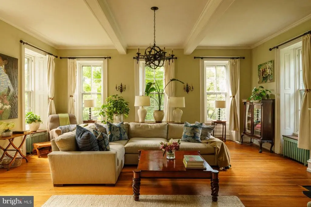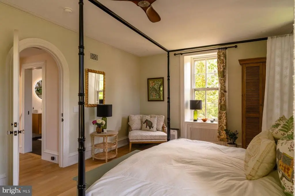 Step inside this exceptional 1860s stone Italianate residence, a rare Chestnut Hill offering that balances historic grace with more than $1.5 million in thoughtful renovations. World-renowned architectural firm Kieran Timberlake — alongside Philadelphia historic renovation experts Rasmussen/Su — have successfully married timeless architecture with sleek modern function and performance. Every detail was thoughtfully considered, and every material chosen for integrity, beauty and contemporary living, creating a home that is elegant, timeless, and enduring. From the soaring eleven-foot ceilings to the handcrafted plaster and limewash walls, the interiors speak to an enduring refinement, while extensive updates provide modern comfort. The main level opens with a dramatic foyer leading to a grand living room with oversized windows, built-ins, and a fireplace. The flowing design allows sightlines from the living room through the foyer into the dining room, where expertly restored French doors connect to both enclosed and open porches and a fabulous outdoor living experience. The custom kitchen pairs timeless details with high-performance features, including soapstone counters, a Wolf range, Sub-Zero refrigerator, and the original pantry. A classic mudroom, laundry area, and back staircase complete the level, while the basement provides workspace and significant storage. Upstairs, the primary suite is a reimagined retreat featuring a custom arched doorway that echoes the second-floor landing and arched hallway, creating architectural harmony throughout. The suite includes a serene sitting area, walk-in closet, and en-suite bath with a steam shower, heated flooring, hidden storage, and handcrafted cabinetry. Quarter-sawn oak floors lend warmth underfoot. Three additional bedrooms line the dramatic hallway, while the third floor offers one more bedroom, two additional rooms for work/play activity, three closets including a large walk-in, and a newly designed bath with a six-foot soaking tub and tiled shower. Anchored by a coveted Hartley Botanic English greenhouse, oversized porcelain paver patios, and lush gardens, the transformed grounds offer a superb, seamless indoor-outdoor experience. Entertain, relax, connect to nature. With a new roof, updated plumbing, gas hot water heating, converted radiators, and whole-house A/C, the home blends 19th-century architecture with 21st-century comfort. Just blocks from the shops and restaurants of Chestnut Hill and moments from the Wissahickon trails and train, this residence is both a historic treasure and a modern masterpiece.