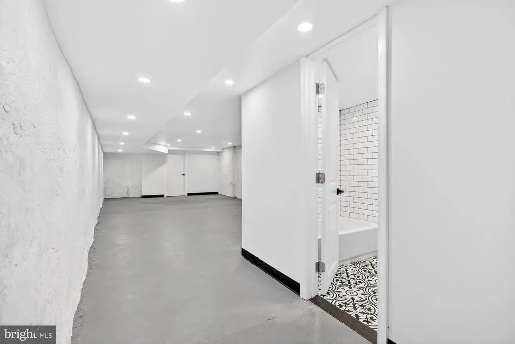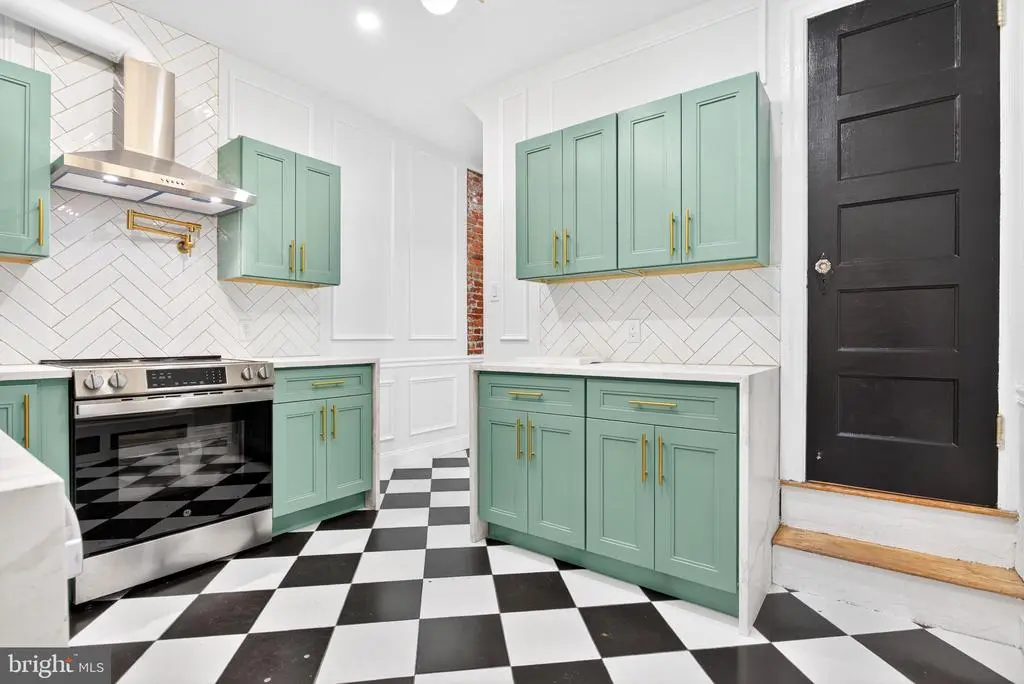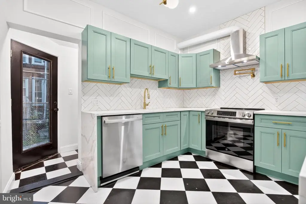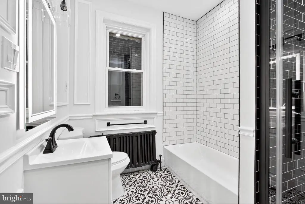 Welcome to this stunning, fully renovated row home in Philadelphia’s Cobbs Creek neighborhood. Thoughtfully designed from top to bottom, this spacious 4-bedroom, 3-bathroom home is move-in ready and filled with stylish finishes, spacious living areas, and historic character throughout. Enter into the bright and airy sunroom, featuring large windows and built-in shelving—perfect for a cozy reading nook or indoor garden space. From there, flow into the inviting living room adorned with parquet hardwood floors, an exposed brick wall, and a fireplace that anchors the space beautifully. The formal dining room is spacious and perfect for hosting, while the adjacent kitchen is a true showstopper—featuring checkerboard tile flooring, quartz countertops, modern shaker cabinets, stainless steel appliances, and plenty of counter space for meal prep and entertaining. In the kitchen you'll find a back staircase leading to the upper level, enhancing the home’s flow and functionality. The kitchen also offers access to the private rear patio, ideal for outdoor dining or relaxing on warm summer evenings. Upstairs, the primary suite offers a peaceful retreat with three large bay windows, two closets, and a luxurious ensuite bathroom showcasing checkerboard tile flooring, rich green tiled walls from floor to ceiling, a walk-in shower, and elegant gold accents throughout. The upper level also features three additional generously sized bedrooms, perfect for family, guests, or home office needs, and a beautifully designed full hallway bathroom. This bathroom features a white subway tile tub/shower combo, a black-tiled glass stall shower, sleek white vanity, and matte black fixtures for a modern black-and-white theme. Continue down to lower level where the partially finished, walk-out basement adds even more flexibility to this home. Here you'll find the laundry area, a third full bathroom featuring white subway tile and a tub/shower combo. The basement’s spacious open layout is perfect for a home gym, recreation room, storage, or flex space to suit your needs. Throughout the home, enjoy a seamless blend of old and new: original hardwood floors, stained glass windows, and vintage hardware are complemented by modern lighting, exposed brick, wainscoting, chair rail trim, and box molding, adding sophistication and character to every room. Located just steps from public transportation, neighborhood shops, restaurants, and minutes from the lush trails of Cobbs Creek Park, this home offers the best of city living. Don’t miss the opportunity to call this one-of-a-kind Cobbs Creek residence your new home—schedule your private showing today!