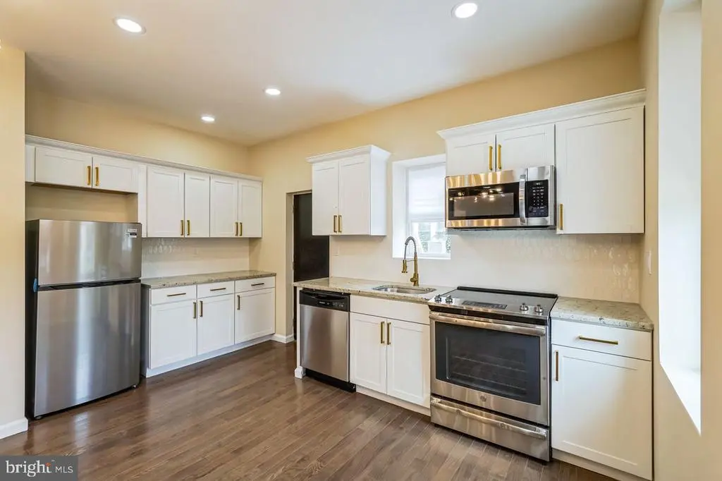 Step inside 101 N Vogdes St and discover a home that feels brand new from top to bottom. This fully renovated corner townhouse offers over 1,500 sq ft of stylish living space with 4 bedrooms and 2 full bathrooms. The open and sun-filled layout showcases a modern kitchen with granite countertops, sleek new appliances, and plenty of space to cook, dine, and entertain. The ground floor is a game-changer—featuring a private in-law suite with its own entrance, full bathroom, and kitchenette with built-in cooktop. Perfect for extended family, guests, or even rental income, it creates incredible flexibility. You can rent it out and live for free, or let the income help absorb your overhead costs. Upstairs, three generously sized bedrooms share a beautifully designed bathroom complete with dual sinks, a soaking tub, and a separate stall shower. Each room is outfitted with its own mini-split system, so comfort is always within reach. Location couldn’t be better! Just steps to the 56th St. Market–Frankford Line Station, commuting into Center City or University City is fast and easy. Around the corner you’ll find neighborhood shops, grocery stores, and local dining, plus Haddington Park and Recreation Center for outdoor fun. This is truly a move-in ready home that combines modern finishes, versatile living space, and unbeatable convenience—don’t miss it!
