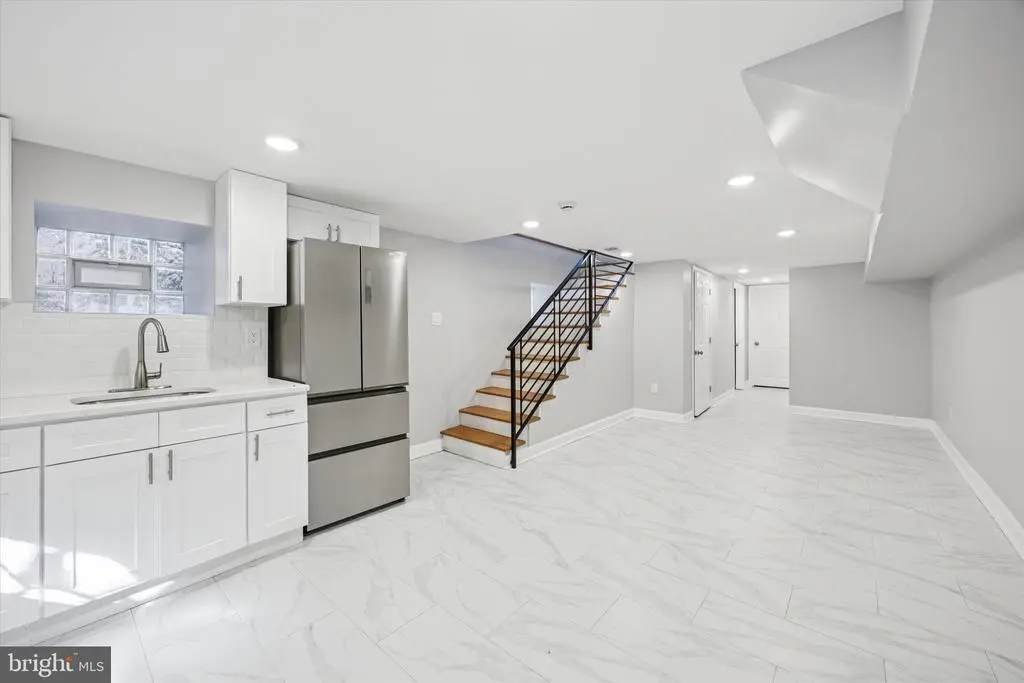 ✨ Welcome Home! ✨ This stunningly renovated twin home in West Philadelphia offers the perfect blend of modern design and timeless charm, featuring 4 spacious bedrooms and 3 full bathrooms. From the moment you arrive, you’ll be impressed. Relax on the open front porch, or step into the enclosed sunroom—an ideal space for a yoga studio, home gym, or cozy reading nook. Beyond the grand vestibule door lies a massive open-concept living and dining area, complete with a decorative feature wall and elegant fireplace—perfect for entertaining or quiet evenings in. The chef’s kitchen is a true showstopper: bold navy and white shaker cabinets, a farmhouse sink, granite countertops, gleaming hardwood floors, and a huge center island that ties it all together. Just off the kitchen, access your private backyard oasis, great for gatherings, play, or peaceful outdoor living. The finished lower level in-law suite is practically a home of its own, offering a kitchenette, open living space, full bath, laundry area, and a generously sized bedroom with tons of storage. This level also has its own private walkout to the backyard. Upstairs, you’ll find three large bedrooms, including a luxurious main suite with an accent wall and private bath. A second full hall bath with a soaking tub completes the upper level, providing plenty of space and comfort for everyone. This home truly has it all—style, space, and functionality—making it the perfect fit for today’s modern lifestyle.
