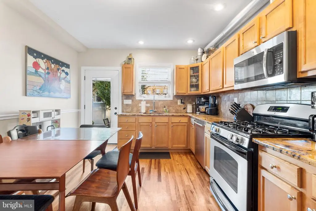 Welcome to 2844 Belgrade, a rare street-to-street property featuring a spacious, updated home, beautiful yard and an expansive, detached garage. Walking into your bright and airy three bedroom, two bathroom home, you will love the high ceilings and gleaming, solid oak flooring throughout. On the first floor, a double-wide hall closet offers coveted storage space. The well-appointed eat-in kitchen allows plenty of natural light to illuminate meals and gatherings. Here you will find access to your private urban oasis, a large patio and yard that stretches back to the detached garage. The yard has a sprinkler and drip system that ensures easy maintenance. The garage can be accessed via electronic door from Miller Street and offers nearly two stories of storage. Imagine the possibilities - this space could be outfitted as a home gym, art gallery, music studio, private office, or simply bonus storage space. Back inside, the finished basement adds valuable and cozy living square footage, as well as more functional storage options. The second floor boasts a large sunny bedroom, updated hall bathroom and the primary suite. The primary bedroom consists of two closets and a stunning, fully renovated en-suite. With full tile surround, a glass enclosure shower and custom sconces, this bathroom is a spa-like retreat! Also on this level, is the side-by-side washer and dryer closet, equipped with plenty of shelving to store linens, toiletries and more. Head up to the third floor to find the last generously-sized bedroom with exterior access to the roof which could easily be reimagined into a full roofdeck. This special home is a few steps from some of Philly's favorite places - Stock's Bakery, Tacconelli's Pizza and Little Susie's Coffee and Pie. Jump on any major highway with ease from this convenient location or enjoy the perks of the revitalized waterfront. Take advantage of this unique opportunity to own a special piece of Philadelphia real estate today!