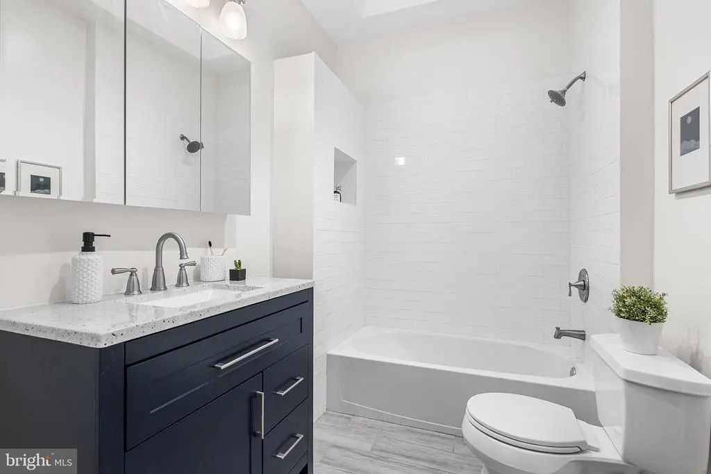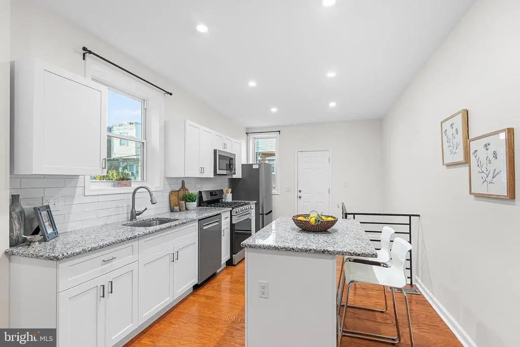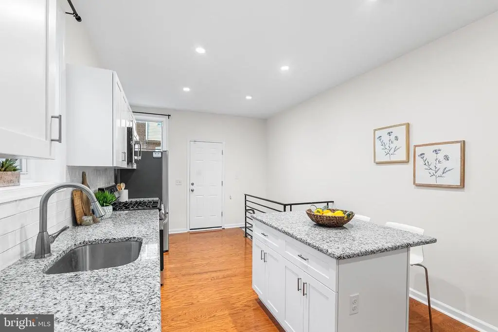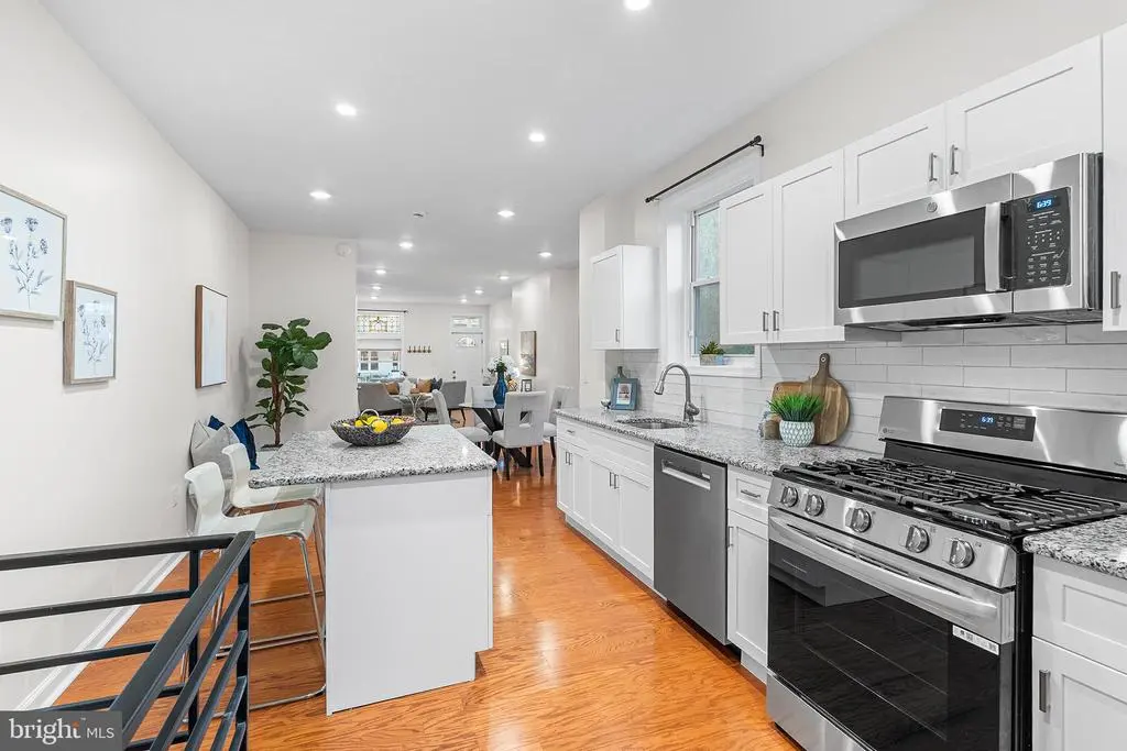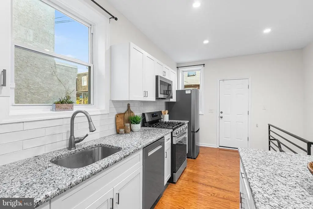 **Modern & Meticulously Renovated Gem in Cobbs Creek ** Welcome to this truly turn-key rowhome in the vibrant Cobbs Creek neighborhood. Renovated with exceptional care by an owner who had intended to stay, this home stands apart from a typical "flip." The 2024-2025 renovation included brand-new floors, walls, kitchen, appliances, updated electrical, and more, all designed to create a modern, inviting space. Step onto the newly rebuilt porch and into a bright, open-concept living and dining area featuring newly installed hardwood floors and a charming decorative fireplace. A convenient half bath is also located on this level. The updated kitchen is attractive and functional, complete with a center island for seating, beautiful granite countertops, and upgraded appliances. Upstairs, you'll find three bedrooms, including the primary suite—a tranquil retreat with two large closets and a sun-filled bay window. The full bath, with a stonetop vanity and skylight, are also located on this floor. The finished basement offers a versatile bonus space perfect for a home gym, office, or media room, along with a separate laundry room. Outside, enjoy easy alleyway access to a private back patio, ideal for grilling or an outdoor dining set. You're just a short walk to the expansive green spaces of Cobbs Creek Park and the community hub of Malcolm X Park. With SEPTA just blocks away, you have easy access to the universities of Drexel and Penn, center city, Baltimore Ave, and anywhere else you want to be, all from your charming home base on Irving Street.