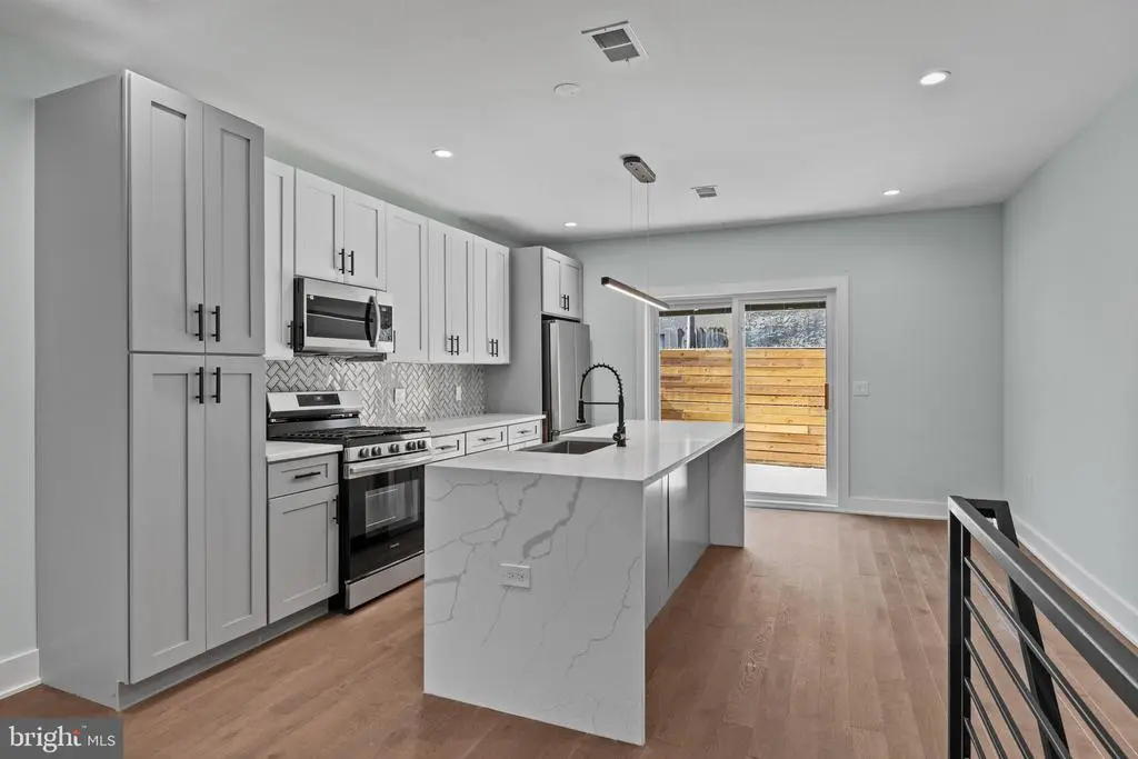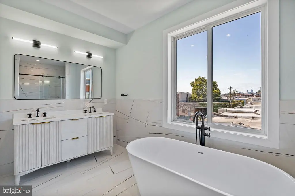 This stunning three-story home combines contemporary design with practical luxury, offering the ideal blend of comfort and convenience with 2257 square feet of living space and a 10 year tax abatement located in the Fishtown/Old Richmond neighborhood. The first floor welcomes you with an open-concept living and dining area, flooded with natural light. The sleek, modern kitchen features quartz countertops, crisp white cabinets with black hardware. Step through the large sliding door to your private rear patio, ideal for outdoor gatherings and relaxing evenings. Upstairs, you'll find two generously sized bedrooms, each with its own luxurious en suite bathroom, providing perfect privacy and comfort. The third floor is your sanctuary an expansive primary suite with a massive walk-in closet and a spa-inspired bathroom featuring a soaking tub, large shower, and dual vanity sinks for everyday indulgence. Assend to the roofdeck, offering stunning city views perfect for sunset cocktails or morning coffee. The versatile basement includes extra space for a home gym, entertainment lounge, or second living area, along with a separate room ideal for a fourth bedroom and an additional full bathroom. You will benefit from a 10-year tax abatement and enjoy the walkable neighborhood close to Frankford Avenue’s thriving dining, shopping, and entertainment scene. This is more than a home it's a lifestyle, designed for the buyer ready to embrace all that Fishtown has to offer.